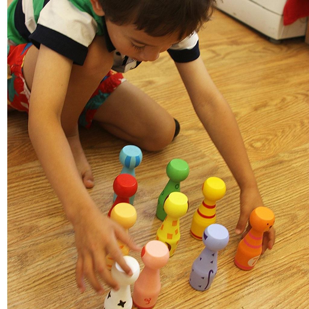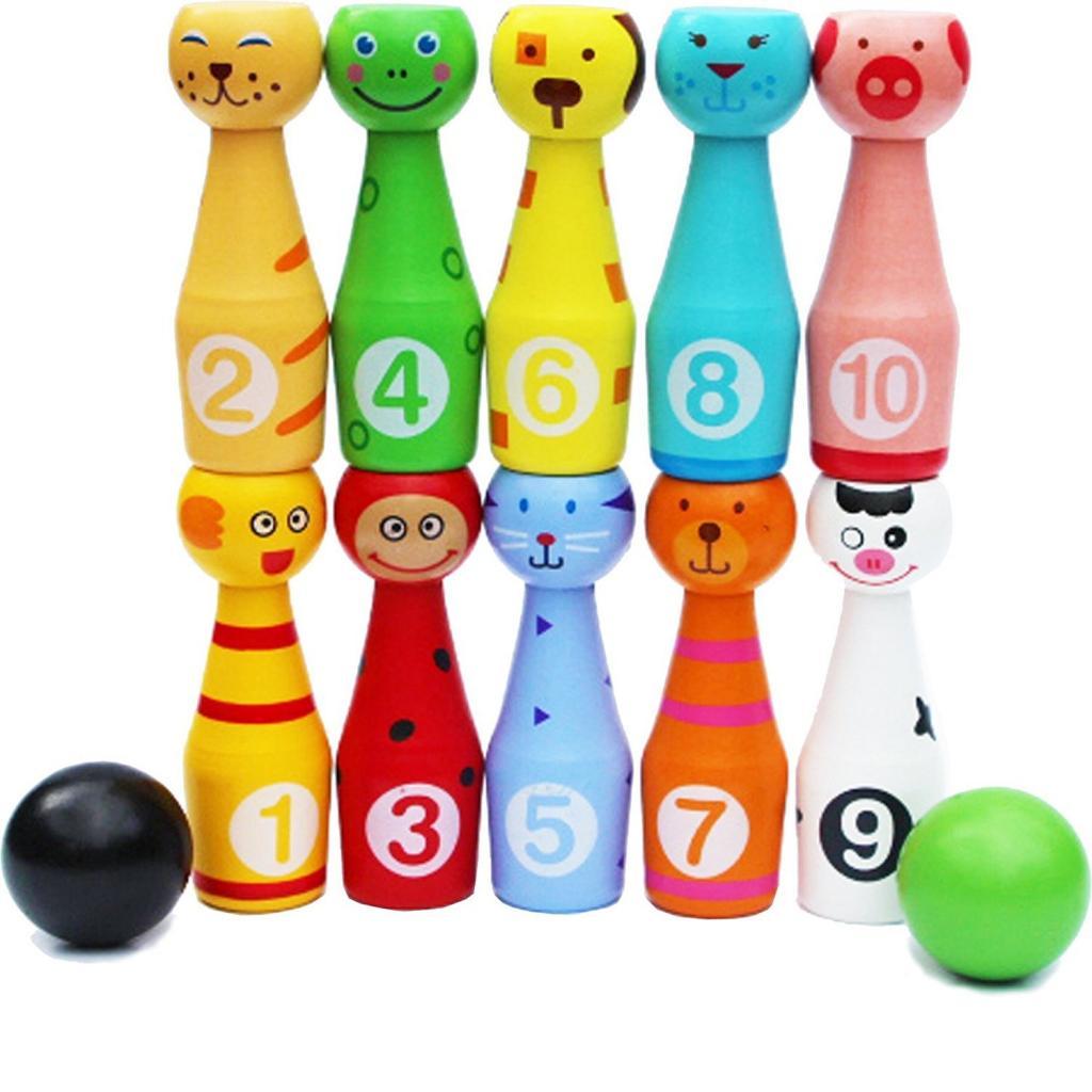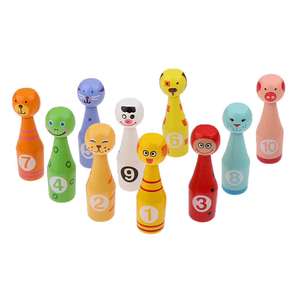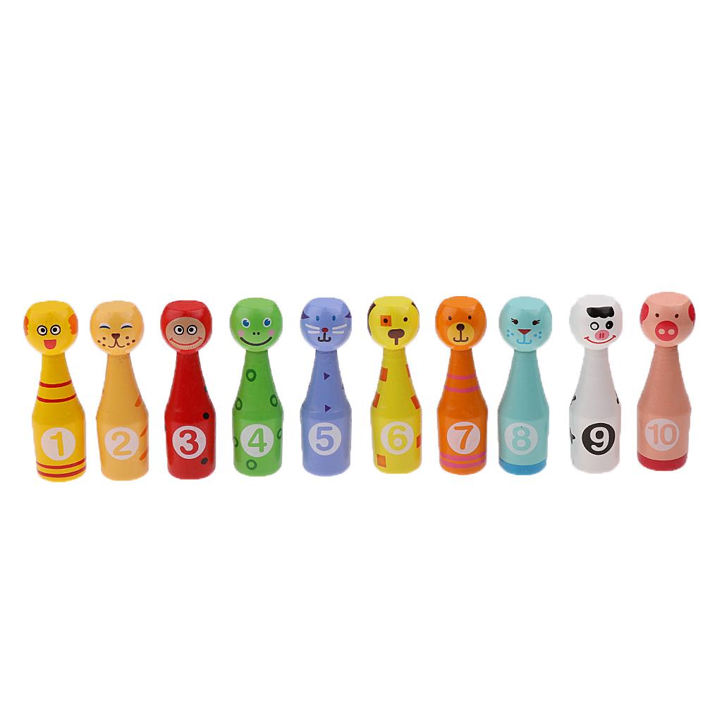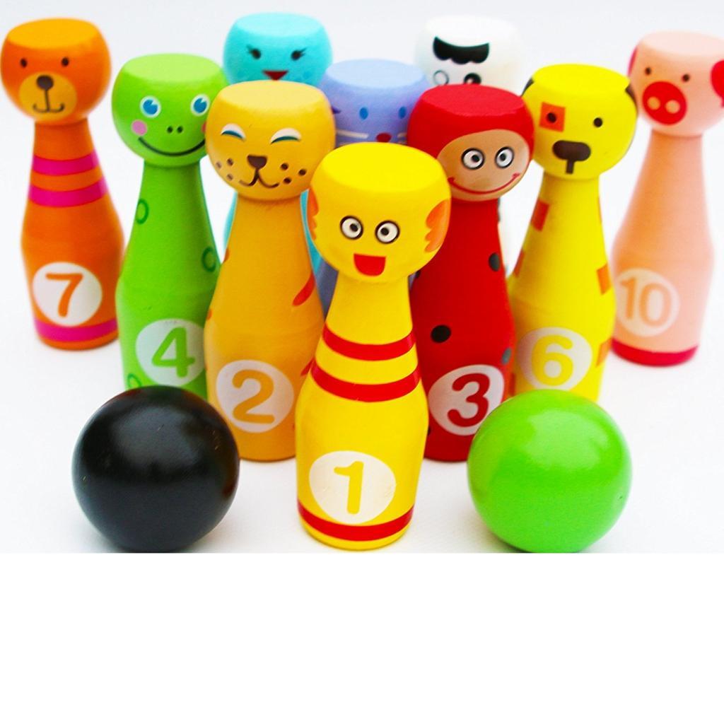1 Set Wood Bowling(Including 3pcs Balls + 10pcs Cartoon Bowlings)