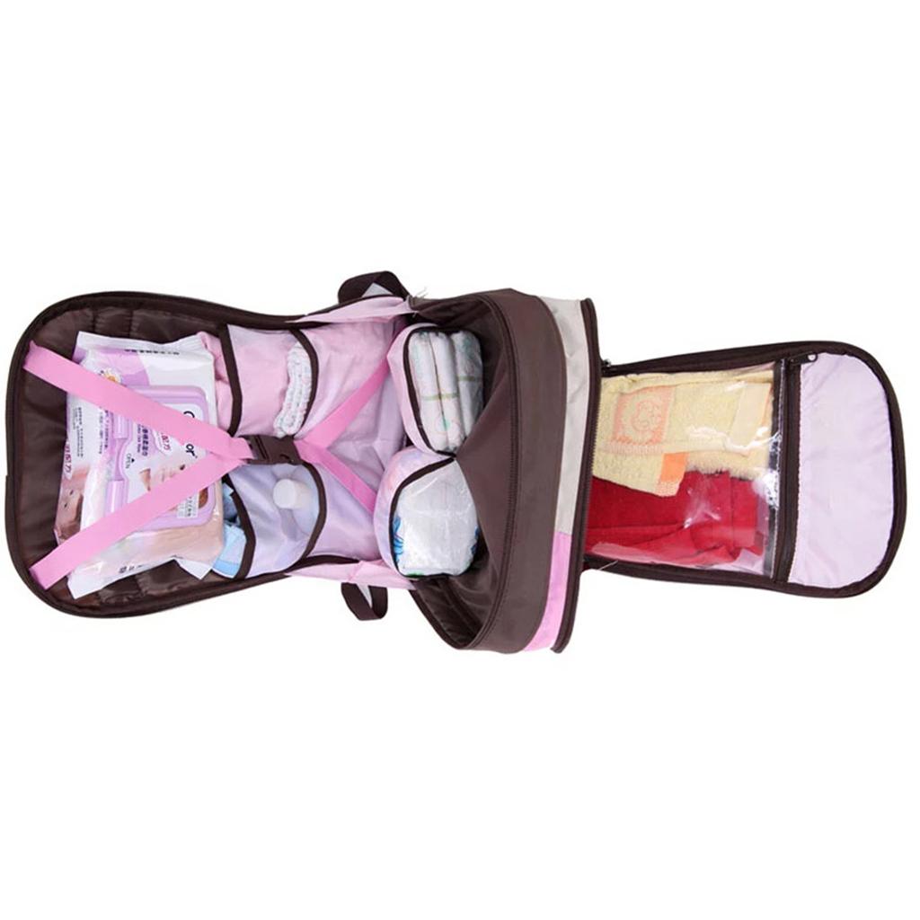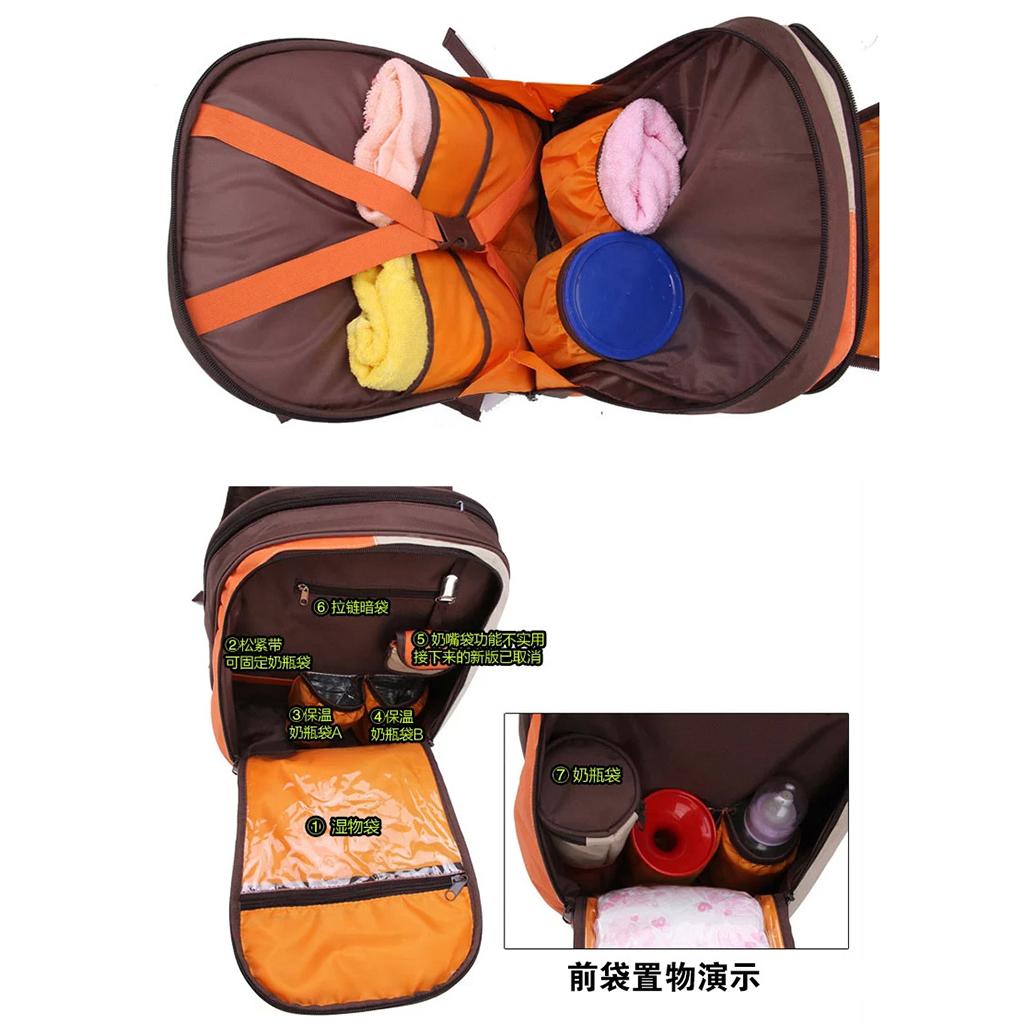 • 1 Main roomly compartment to keep clothes ,milk powder  ,2 insulated bottle holder,1 super Waterproof PEVA Pockets for wet item