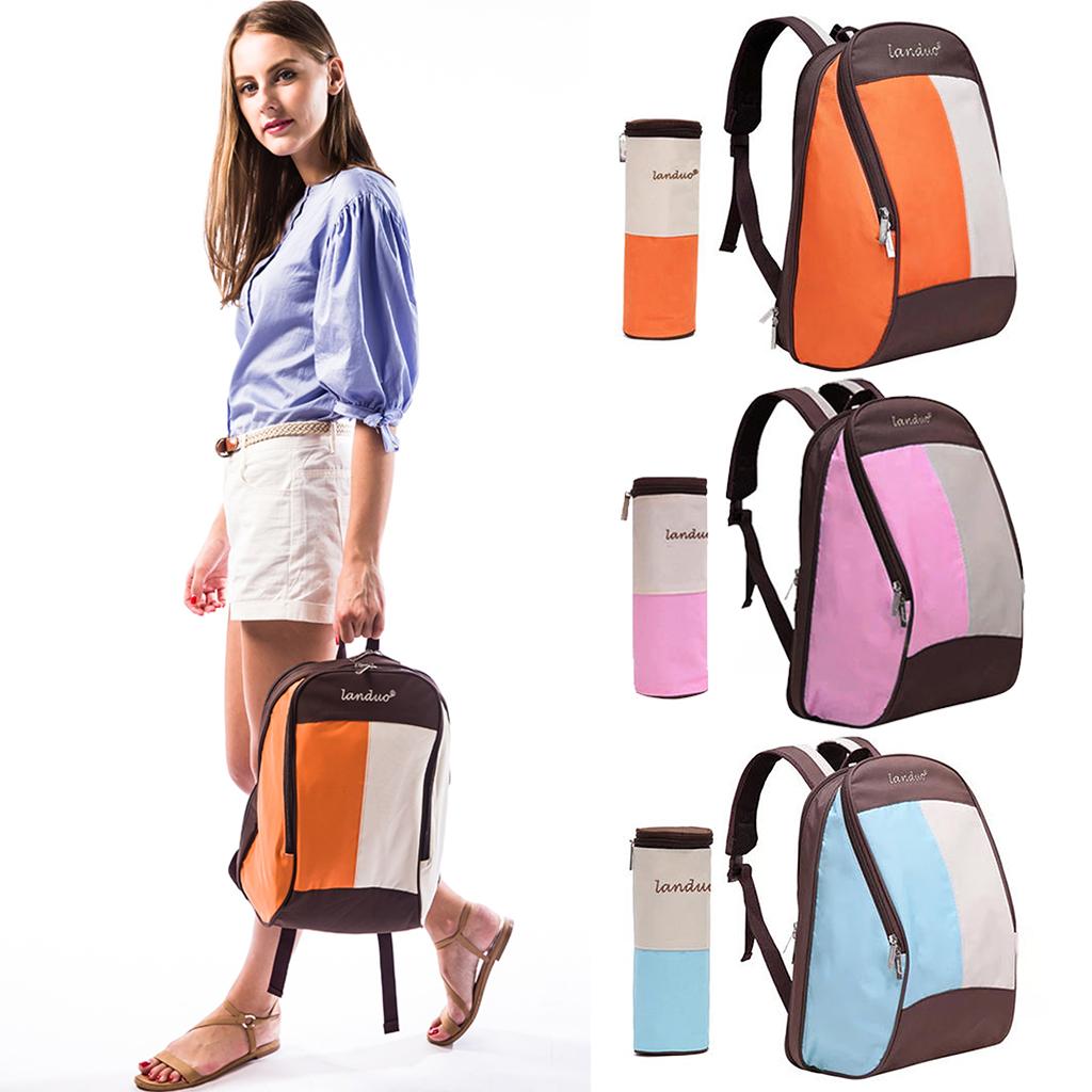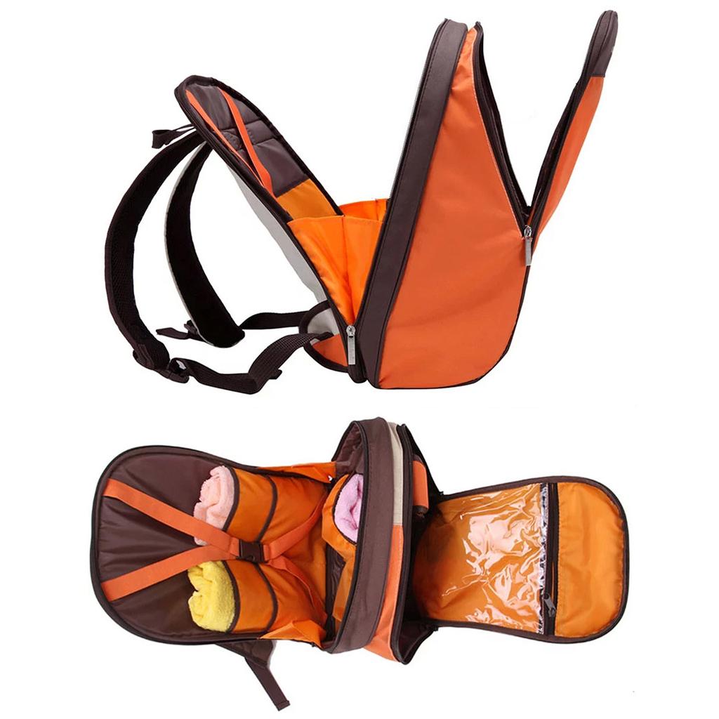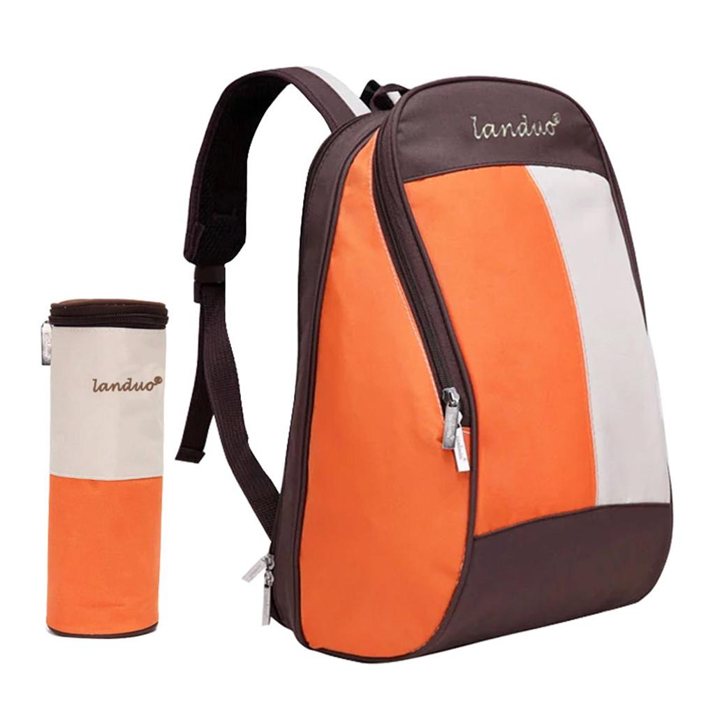 Multifunctional Insulated Sleeves Cushioned Shoulder Straps Baby Nappy Food Diaper Bag Mommy Backpack with Bottle Bag Orange
