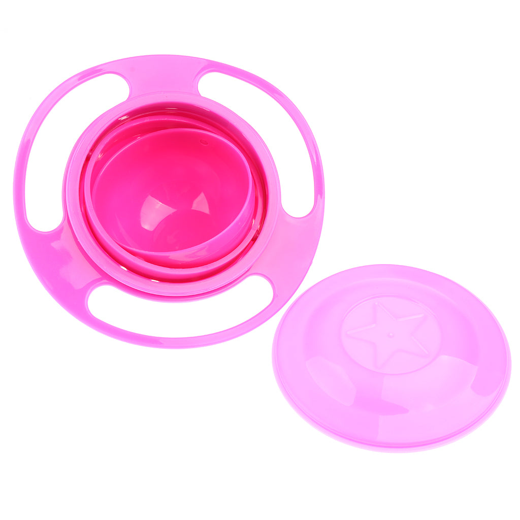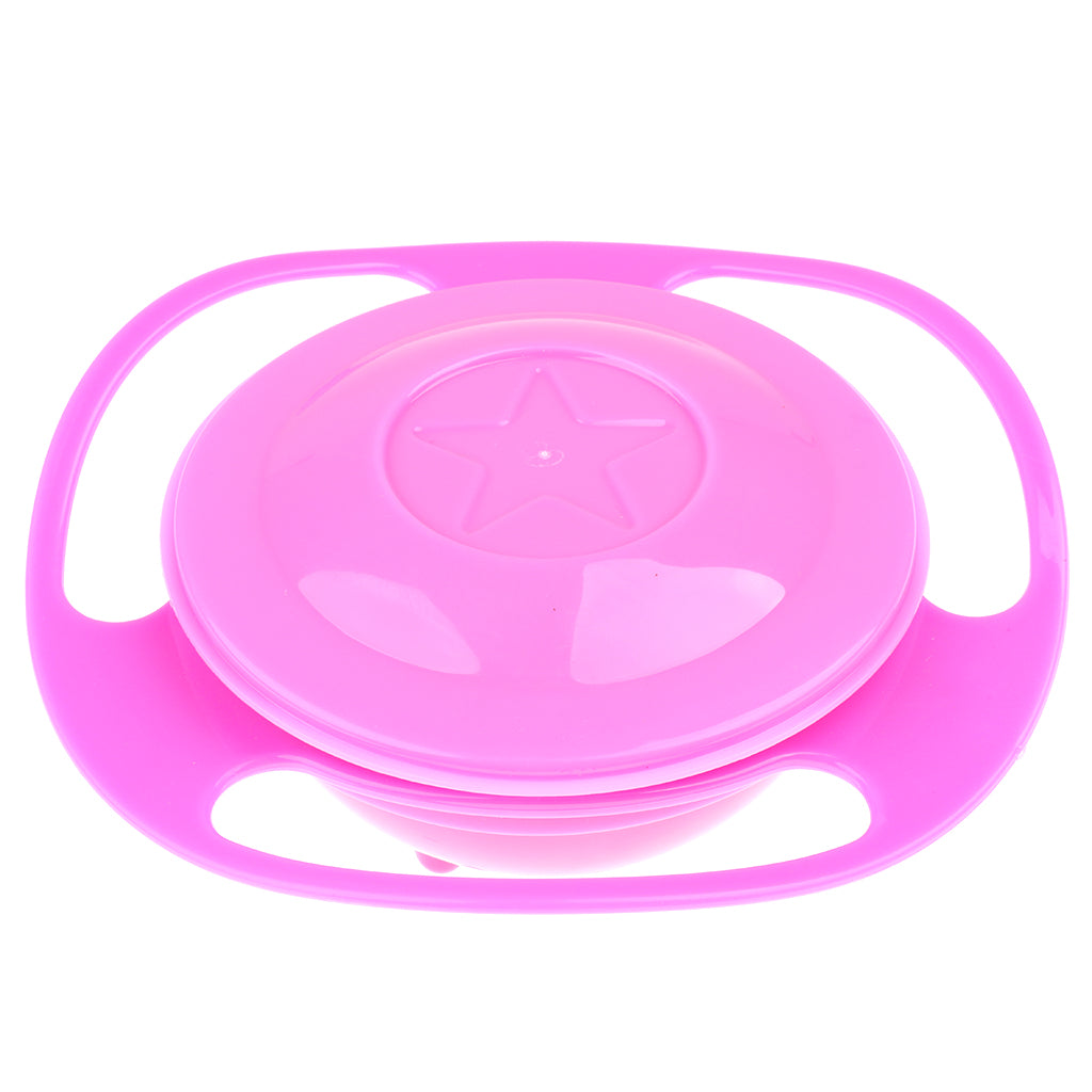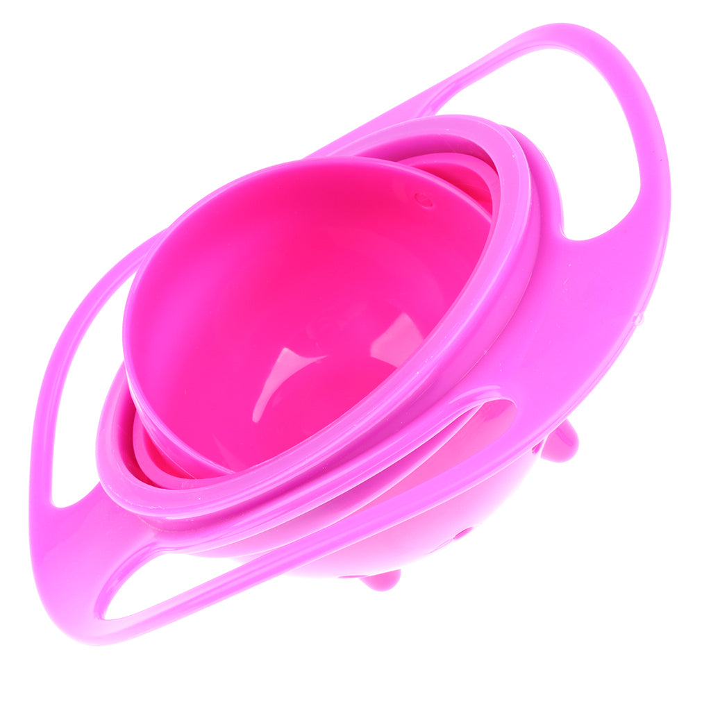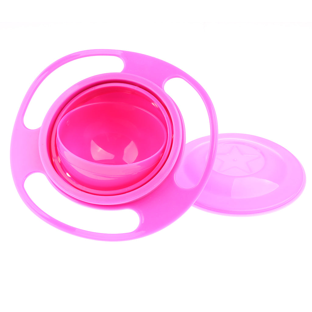 Pink Baby Non Spill Feeding Toddler Gyro Bowl Rotating Cup