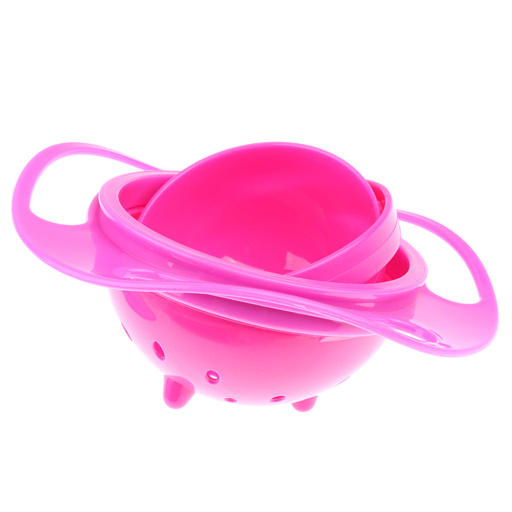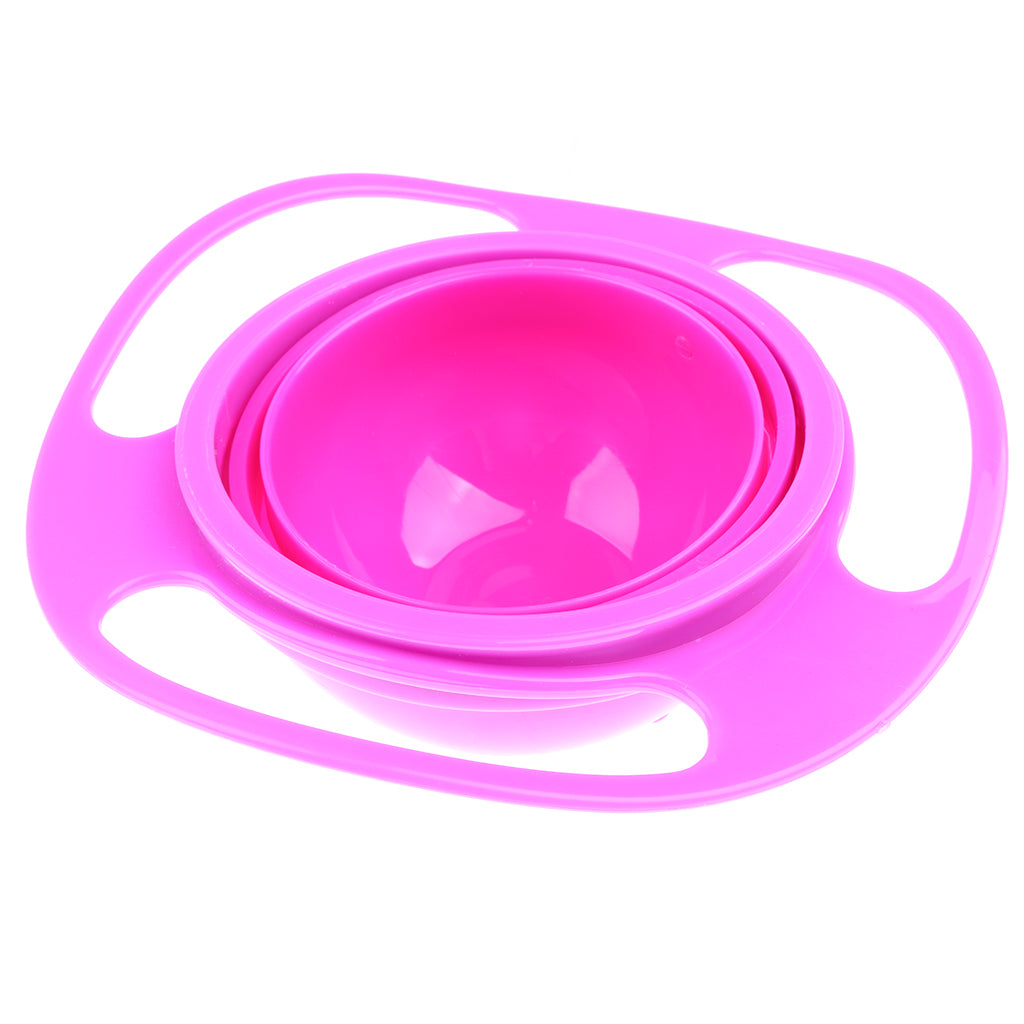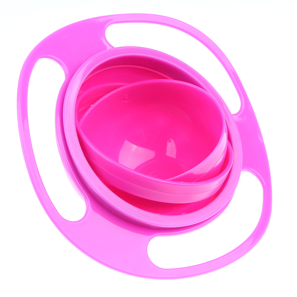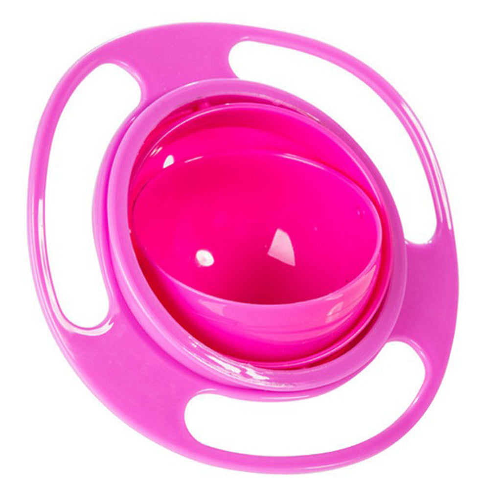 Pink Baby Non Spill Feeding Toddler Gyro Bowl Rotating Cup