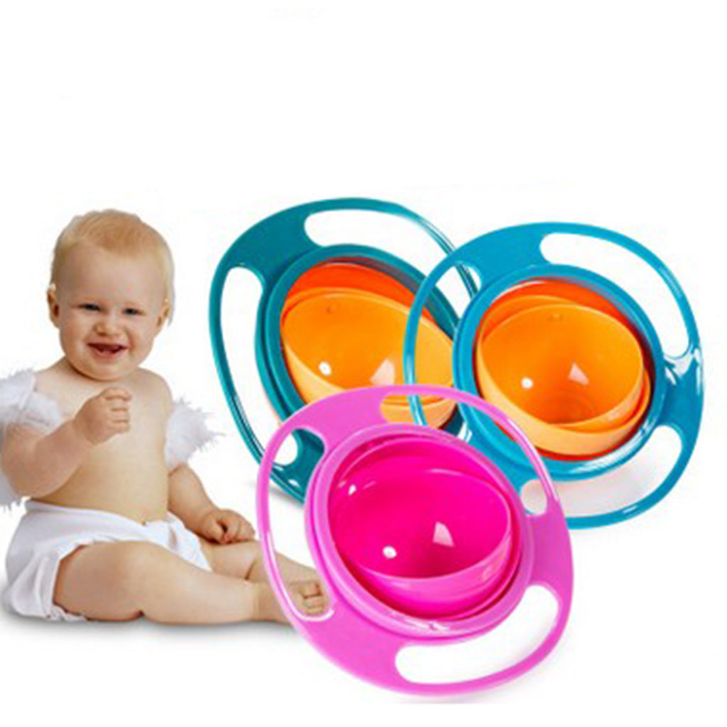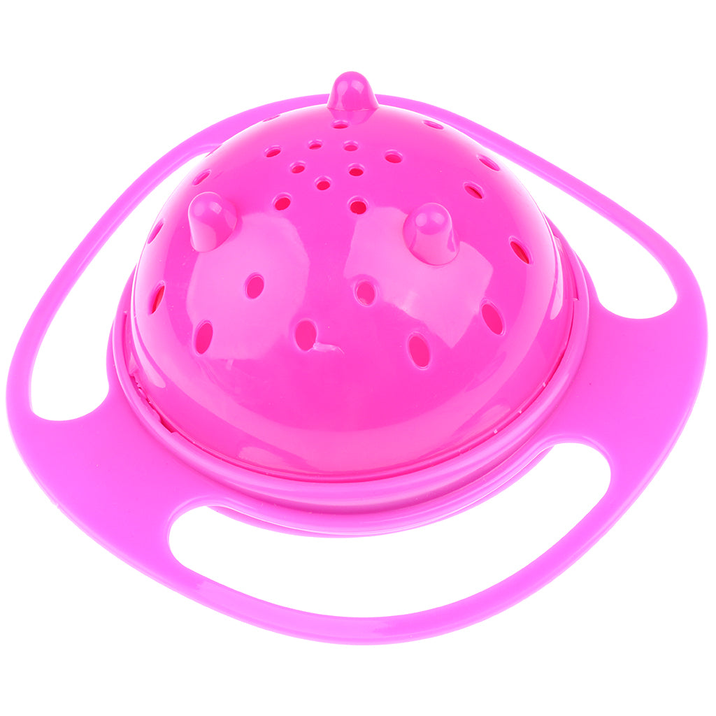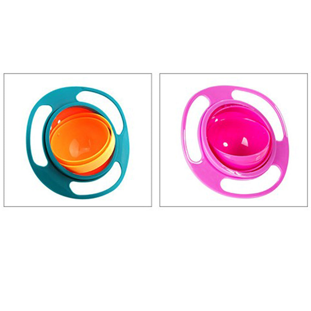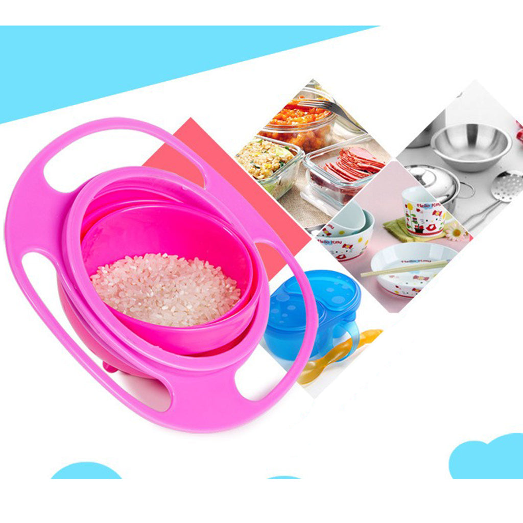 Pink Baby Non Spill Feeding Toddler Gyro Bowl Rotating Cup