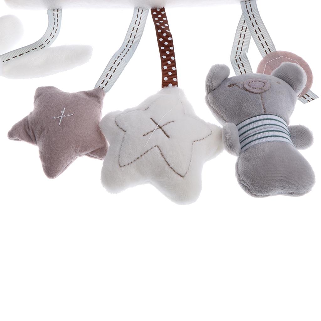 It can be tied to a cot, baby stroller or car seat to entertain the baby