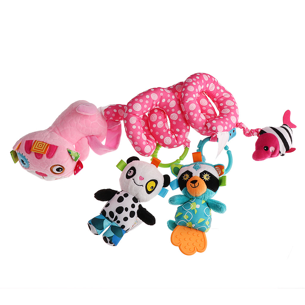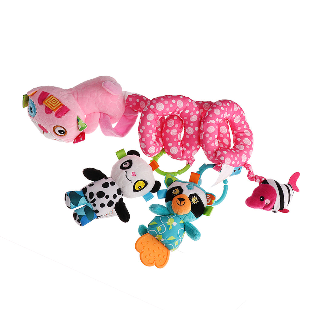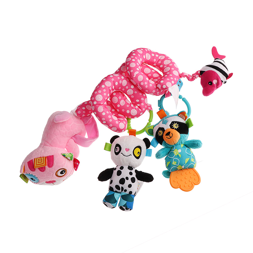 Brightly colored, with stretchy legs that rattle, crinkle, jingle, chime, and squeak