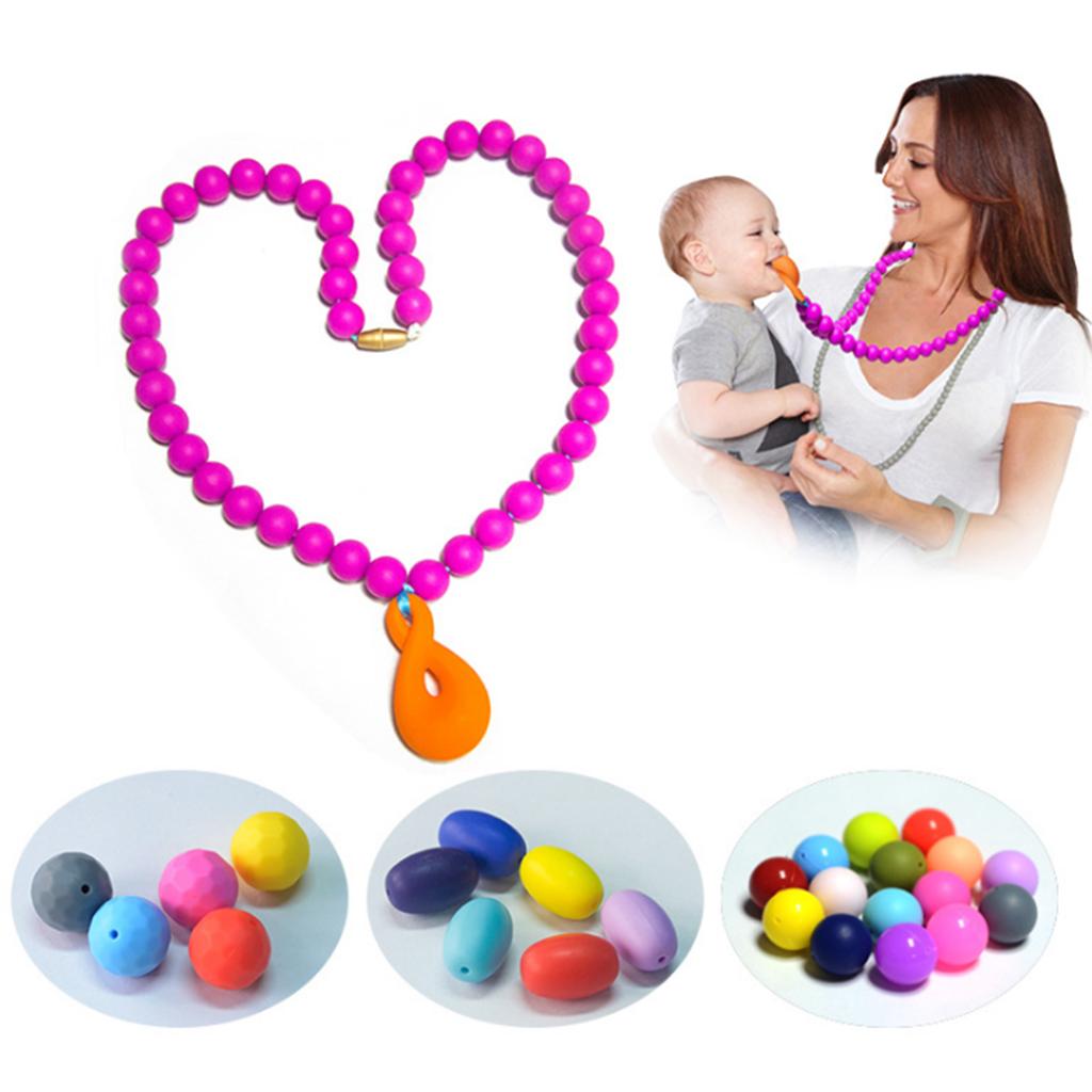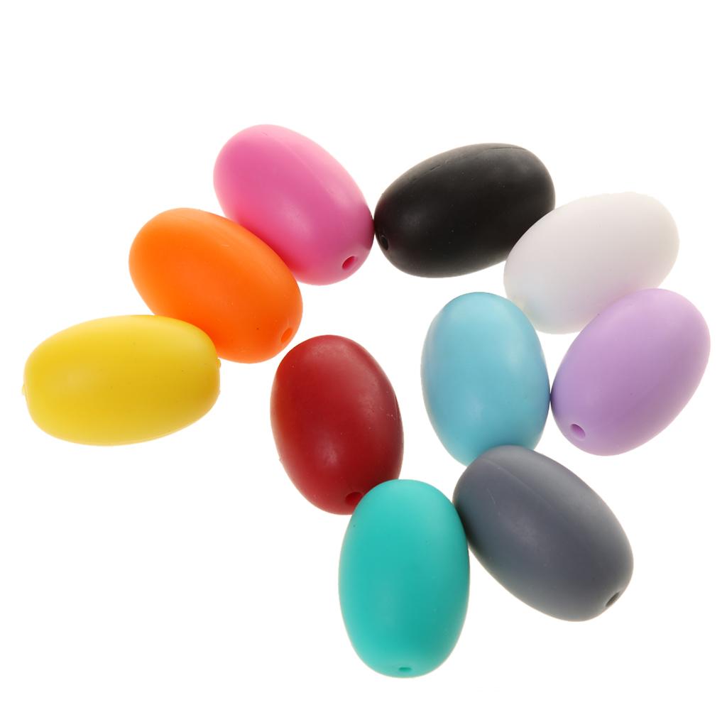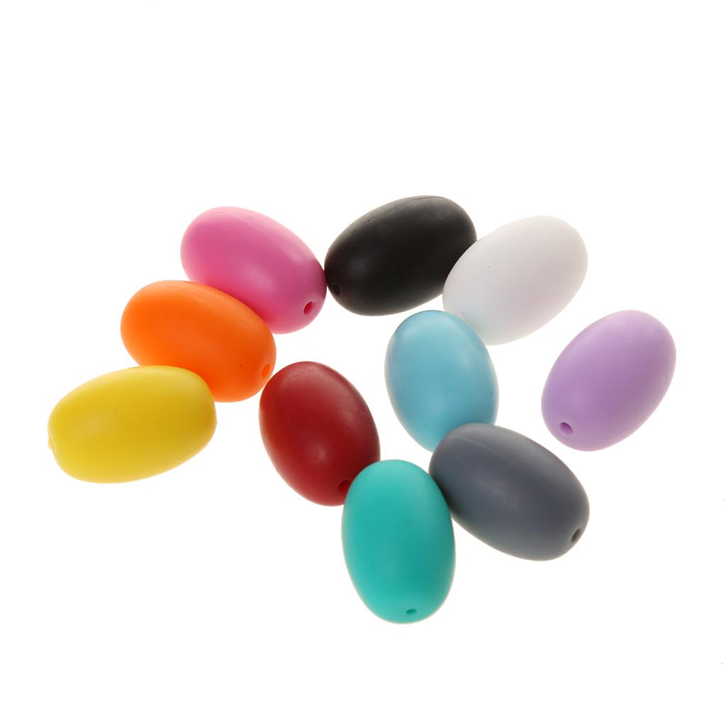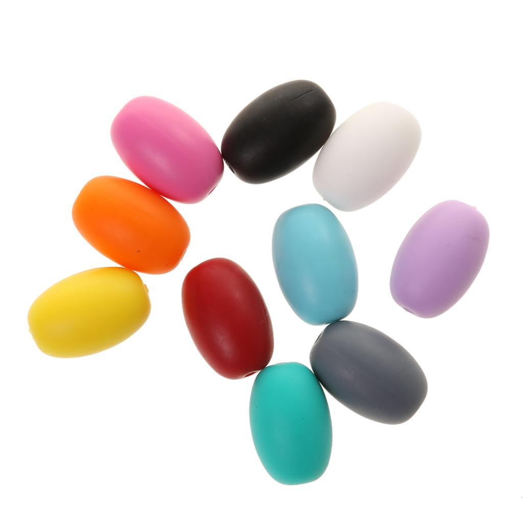 Silicone Teething Beads Breastfeeding Nursing Necklace Sensory Tool Oval 20*14mm- Multicolor