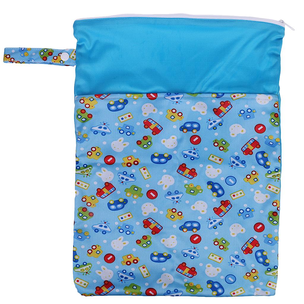 Waterproof Zip Baby Infant Cloth Diaper Nappy Pouch Bag Reusable Blue Car