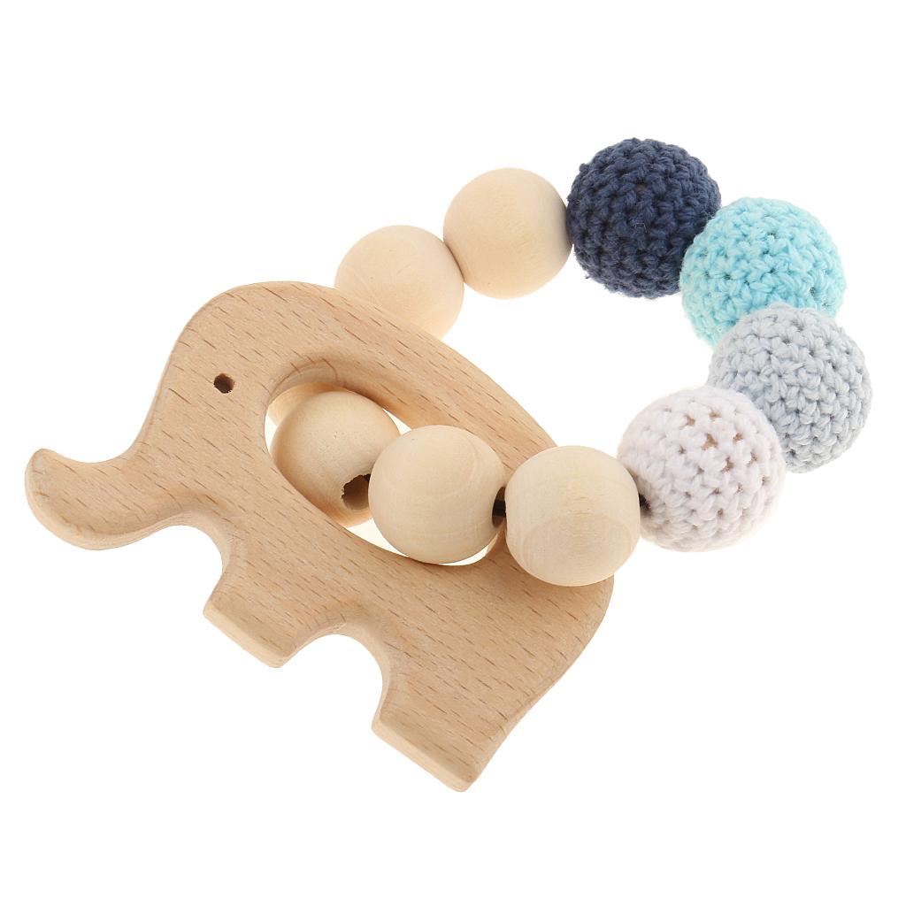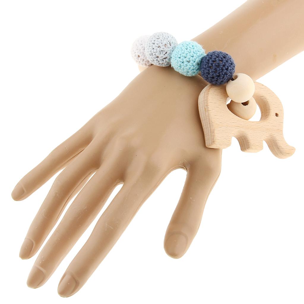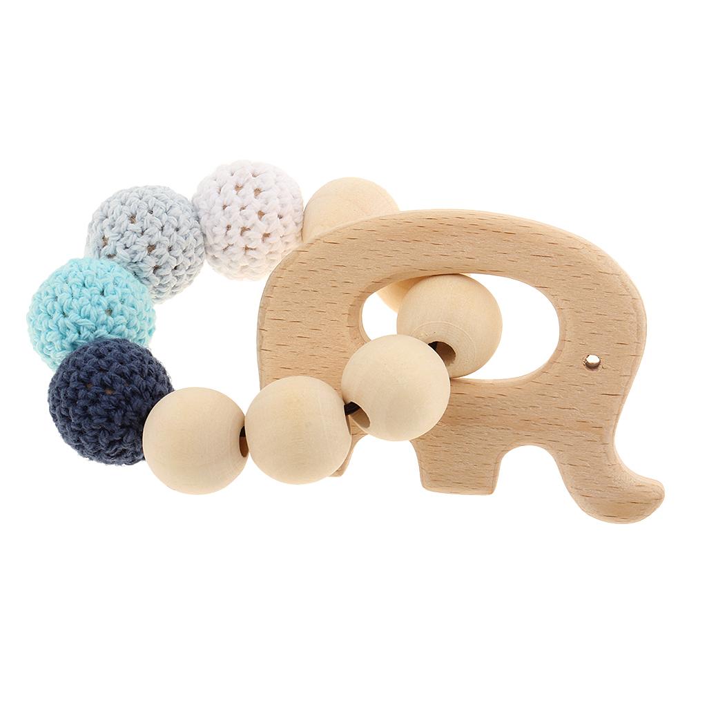 Wood Crochet Beads Bracelet Teether Baby Kid Grasping Nursing Toy Elephant 2