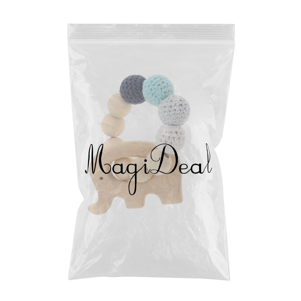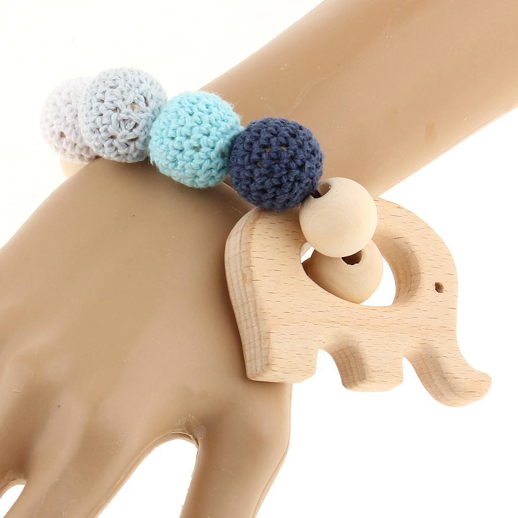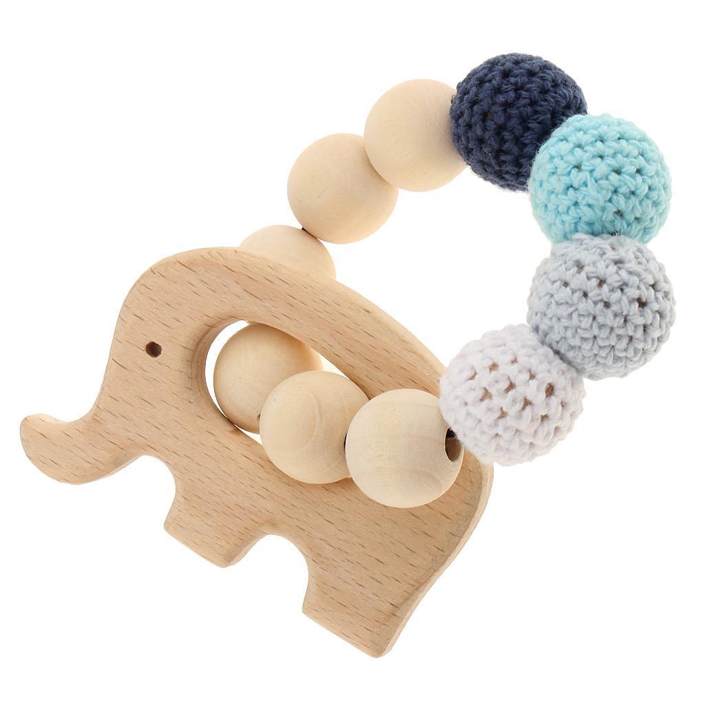 Wood Crochet Beads Bracelet Teether Baby Kid Grasping Nursing Toy Elephant 2