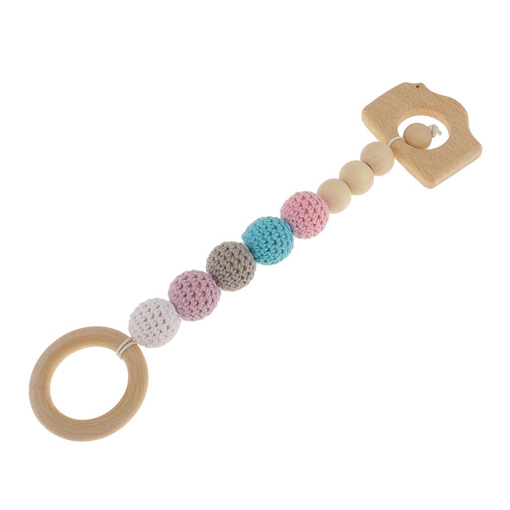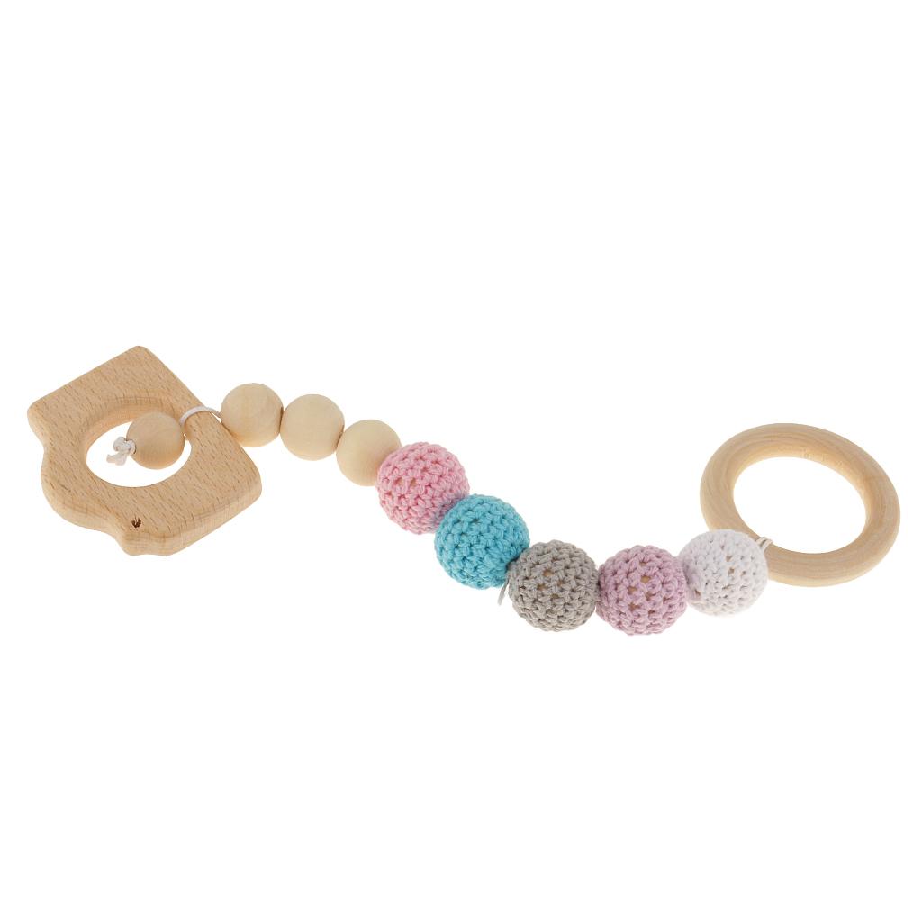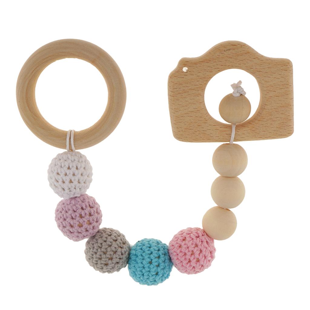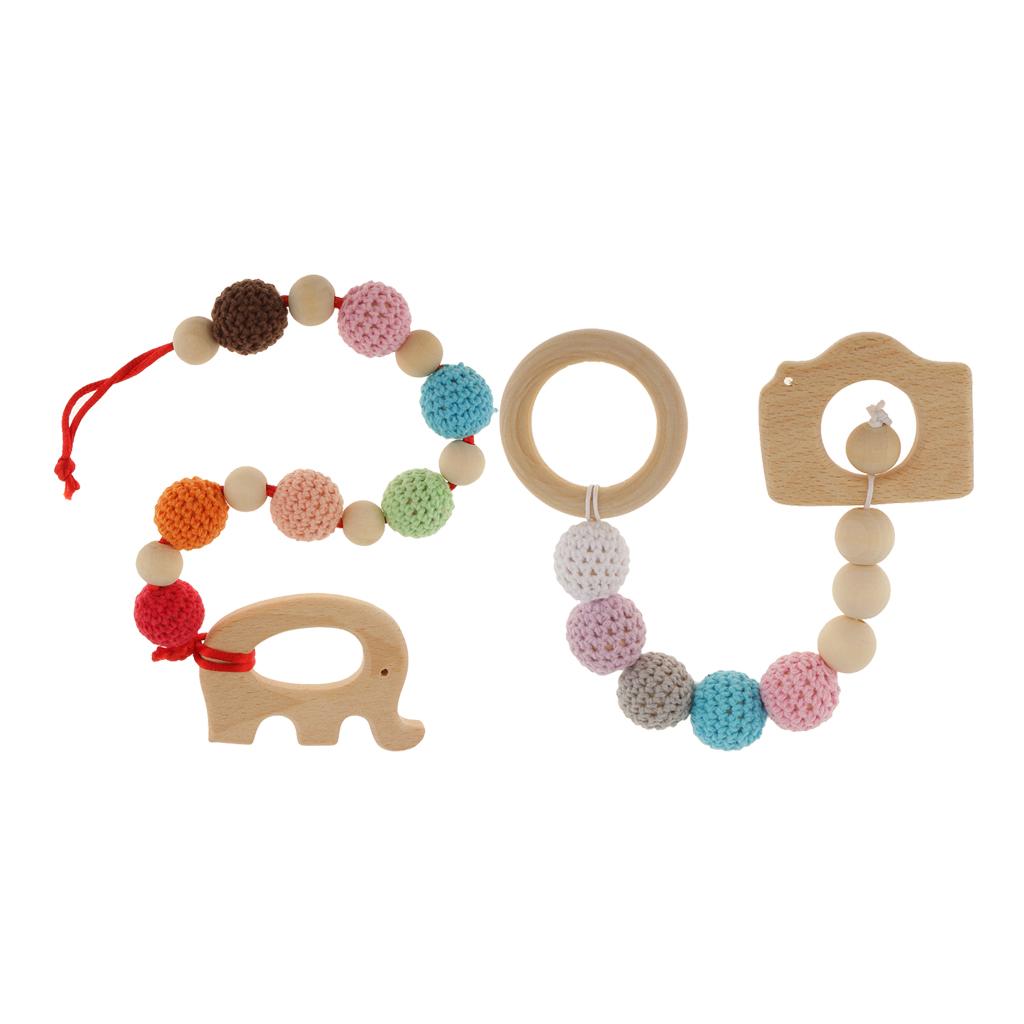 Wood Crochet Colorful Beads Bracelet Teether Baby Grasping Nursing Toy 2Pcs