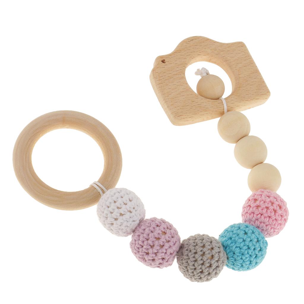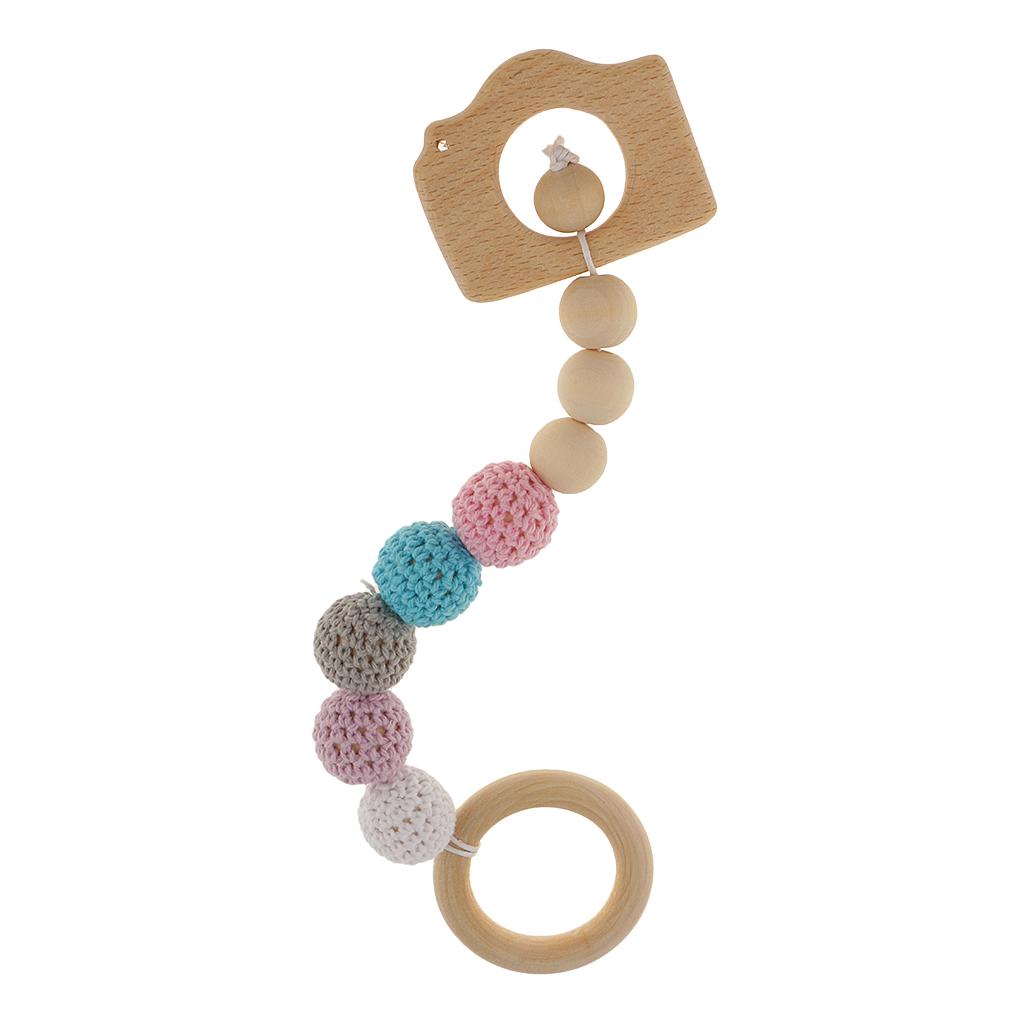 The colorful camera shape toy is made out of 4pieces wooden beads,1piece wooden camera shaped beads,1piece wood camera shaped bead and 5piece crocheted beads with organic cotton;