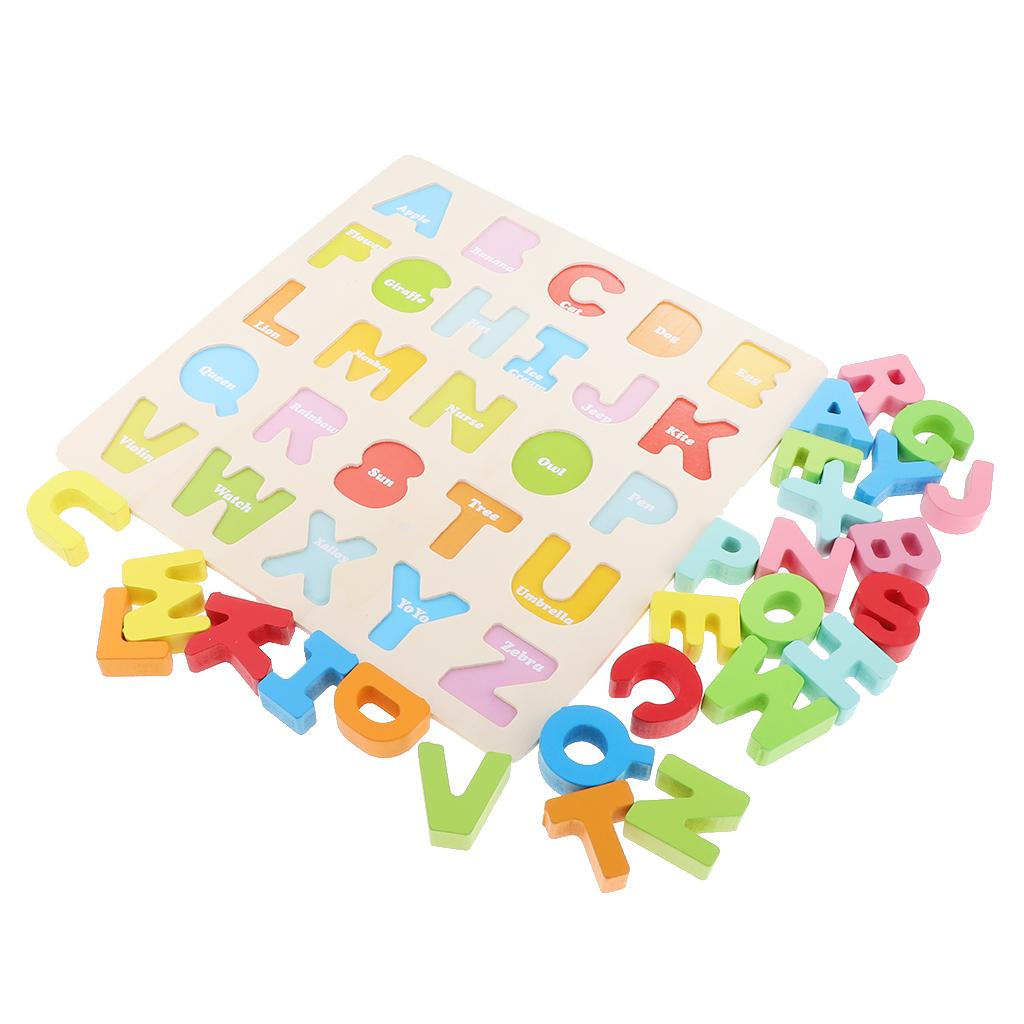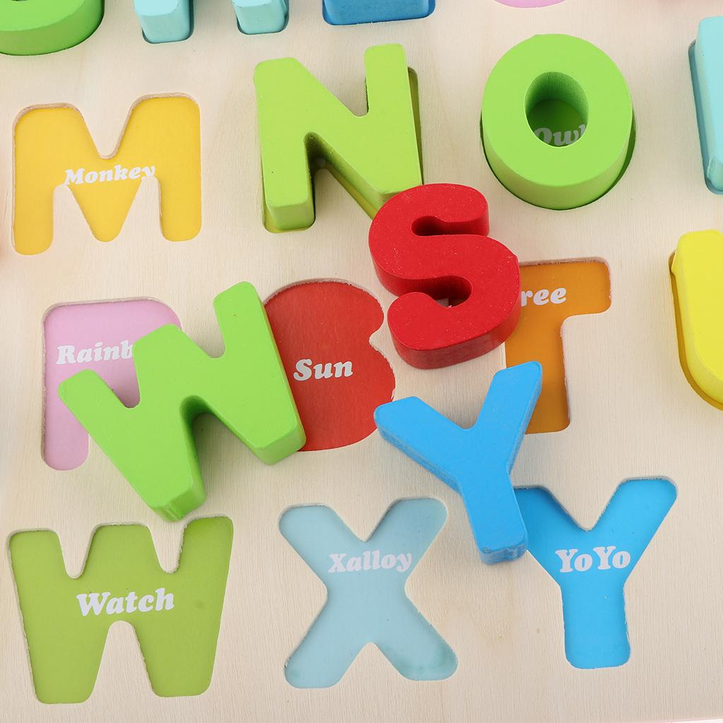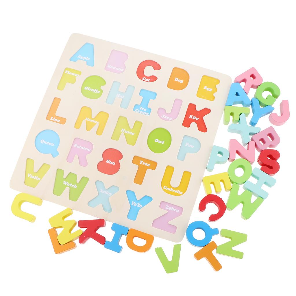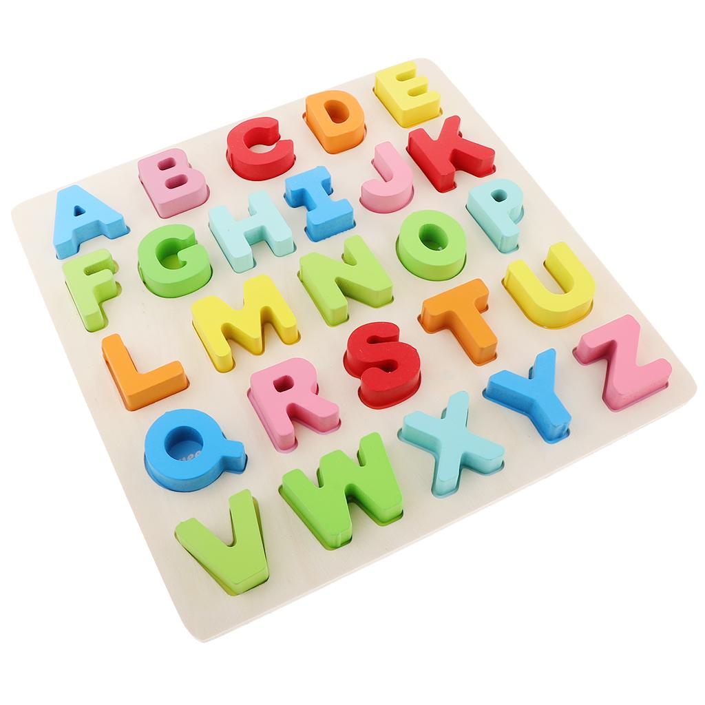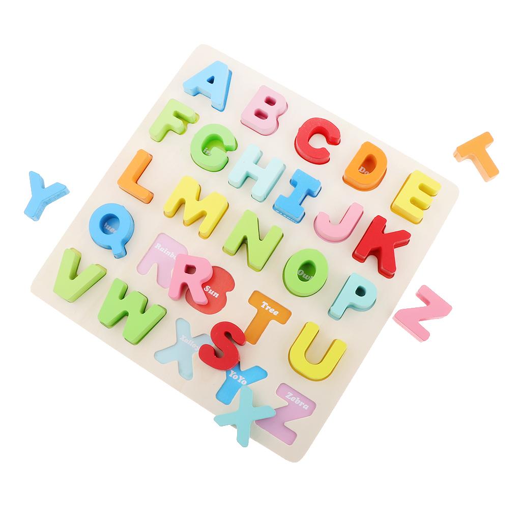Wooden alphabet chunky blocks capital letters puzzle board, kids early education cognitive toy.