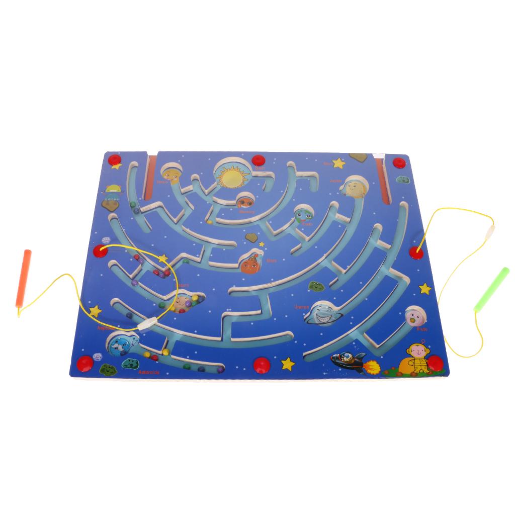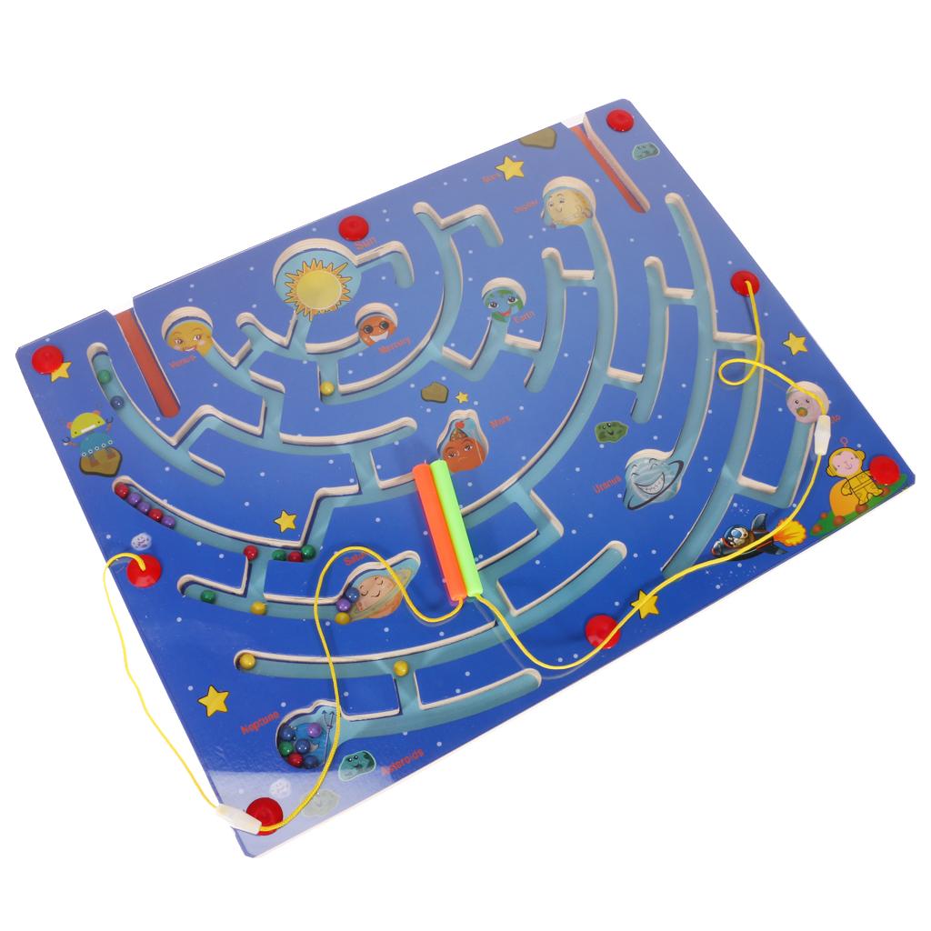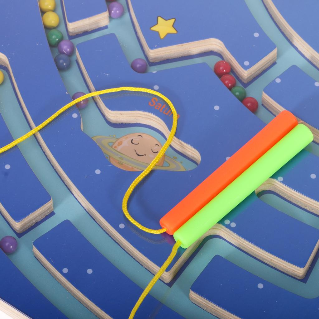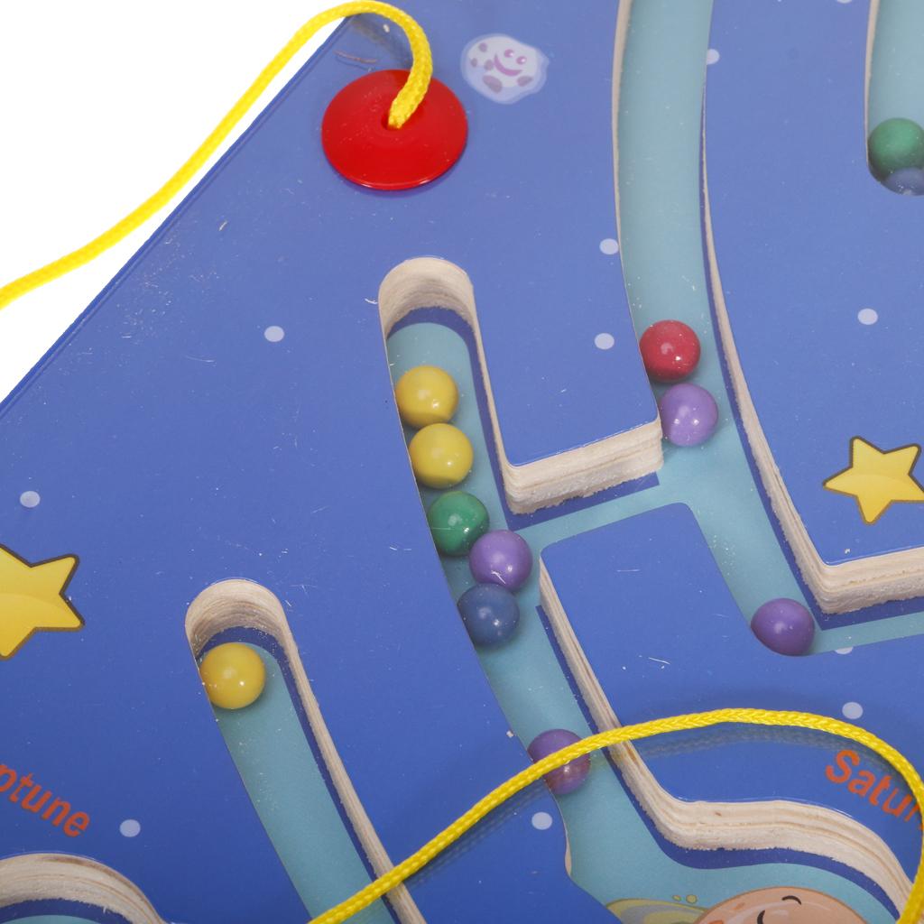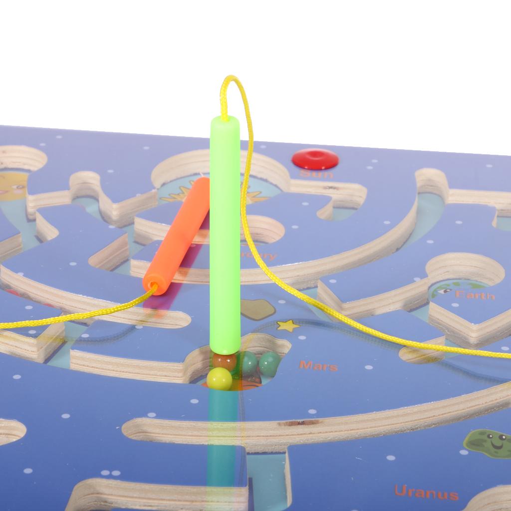 Kids use the magnetic wand to move the coloured wooden beads (encased in the wooden maze) around. Train the wielding skill, stabilize pen's holding and improve logic thinking