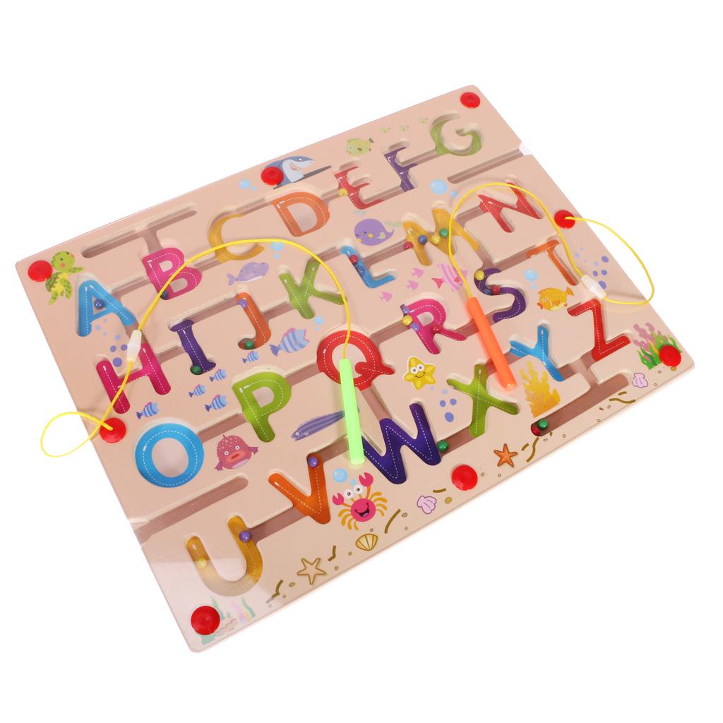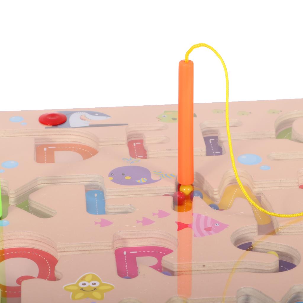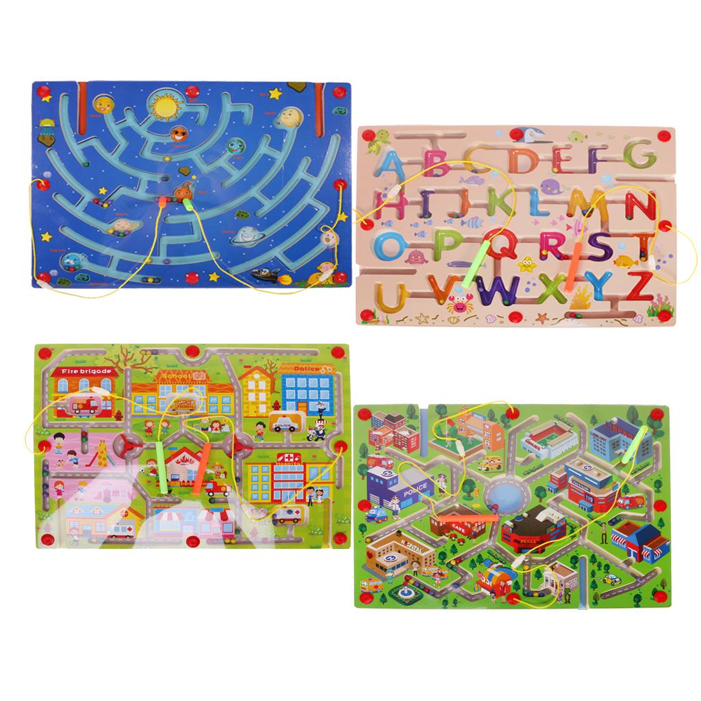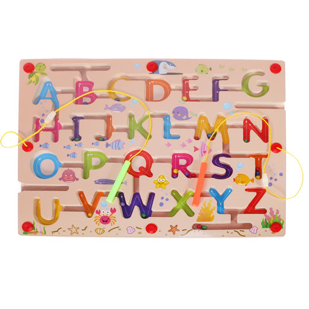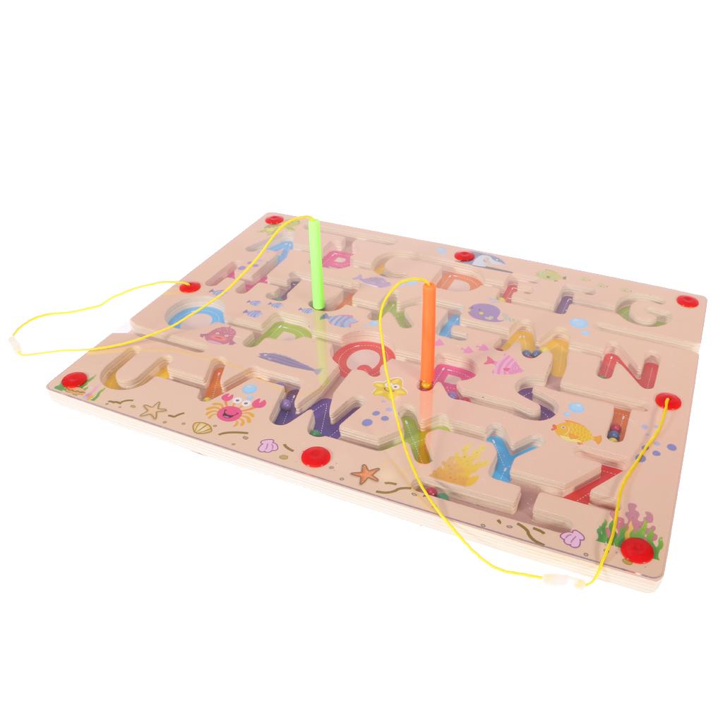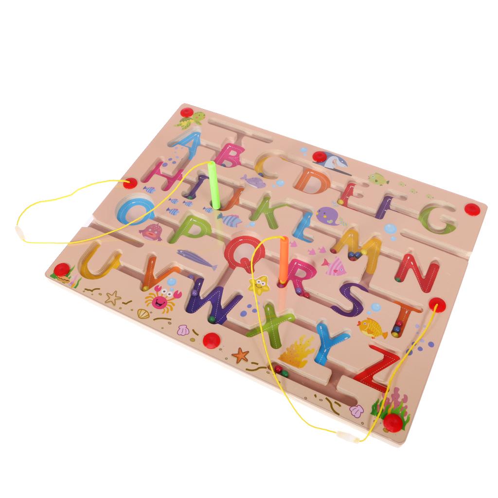 Kids use the magnetic wand to move the coloured wooden beads (encased in the wooden maze) around. Train the wielding skill, stabilize pen's holding and improve logic thinking