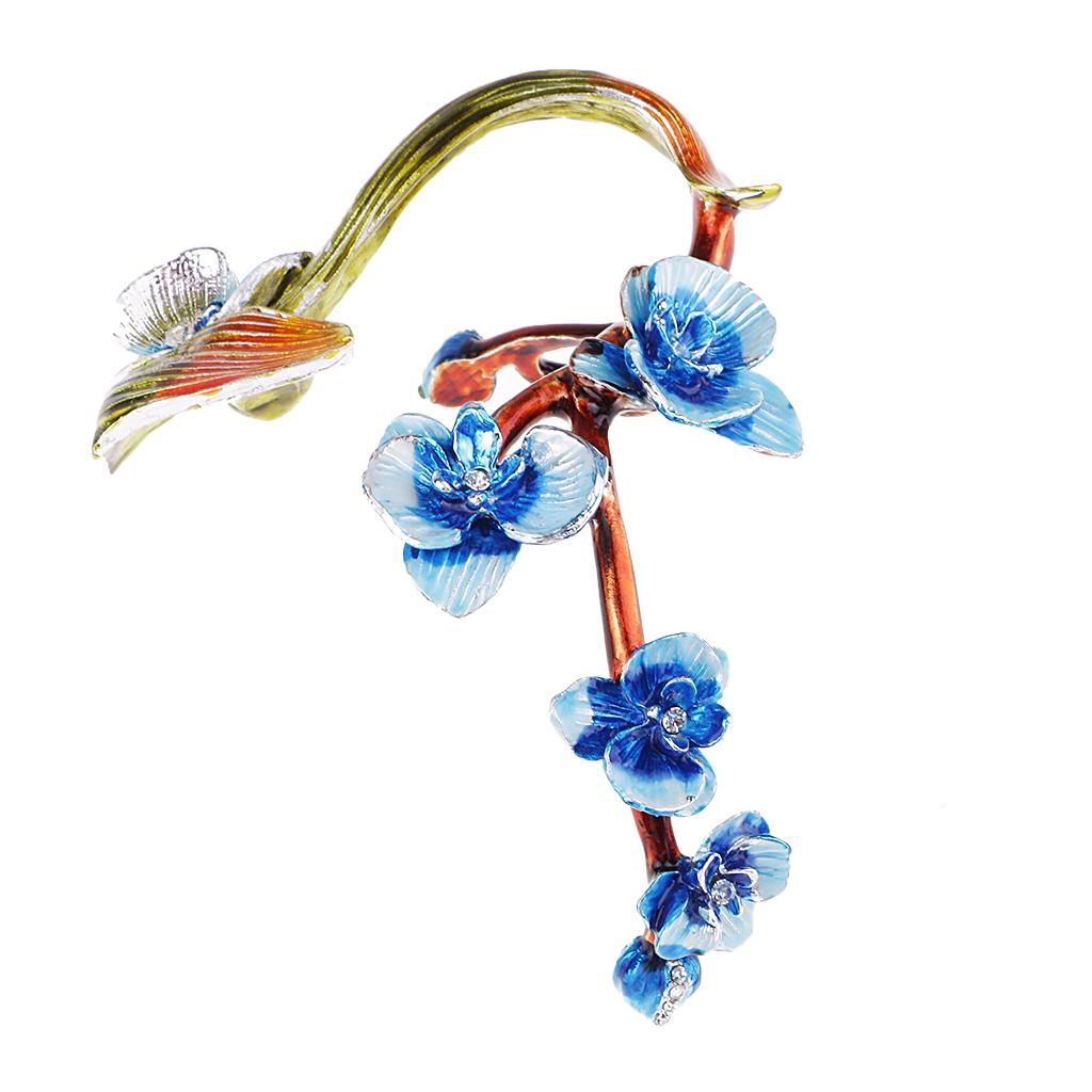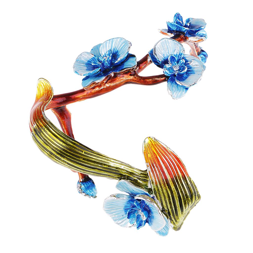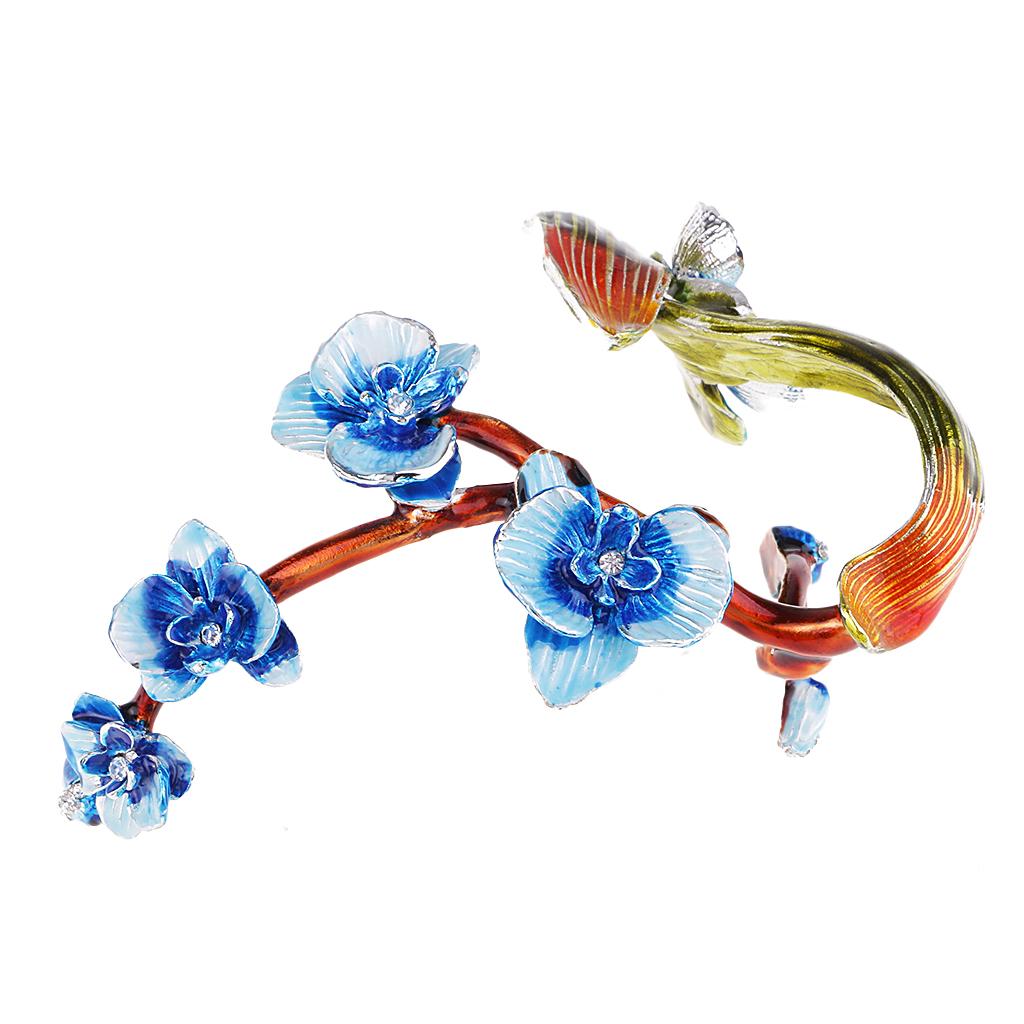 Enamel Glass Coffee Mugs with Tin Alloy Flower Design Handle Phalaenopsis