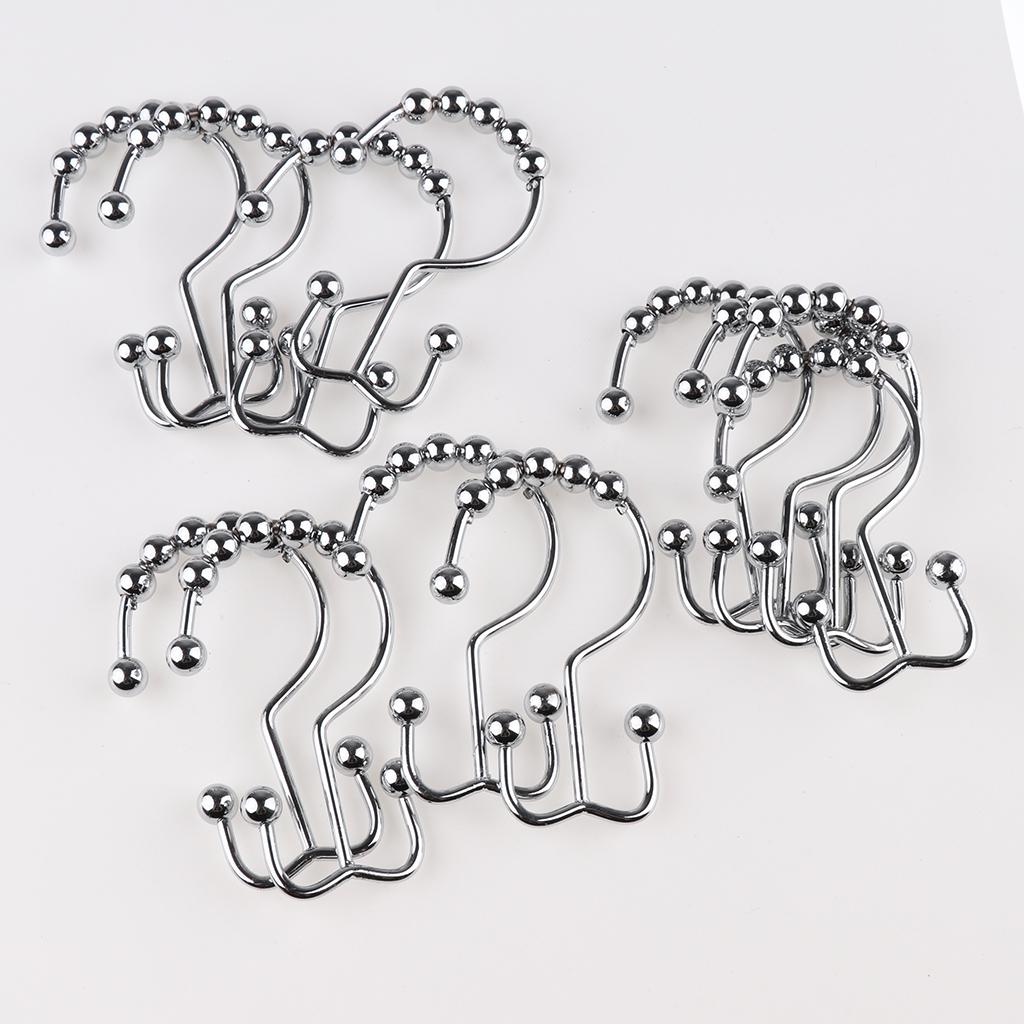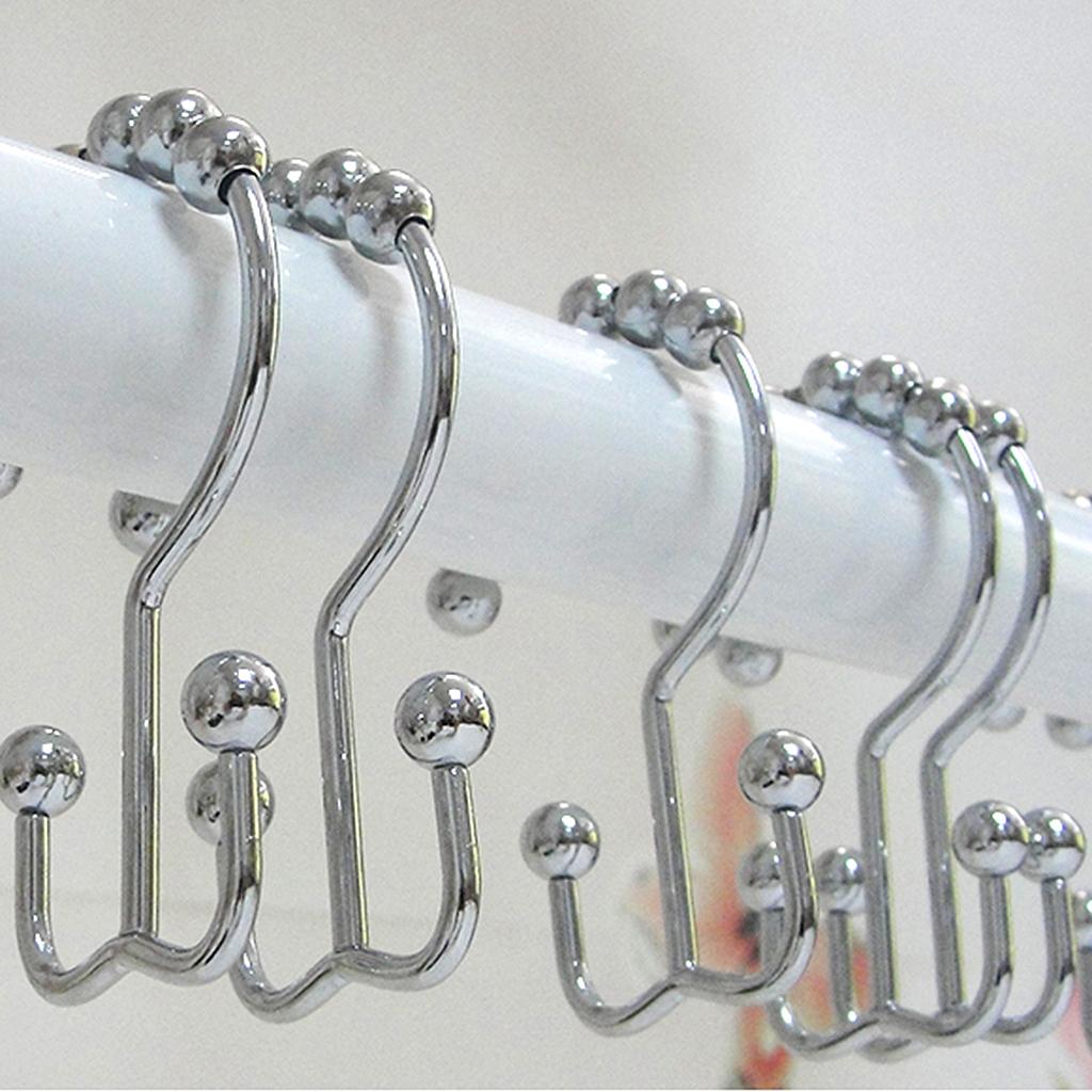 Anti-rust, glide steel shower double-hooks, curtain orgaizer;