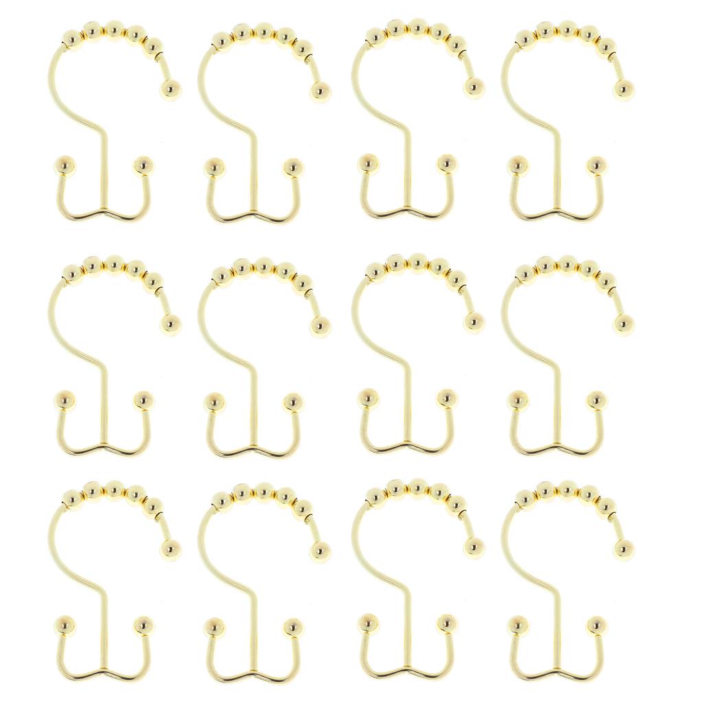 12 Pieces Decor Double Slide Shower Curtain Hook Drapery Valance Hanger Gold