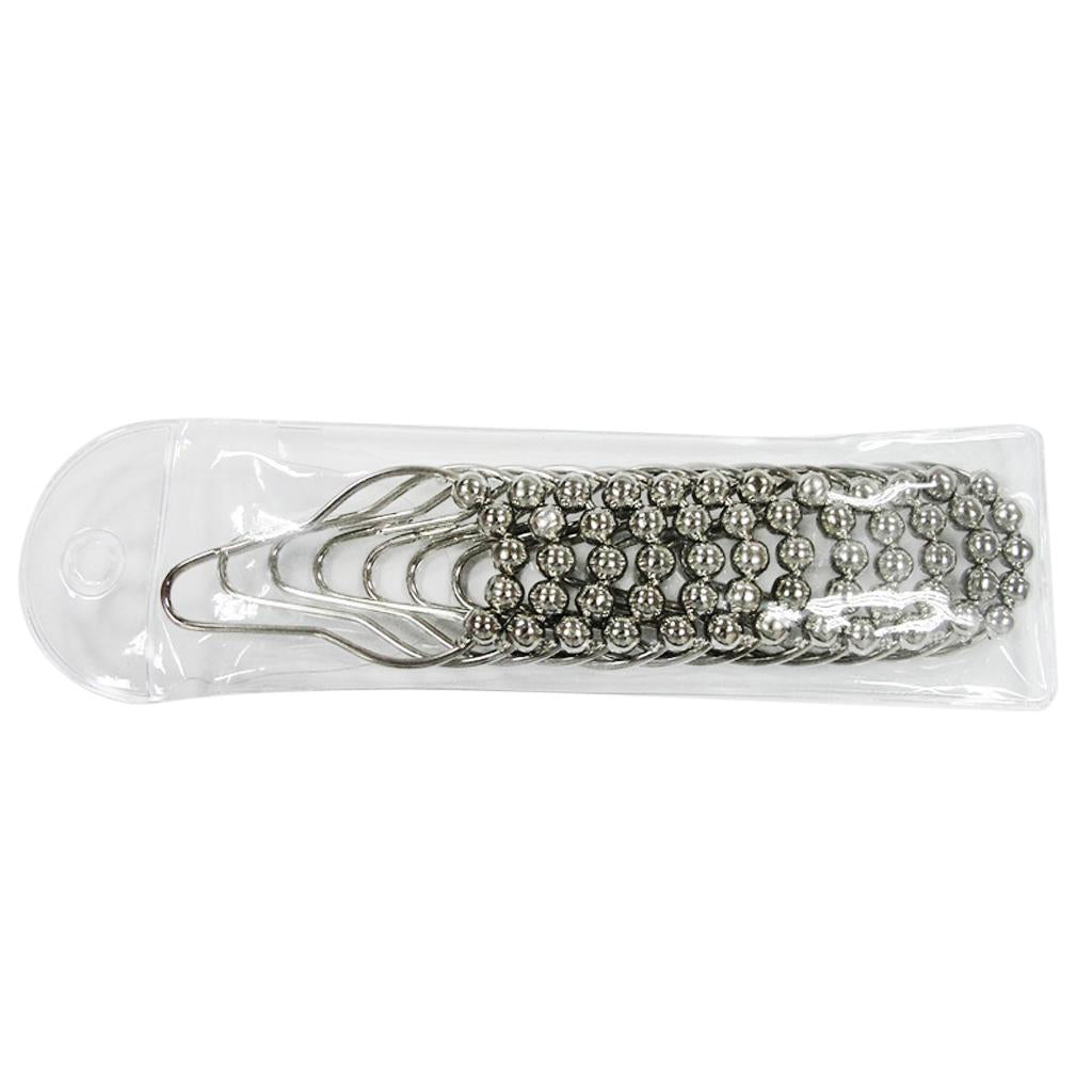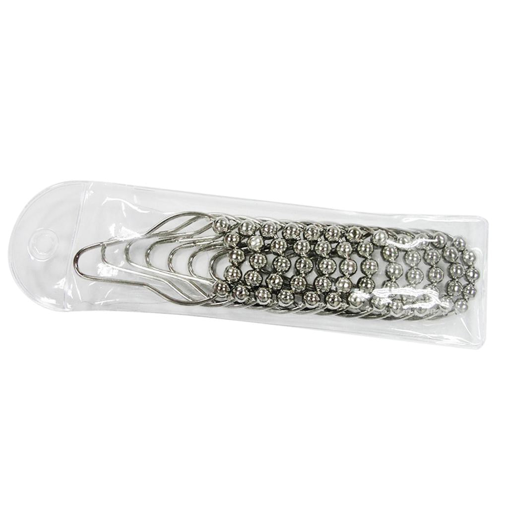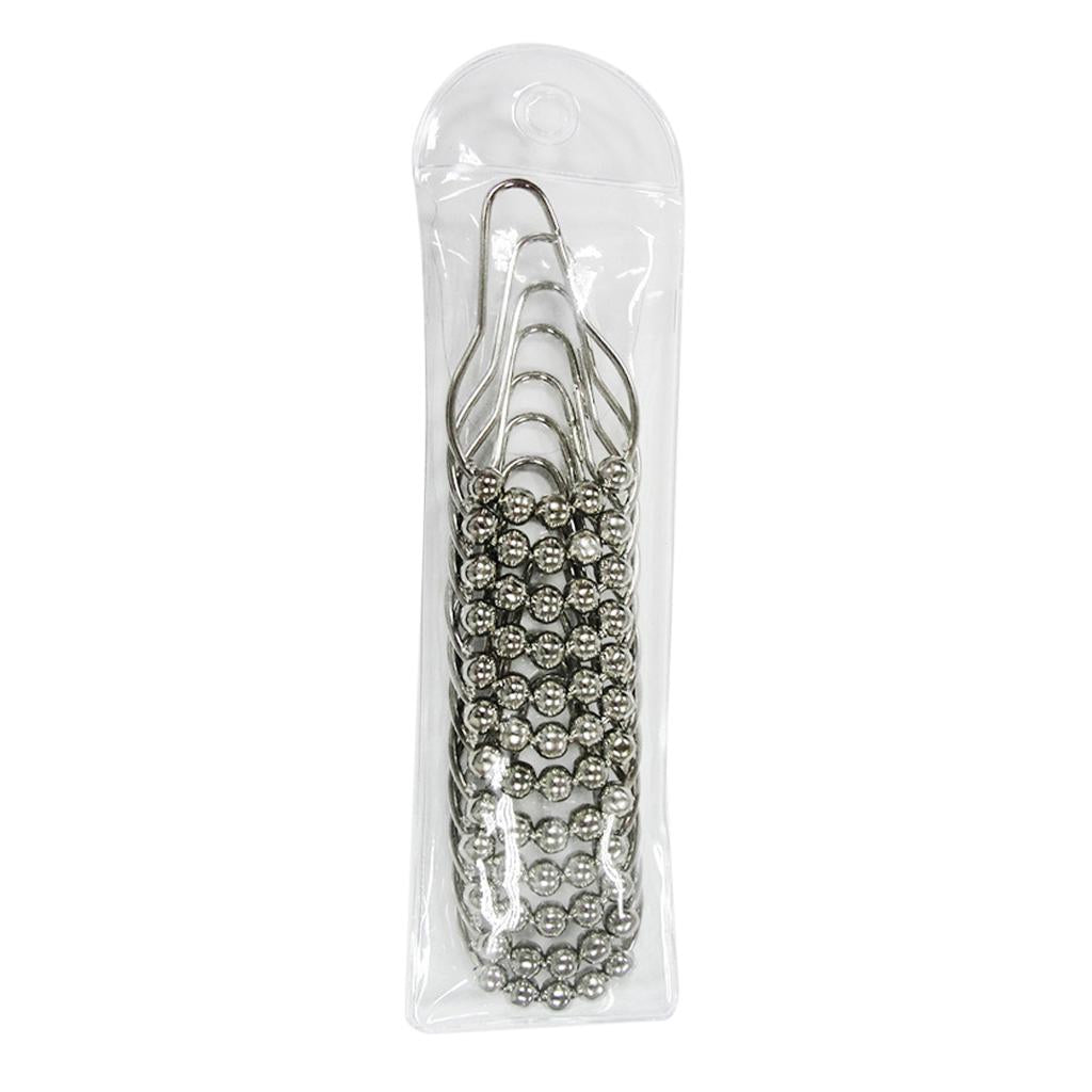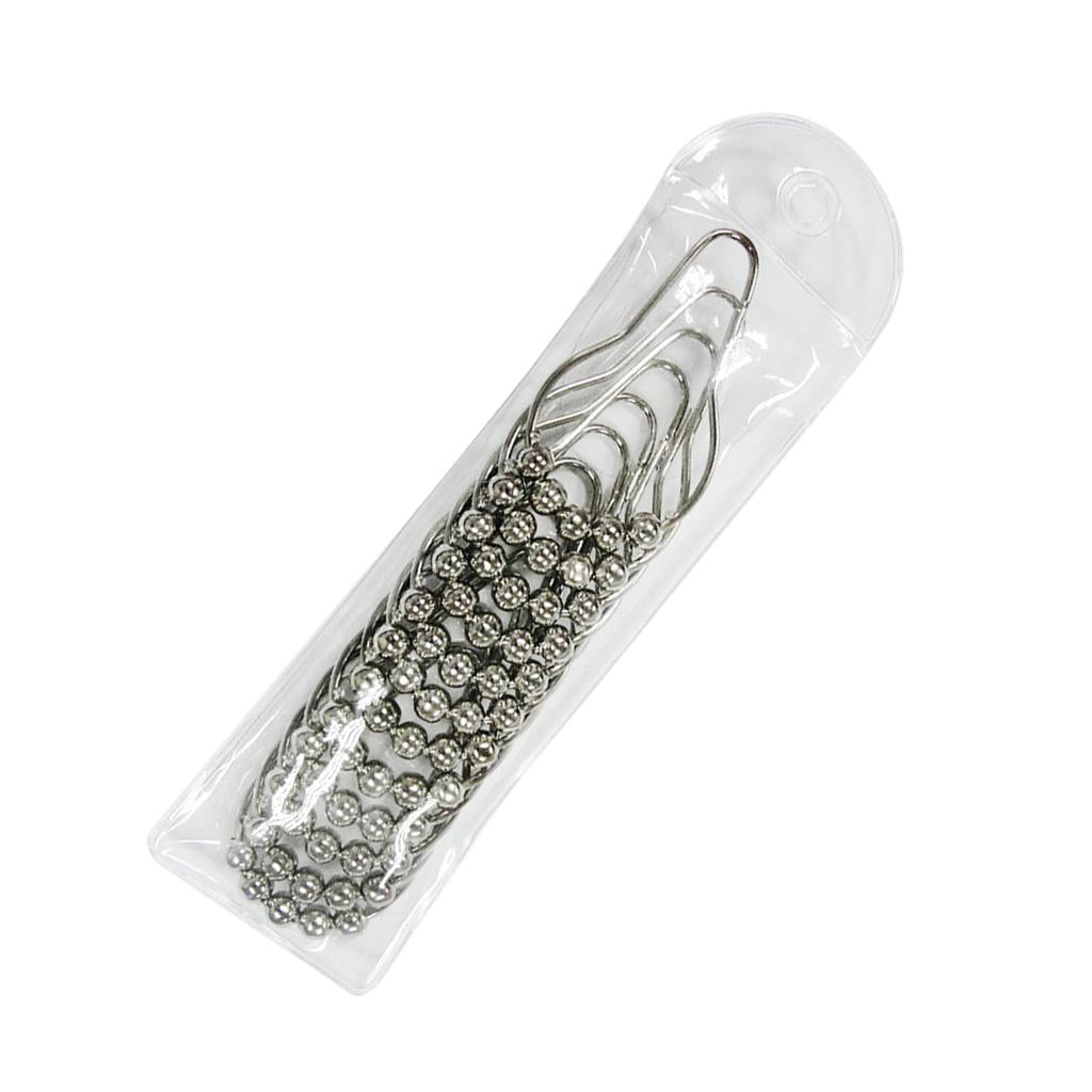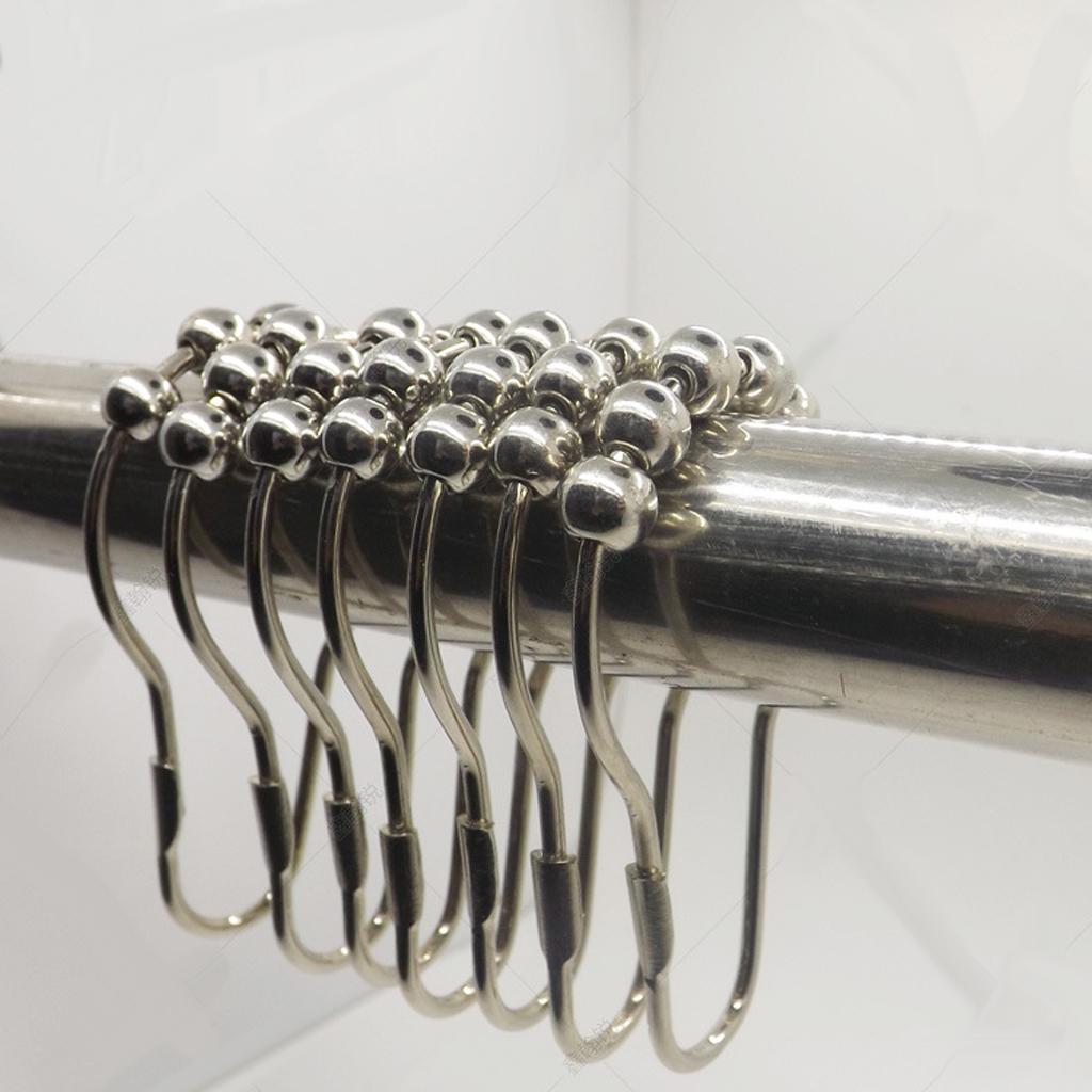 12Pcs Chrome Plated Ball Bead Easy Glide Shower Metal Curtain Rings Hooks