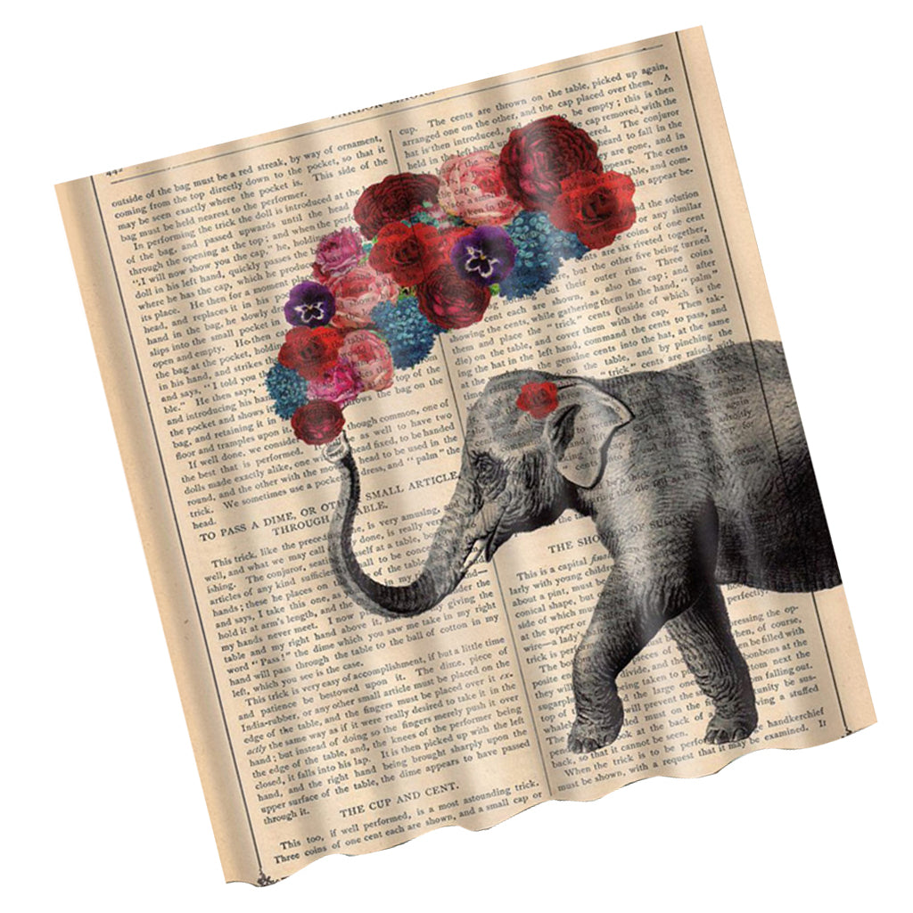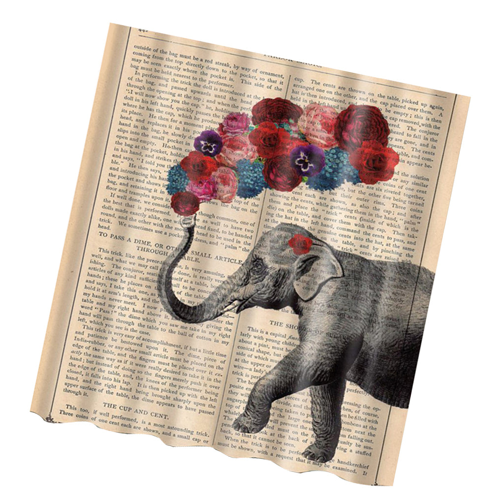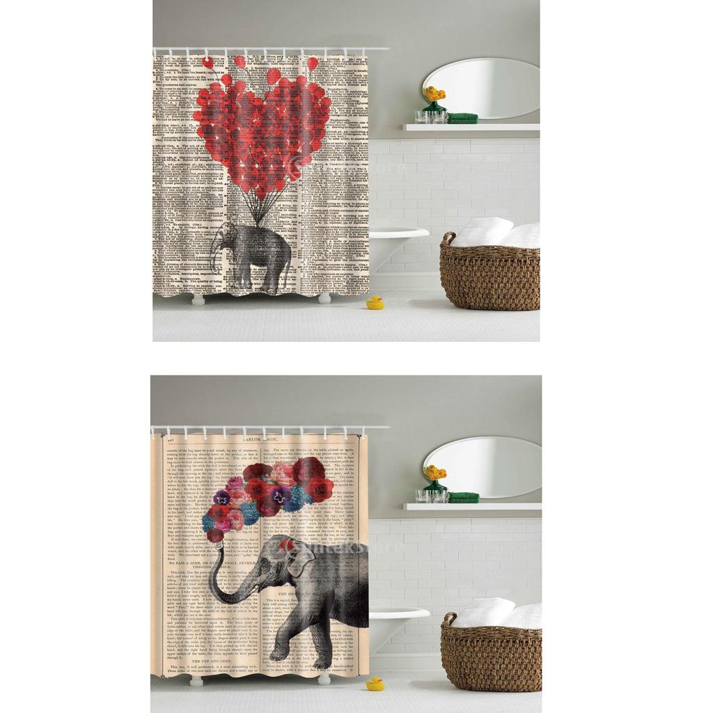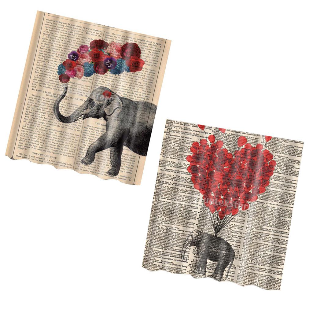2 Pieces Elephant Print Fabric Bath Shower Curtain 12 Hooks Bathroom Use