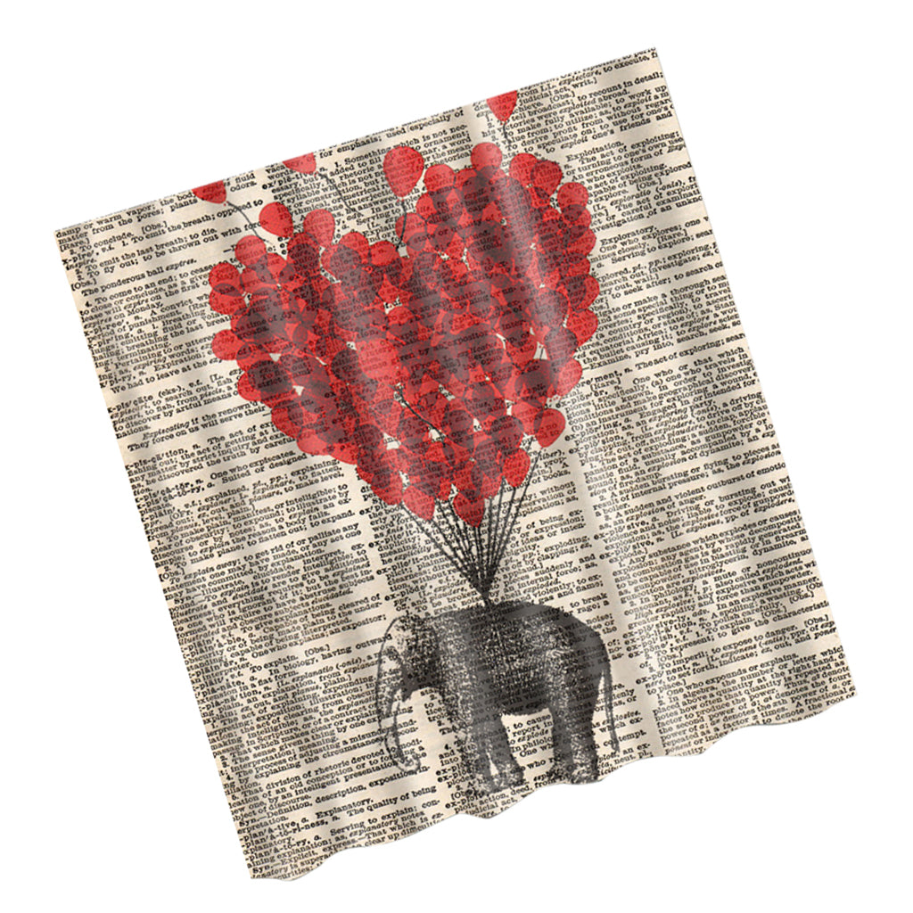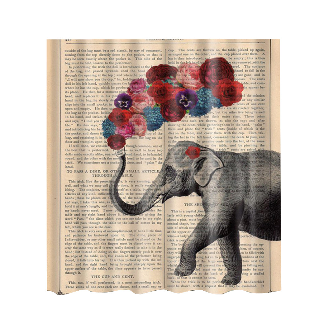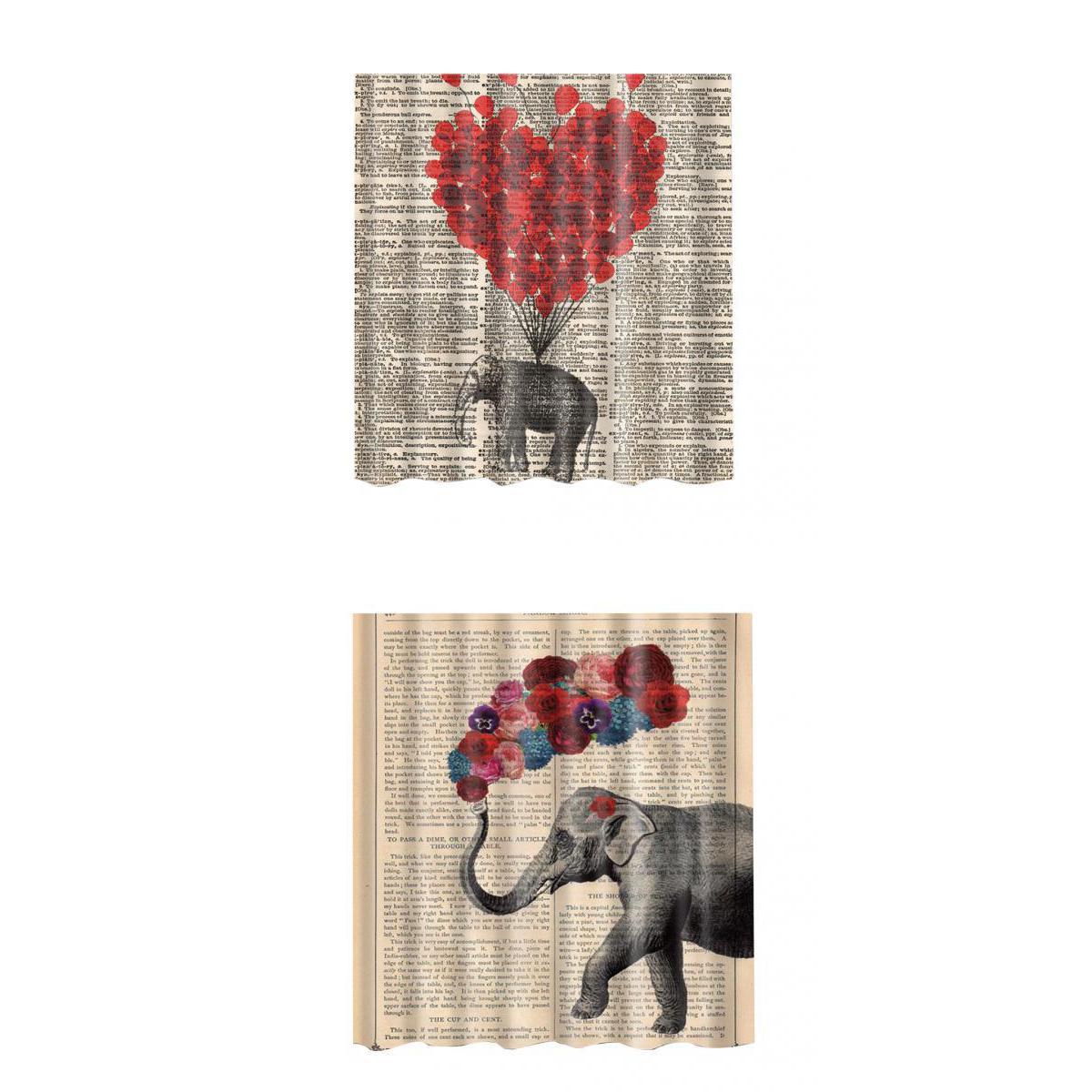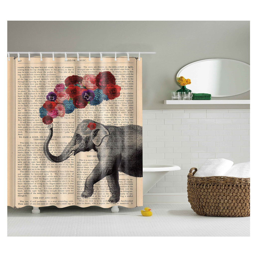 2 Pieces Elephant Print Fabric Bath Shower Curtain 12 Hooks Bathroom Use