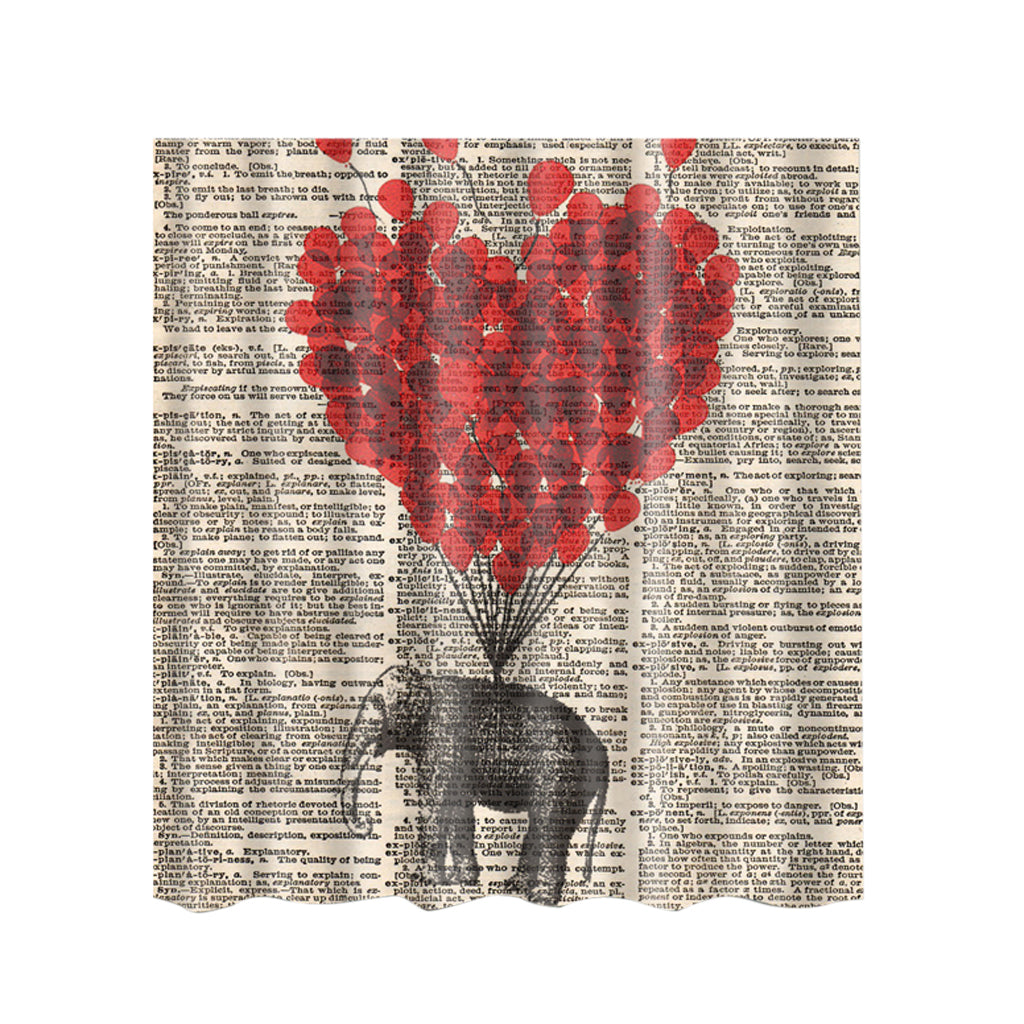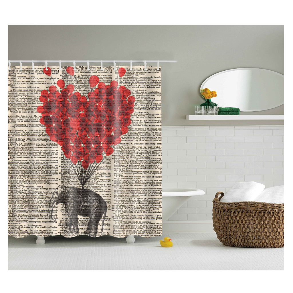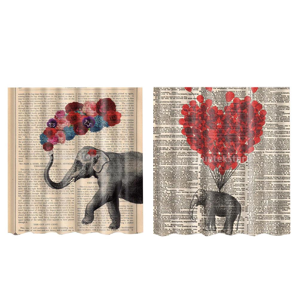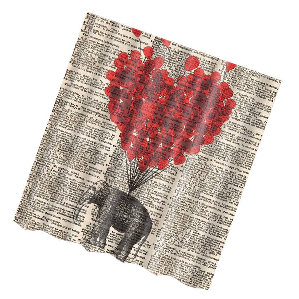2 Pieces Elephant Print Fabric Bath Shower Curtain 12 Hooks Bathroom Use