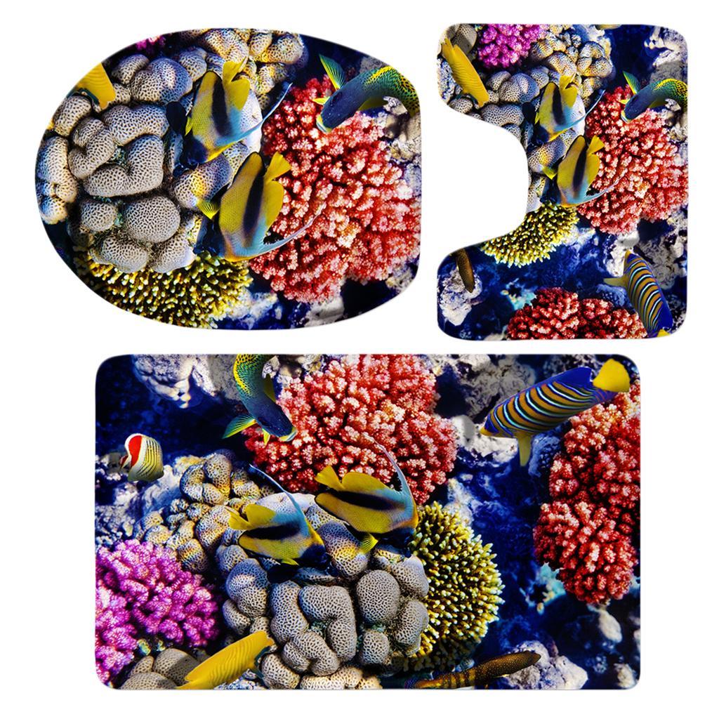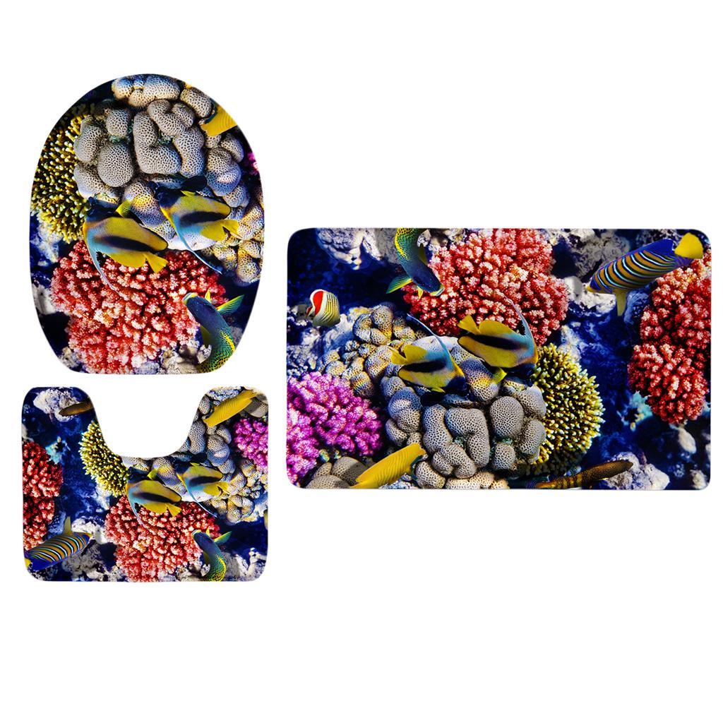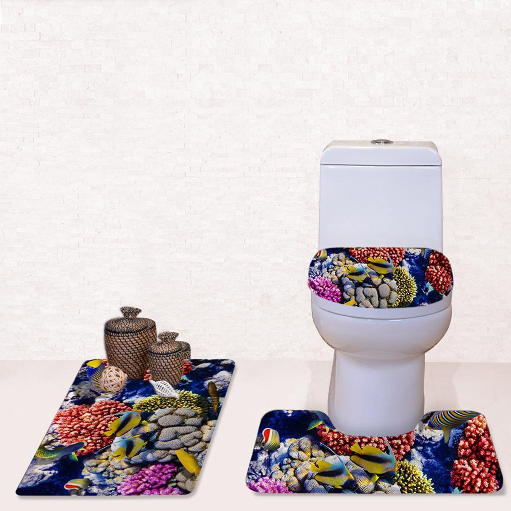 3 Piece Animal Toilet Covers Set included:1 piece Bath Mat 1 piece Pedestal Rug 1 piece Lid Toliet Cover