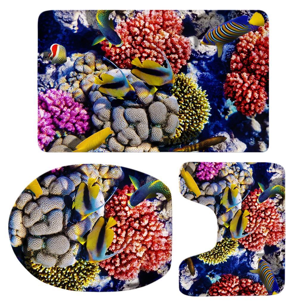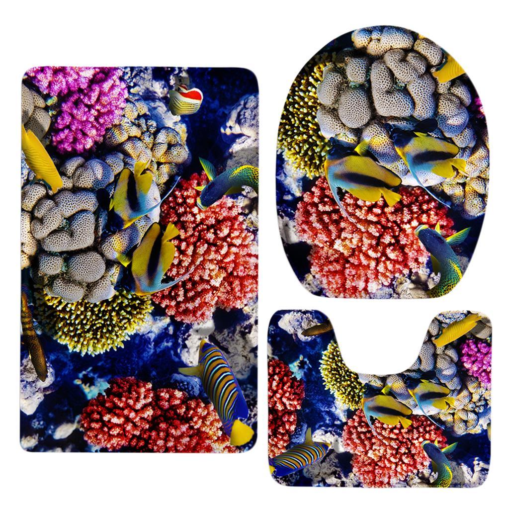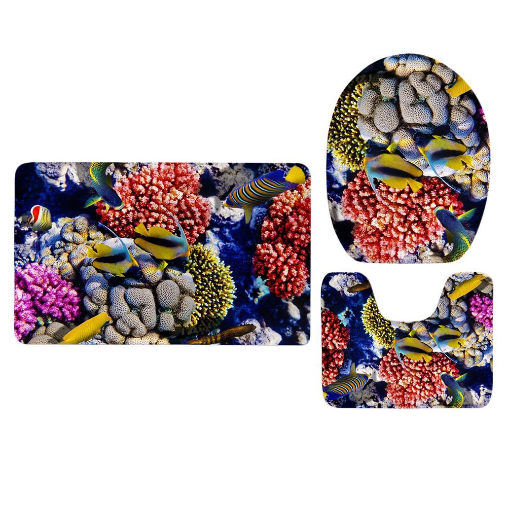 3 Piece Animal Toilet Covers Set included:1 piece Bath Mat 1 piece Pedestal Rug 1 piece Lid Toliet Cover