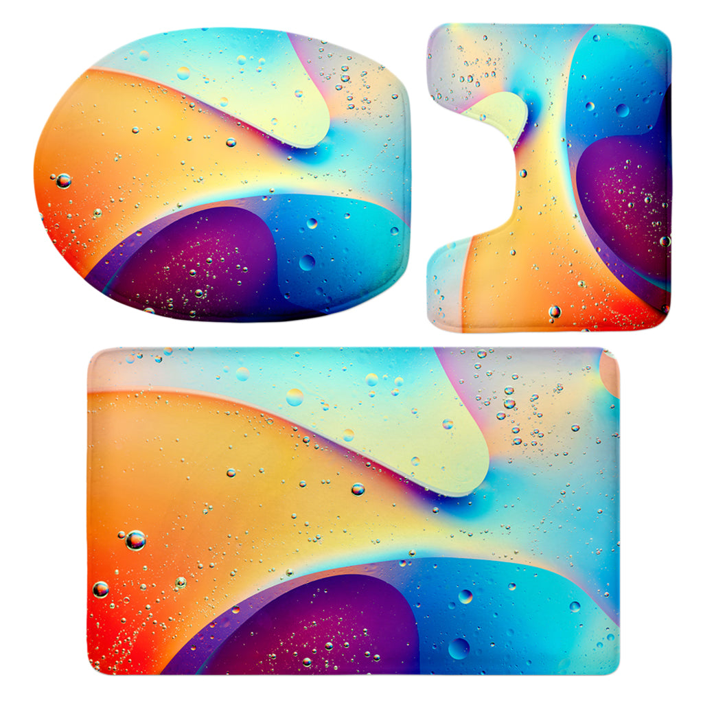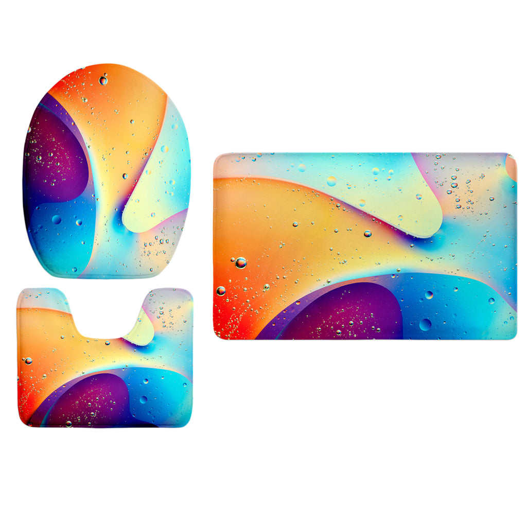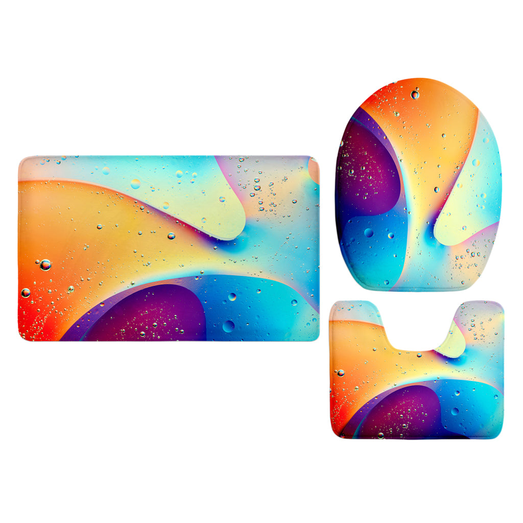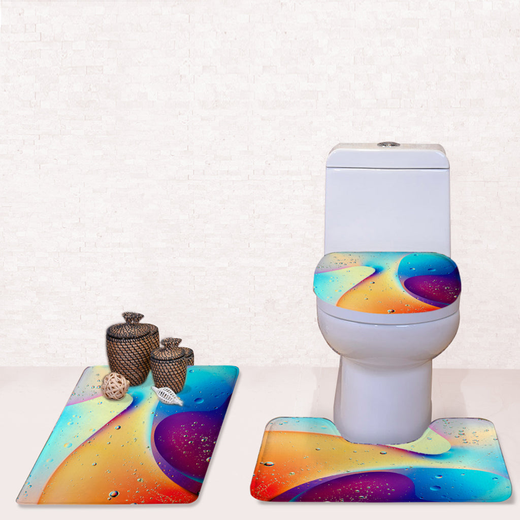 3pcs bathroom toilet cover set--U shape pedestal rug + lid toilet cover + bath mat.