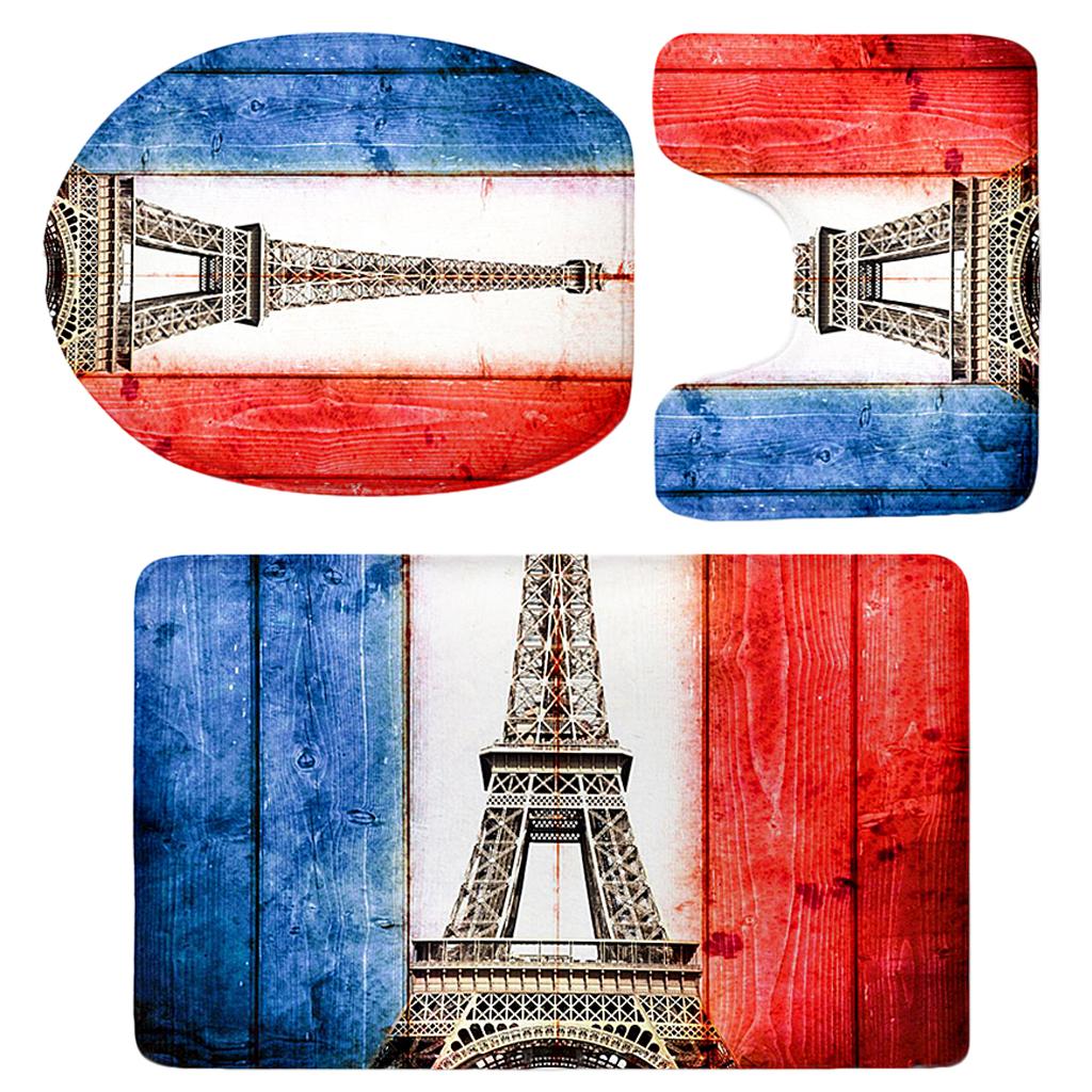 3pcs bathroom toilet cover set--U shape pedestal rug + lid toilet cover + bath mat.