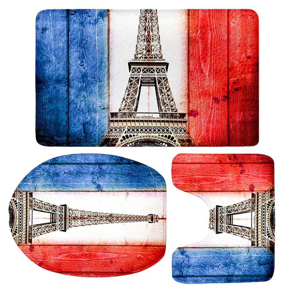 1 Set (U shape Rug + Lid Toilet Cover + Rectangular Bath Mat Set)