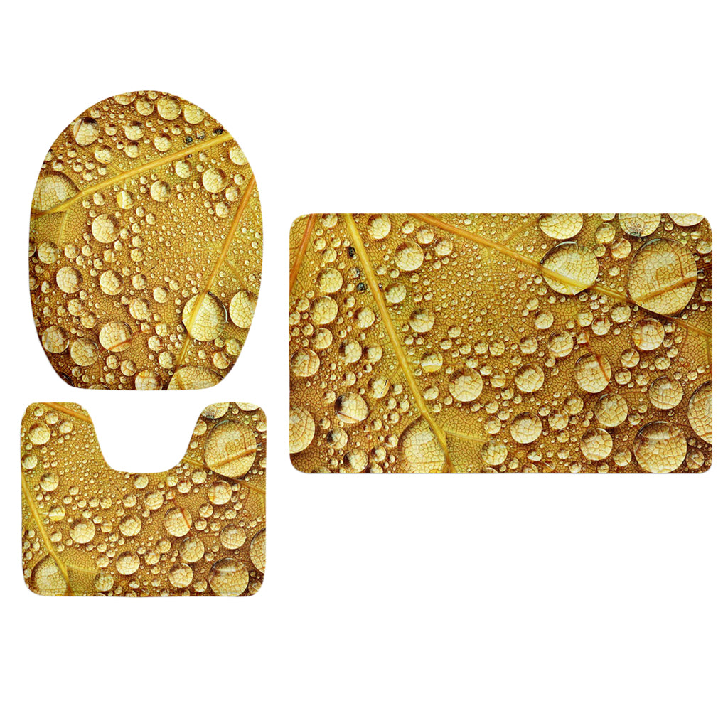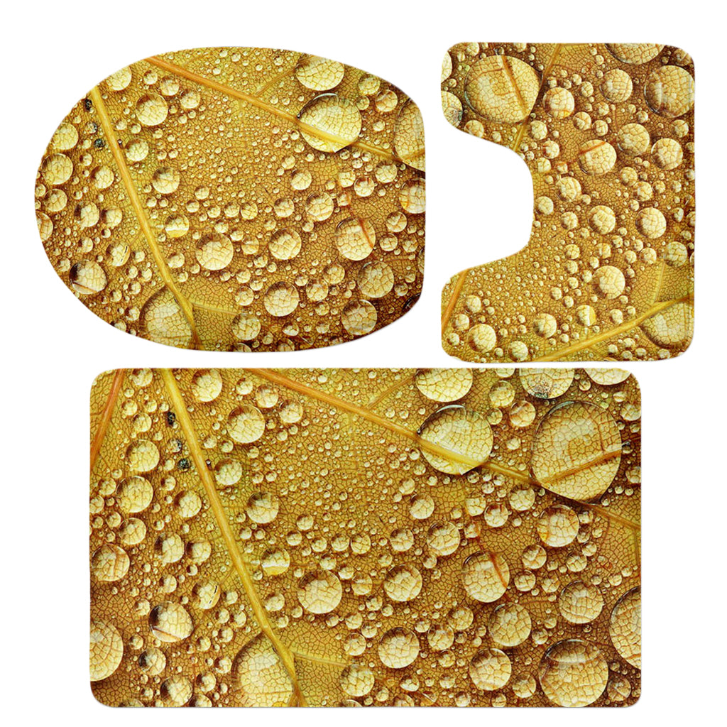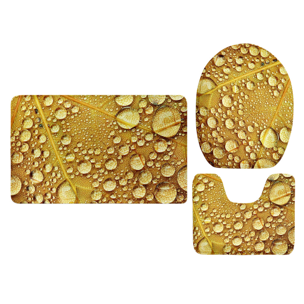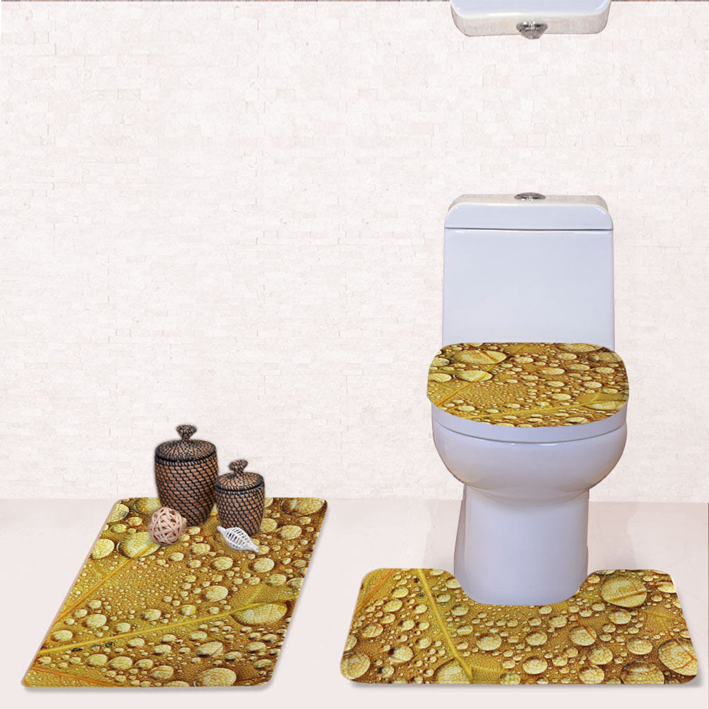 3pcs bathroom toilet cover set--U shape pedestal rug + lid toilet cover + bath mat.