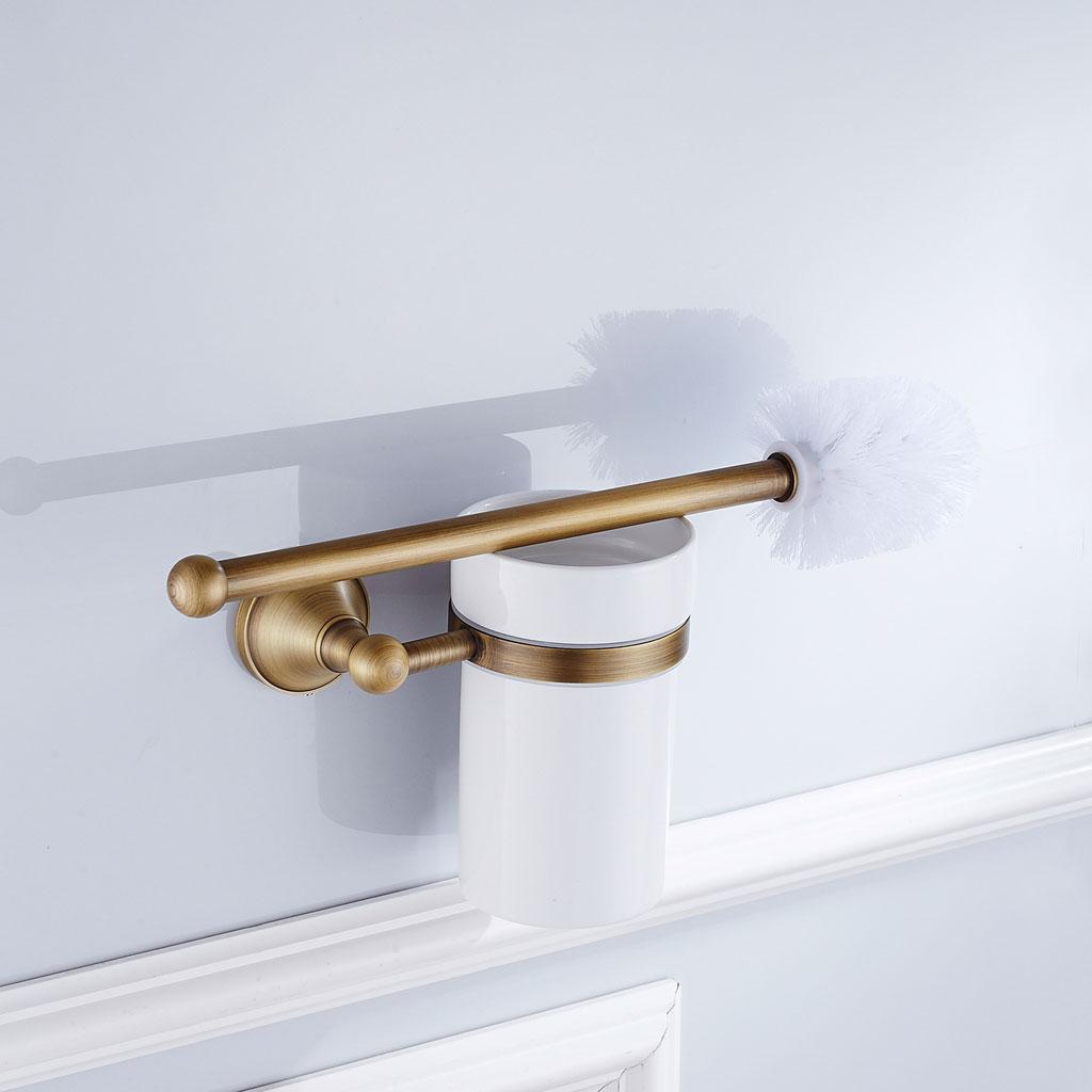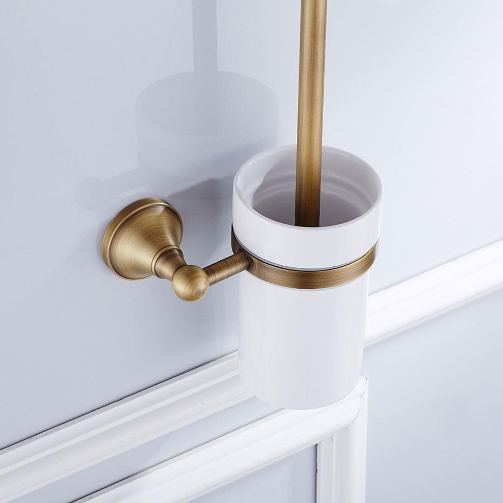 Design: Included 1 Brass toilet brush holder and a white ceramic cup.