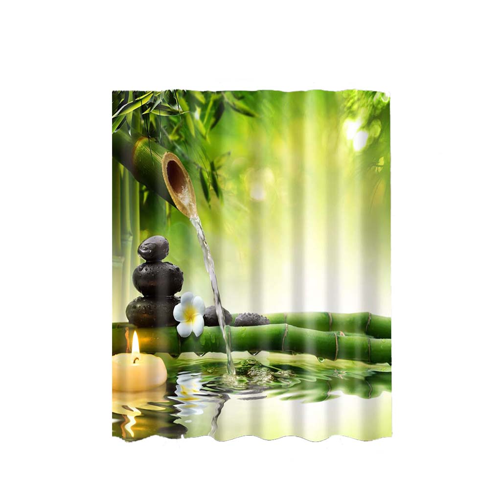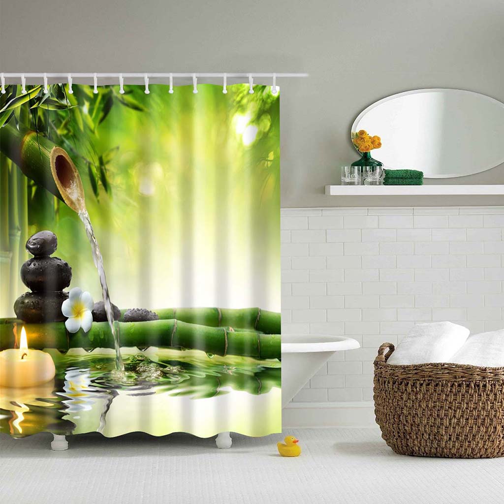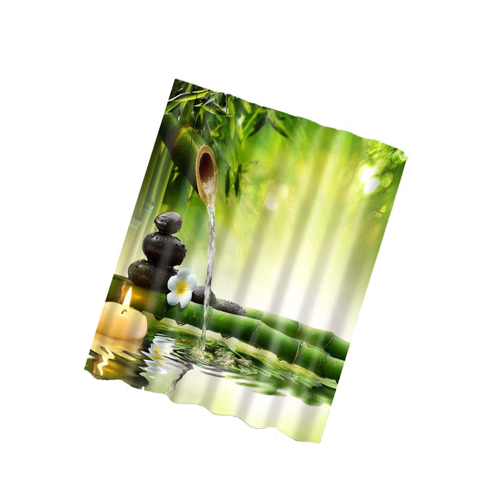 Bath Shower Sheer Waterproof Polyester Curtain Panel Decor w/12 Hook Bamboo