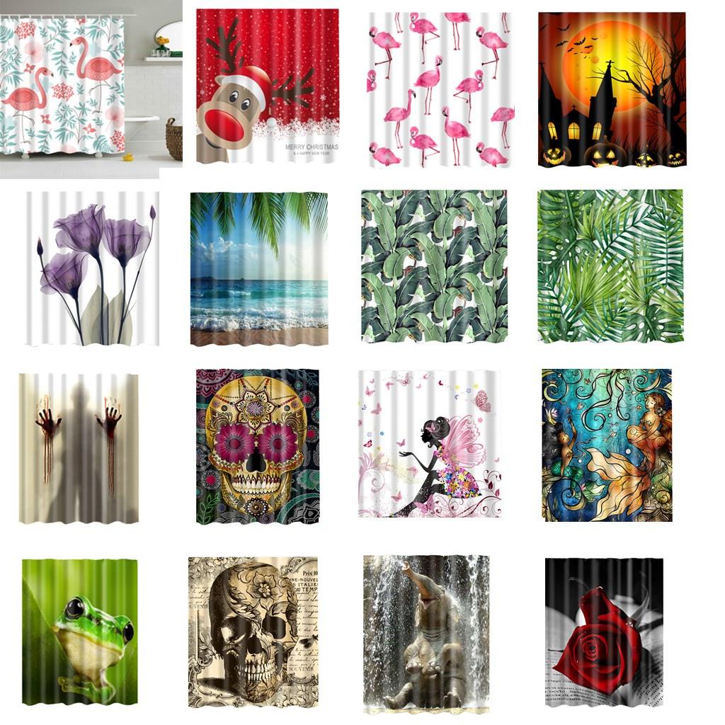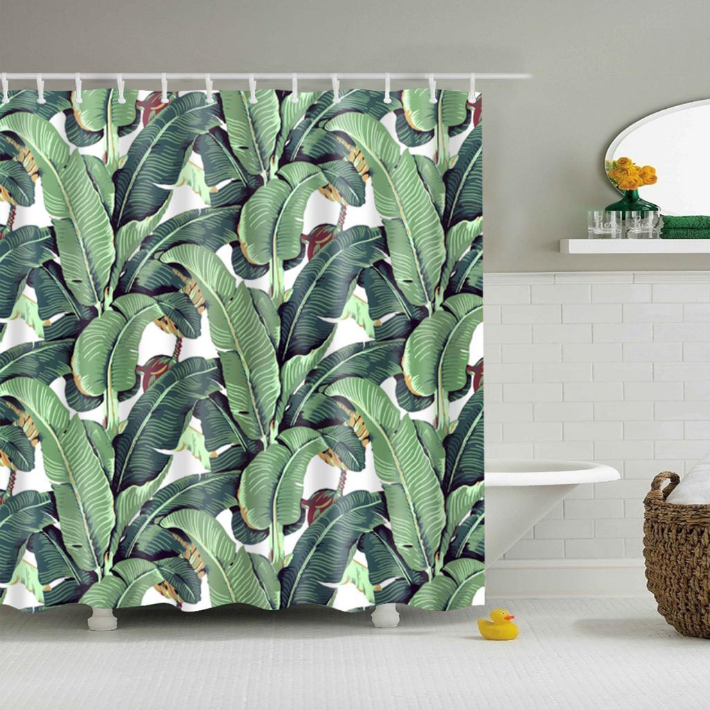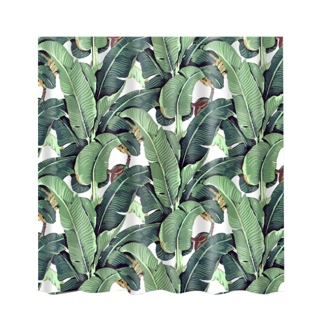Bathroom Decor Shower Curtain Waterproof Fabric with Hooks Banana Leaves#2
