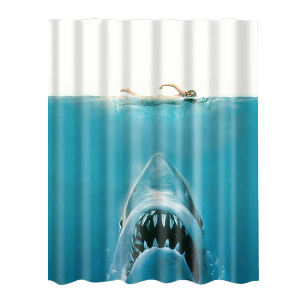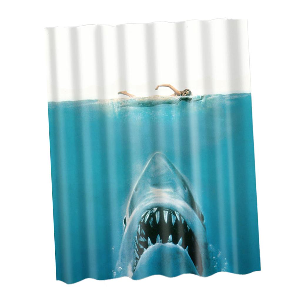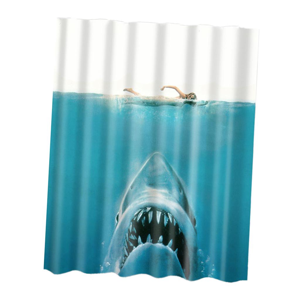 Bathroom Shower Curtain Sheer Waterproof Panel w/ Hooks Woman and Shark
