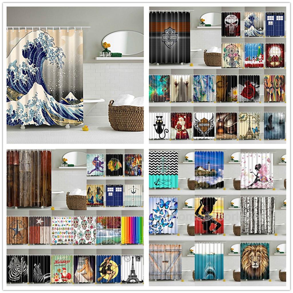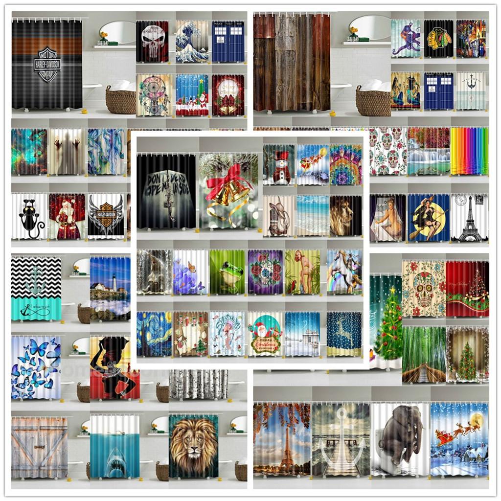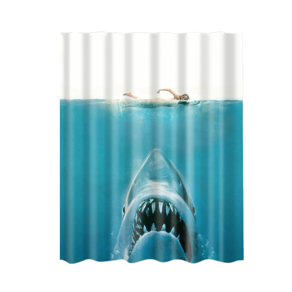 Bathroom Shower Curtain Sheer Waterproof Panel w/ Hooks Woman and Shark