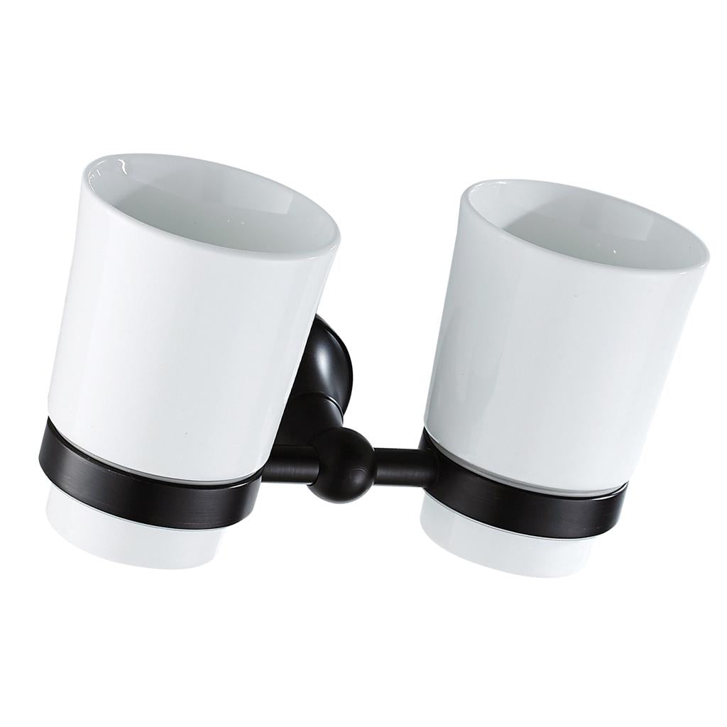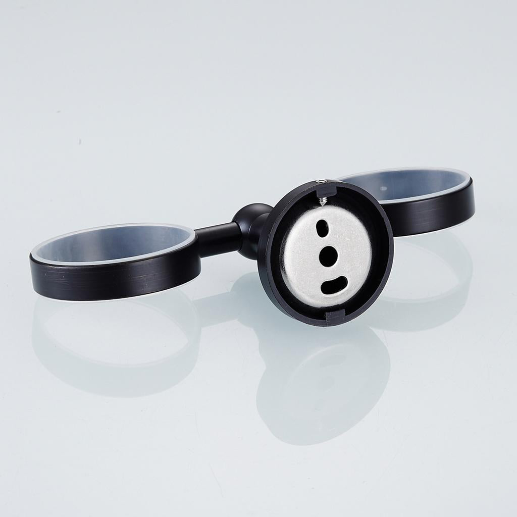 Bathroom Wall Mount Round Double Tumbler Cup Holder with Cups Set Black