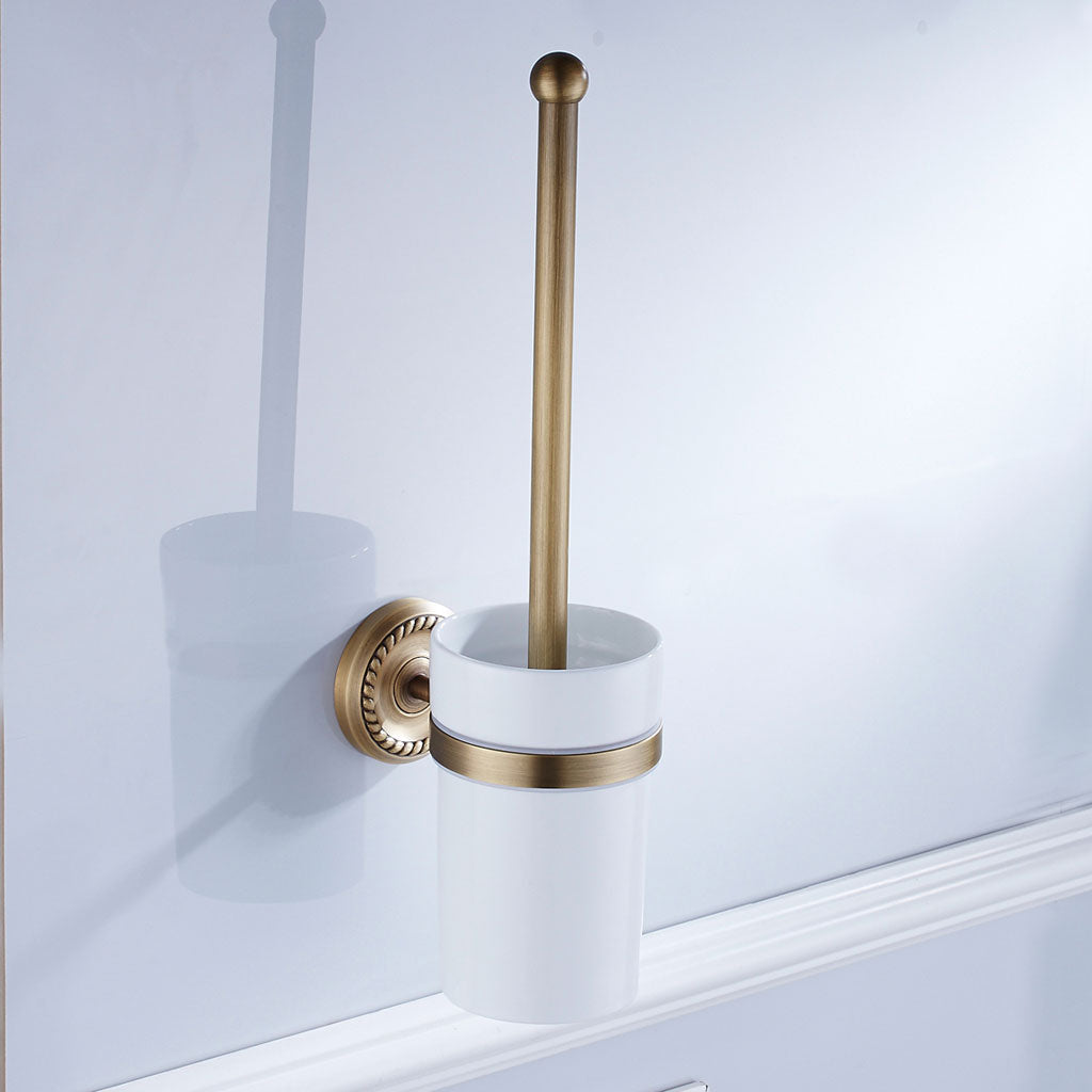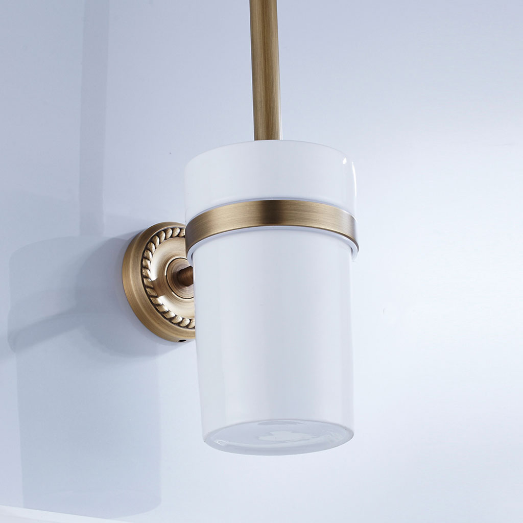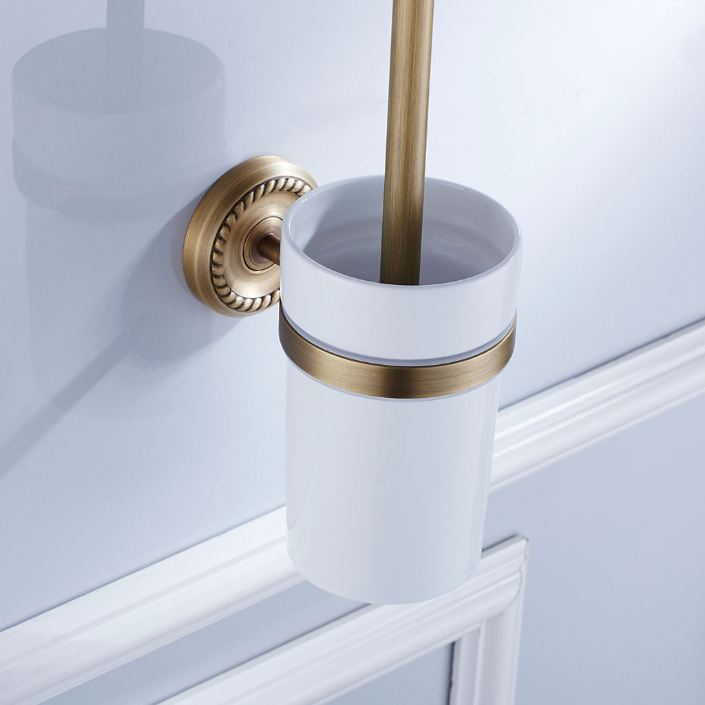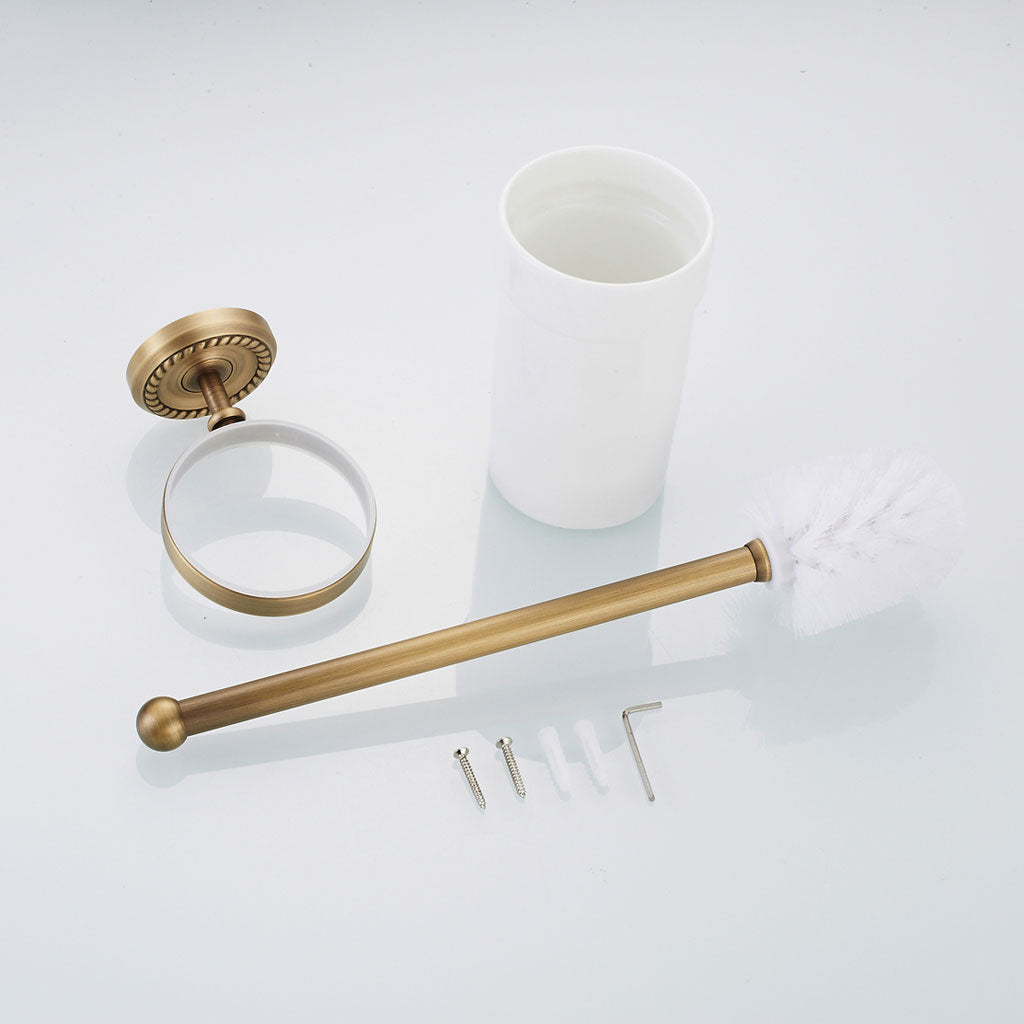 Design: Included 1 Brass toilet brush holder and a white ceramic cup.