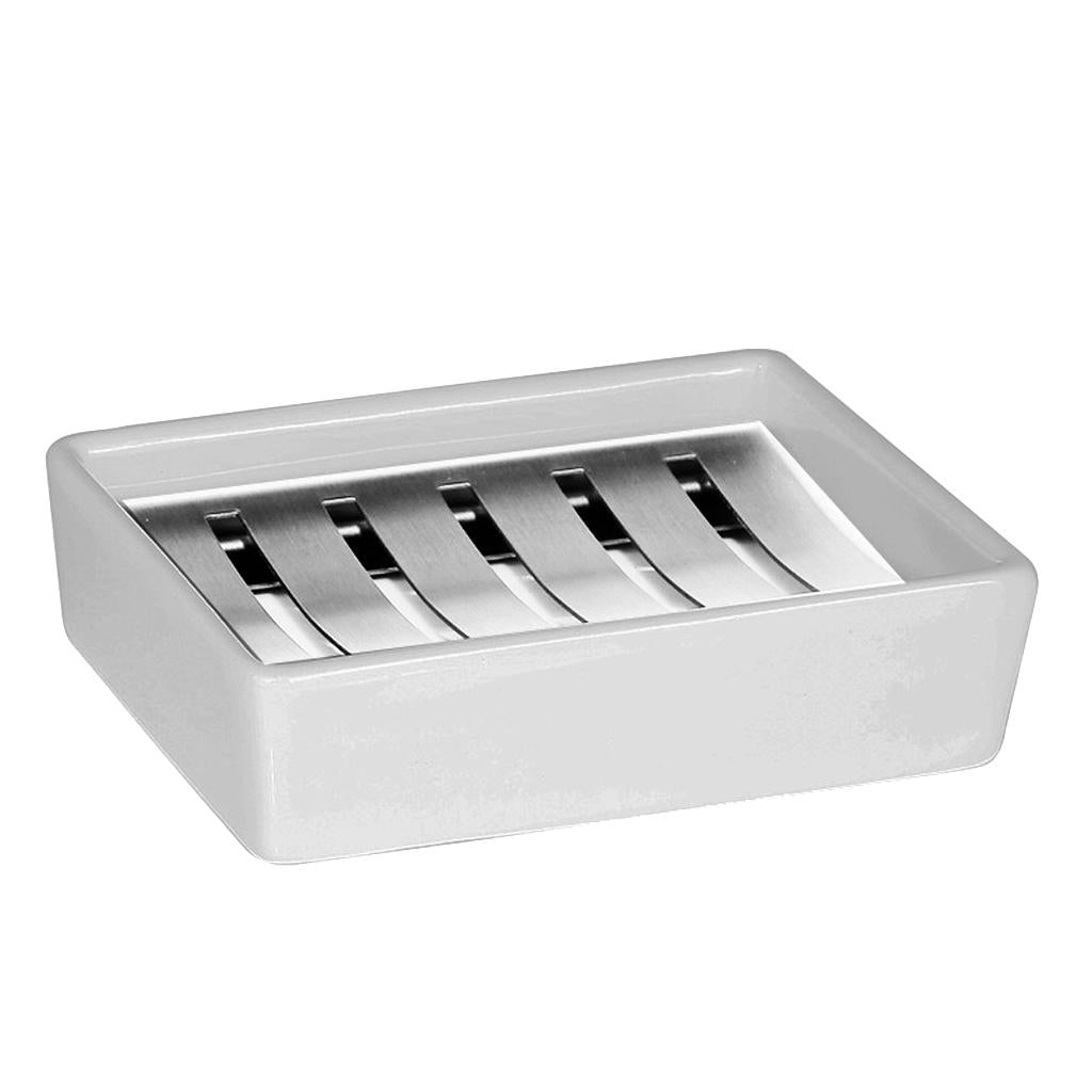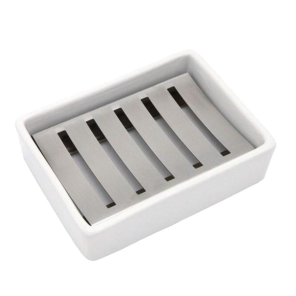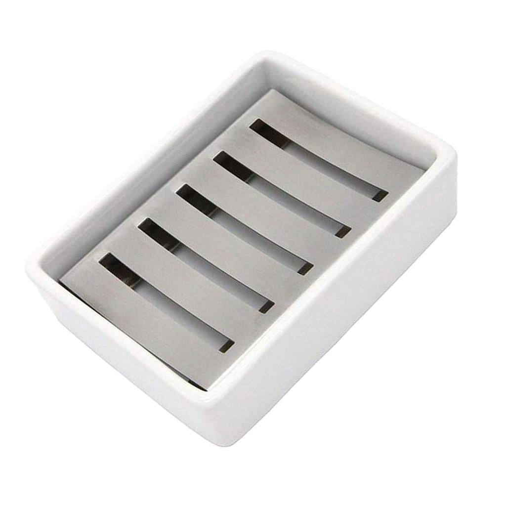 Ceramic Soap Dish Stainless Steel Soap Holder Bathroom Draining Soap Box