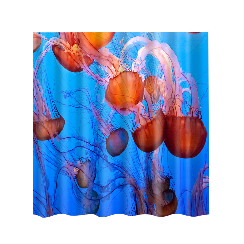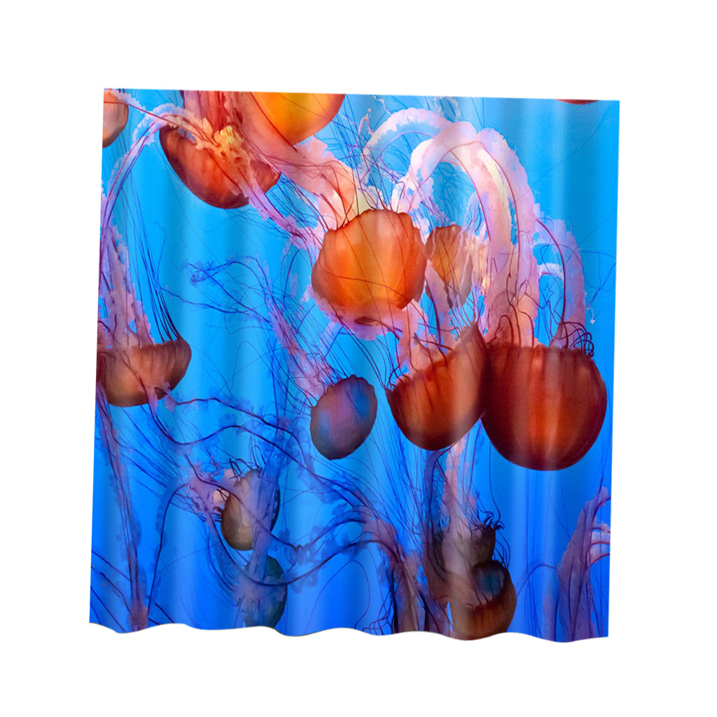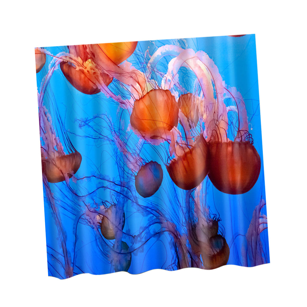 Extra Long Bath Shower Curtain With 12 Hooks Set Hanging Drapes Jellyfish