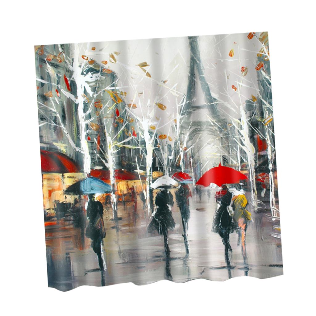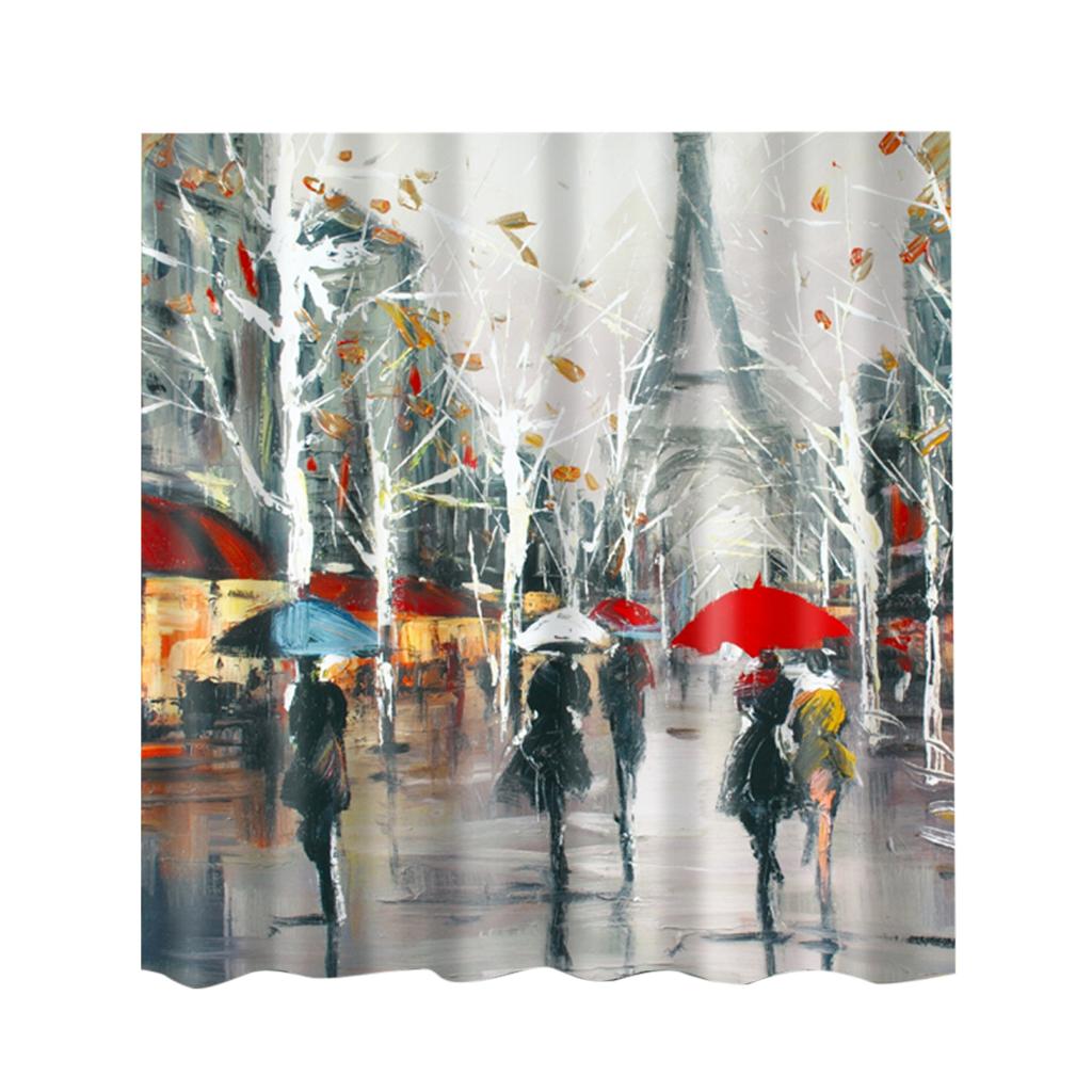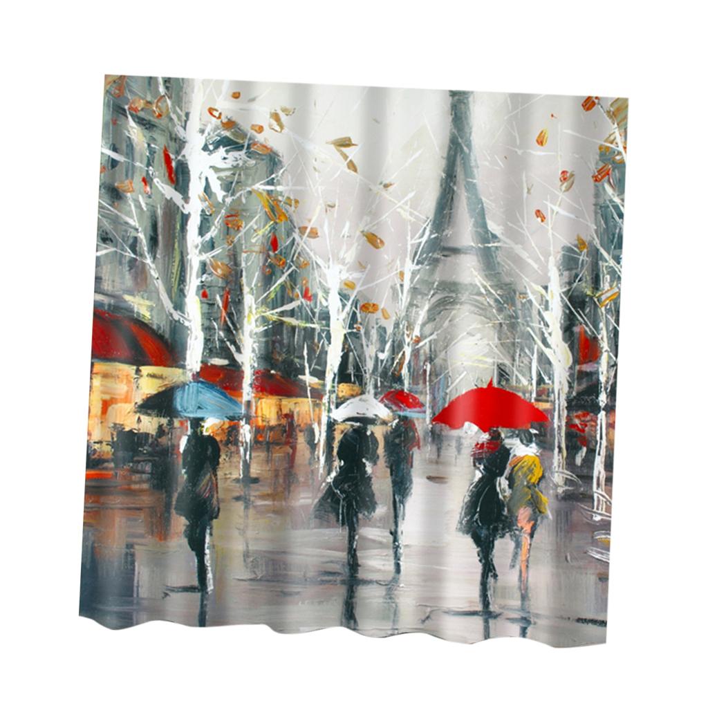 Extra Long Bath Shower Curtain With 12 Hooks Set Hanging Drapes Paris
