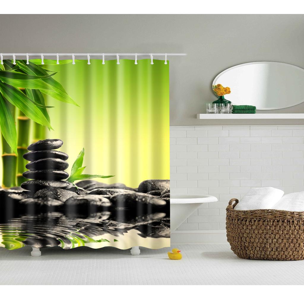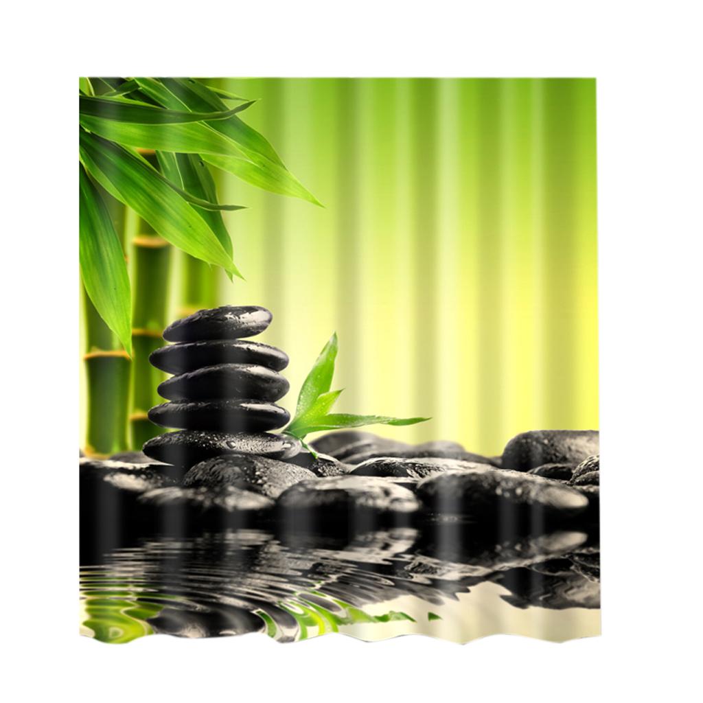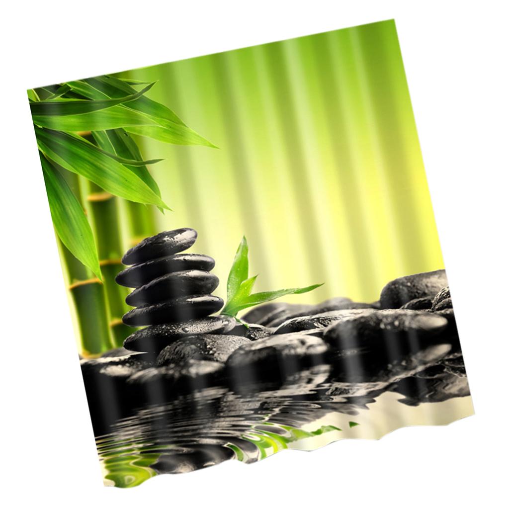 Extra Long Bathroom Fabric Bath Shower Curtain With 12 Hooks Ring Scenery 4