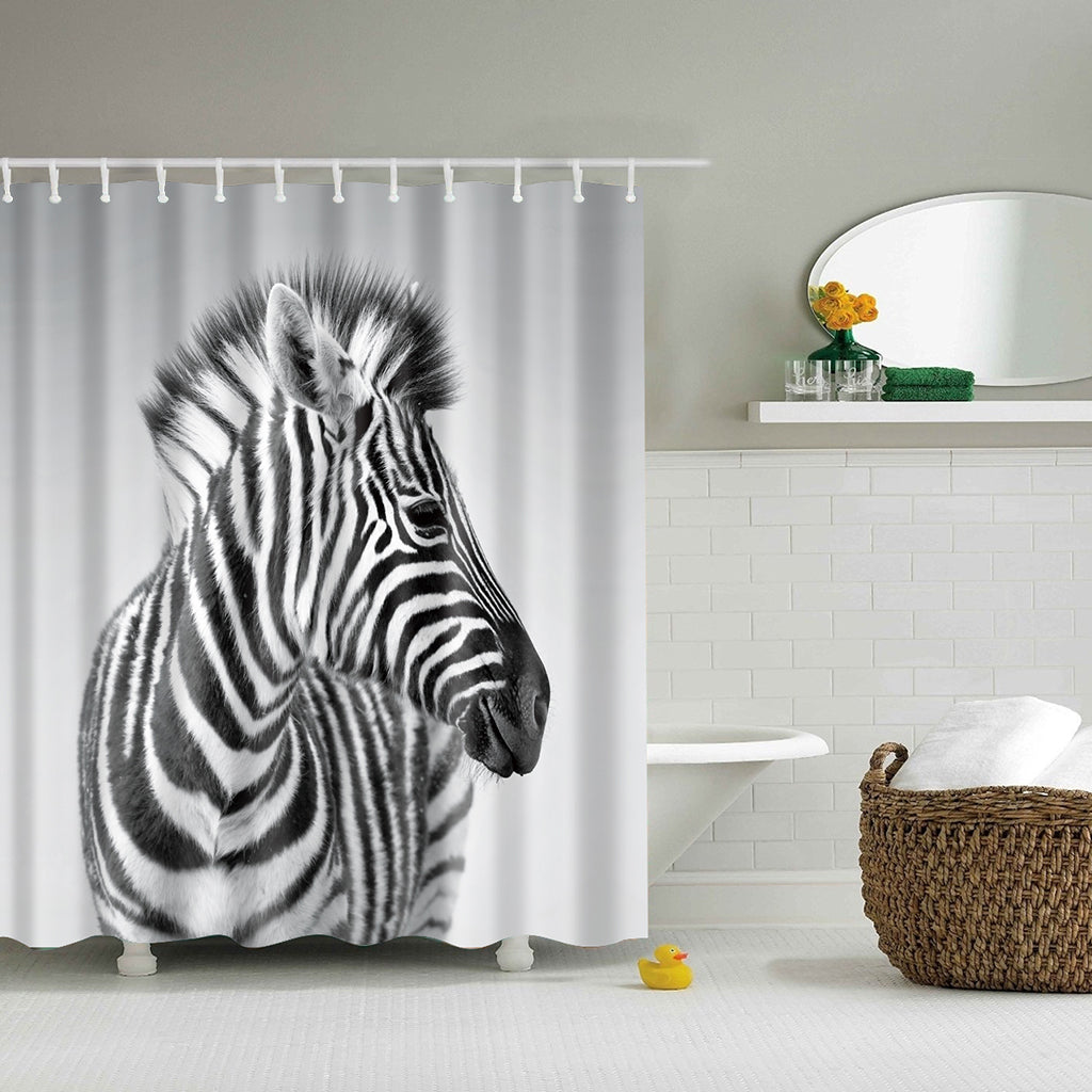 Extra Long Fabric Bath Shower Curtain With 12 Hooks Bathroom Use Zebra