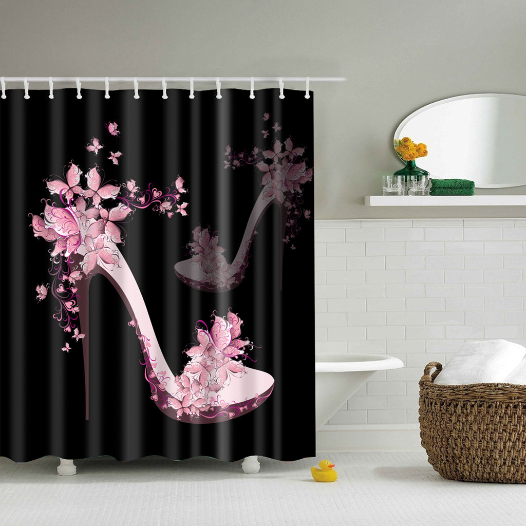 Fabric Bath Shower Curtain Sheer With 12 Hooks Ring Bathroom Use 2