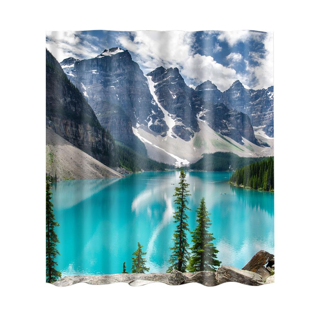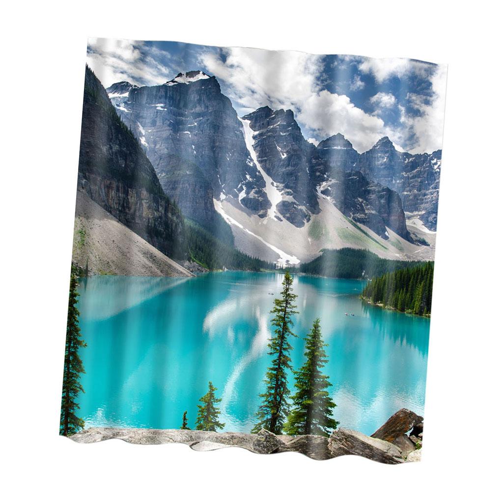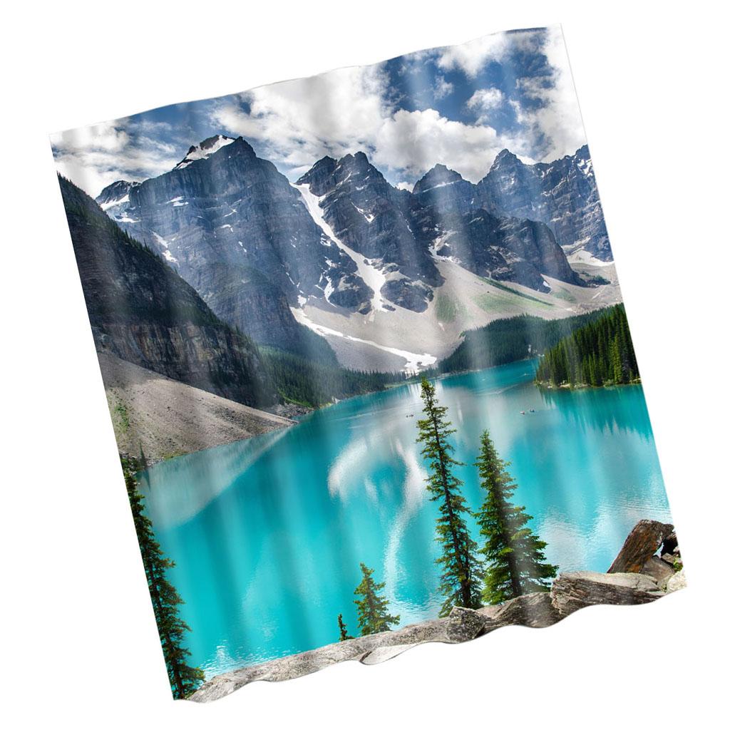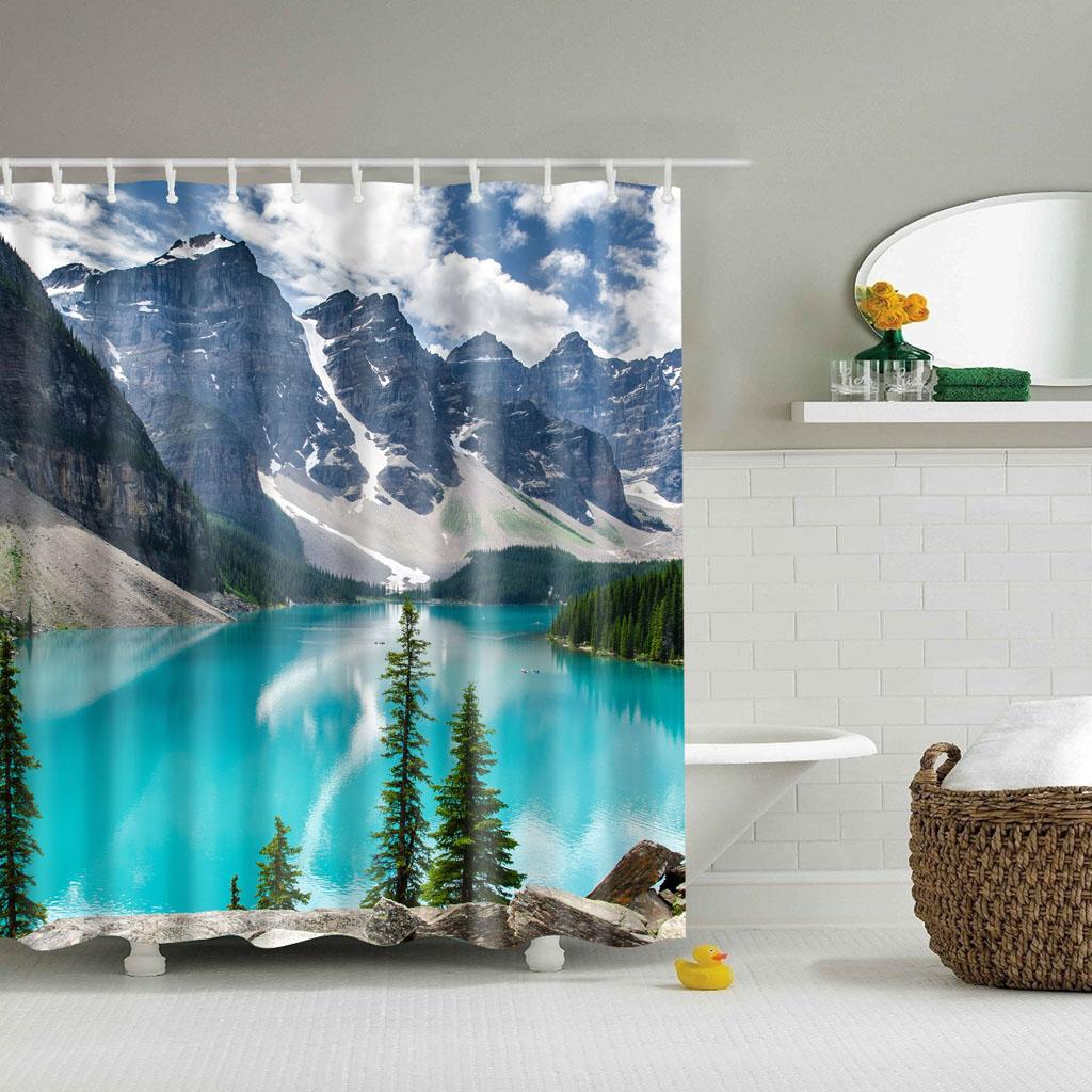 Fabric Bath Shower Curtain With Hooks Ring Bathroom Nature Scenery 2