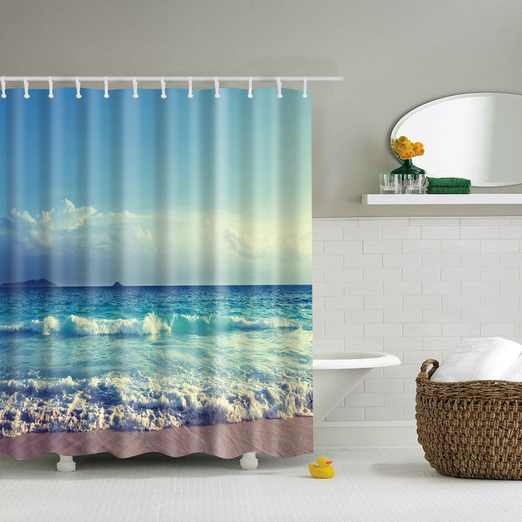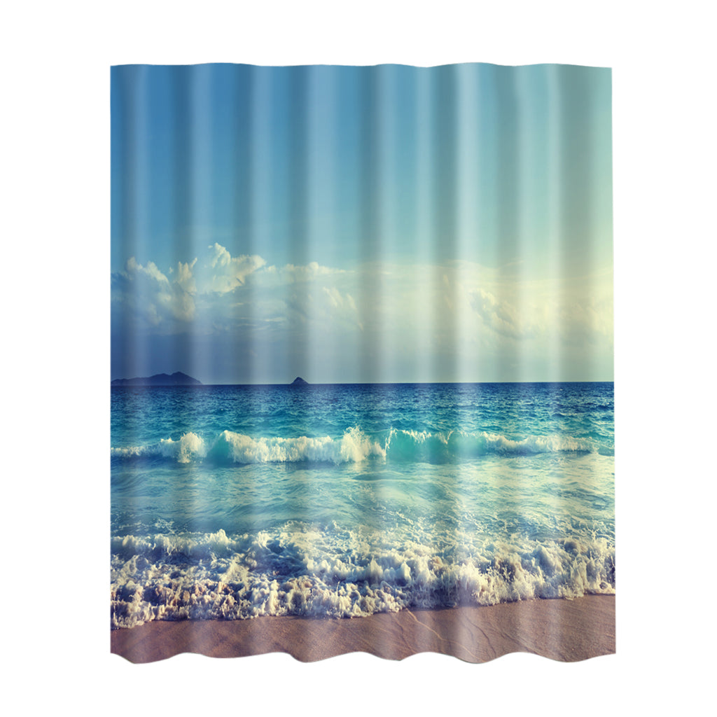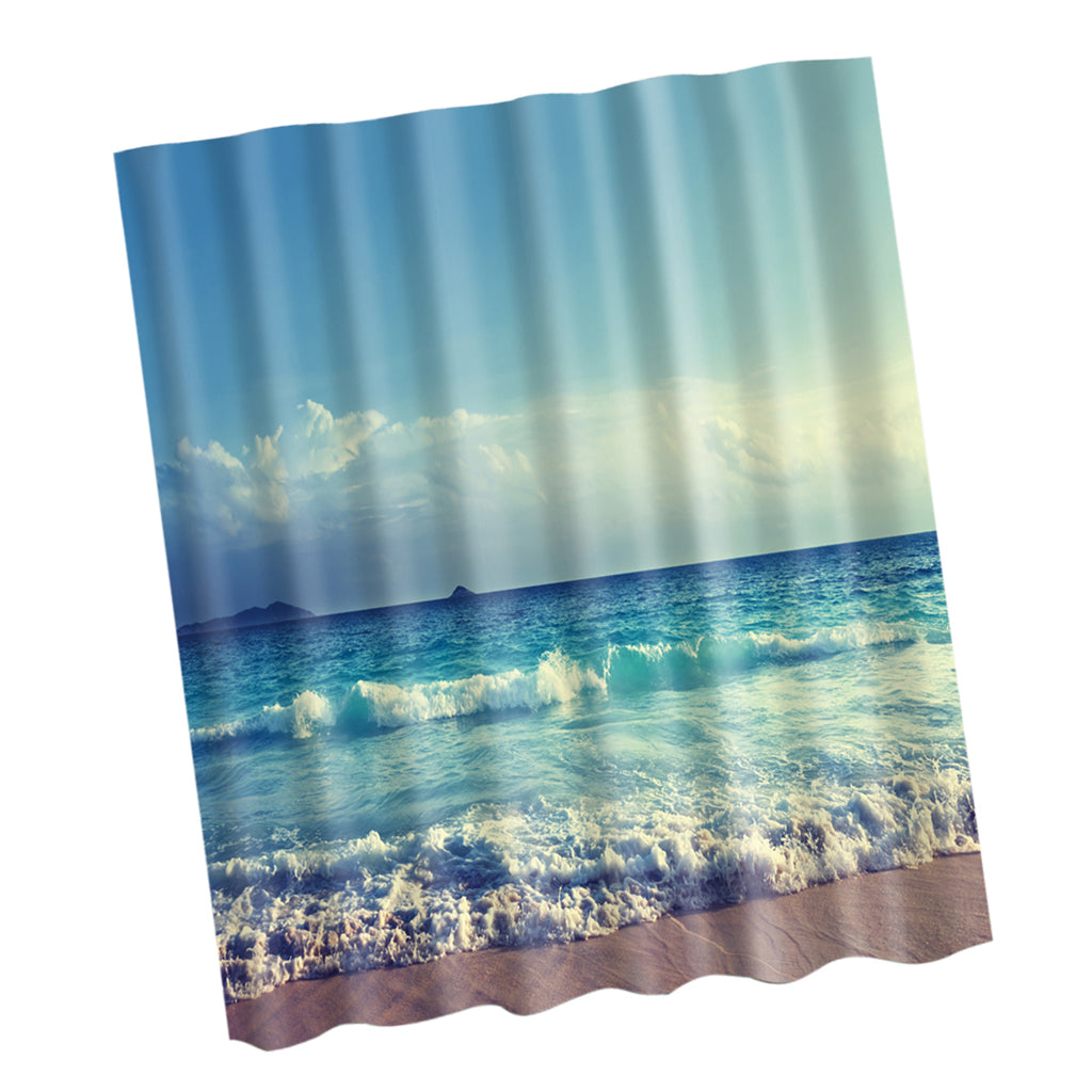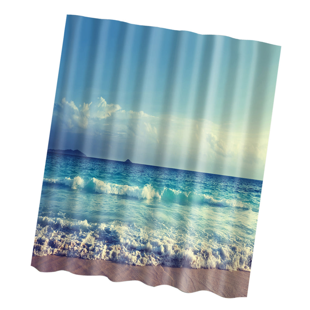 Fabric Bath Shower Curtain With Hooks Ring Bathroom Nature Scenery 9