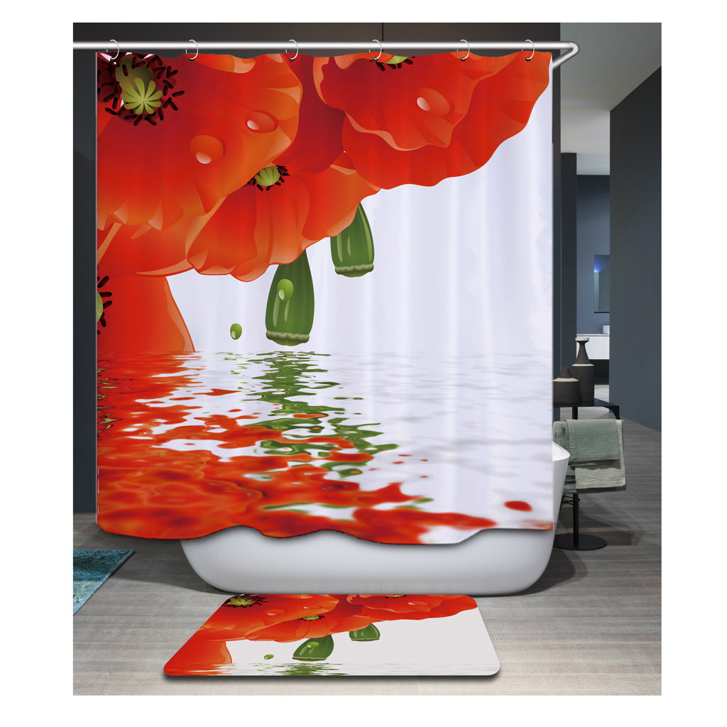 Fabric Bathroom Shower Curtain Panel Decor with Hook Bathroom Use Flower