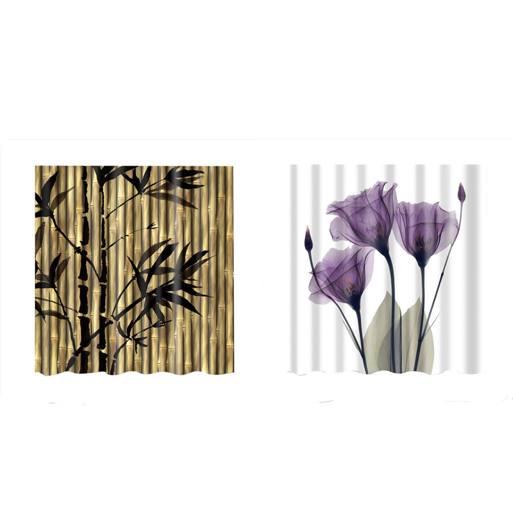 Floral Bamboo Shower Curtain Home Hotel Bathroom Curtain 180X180CM Polyester