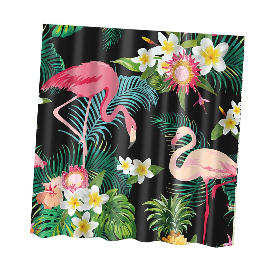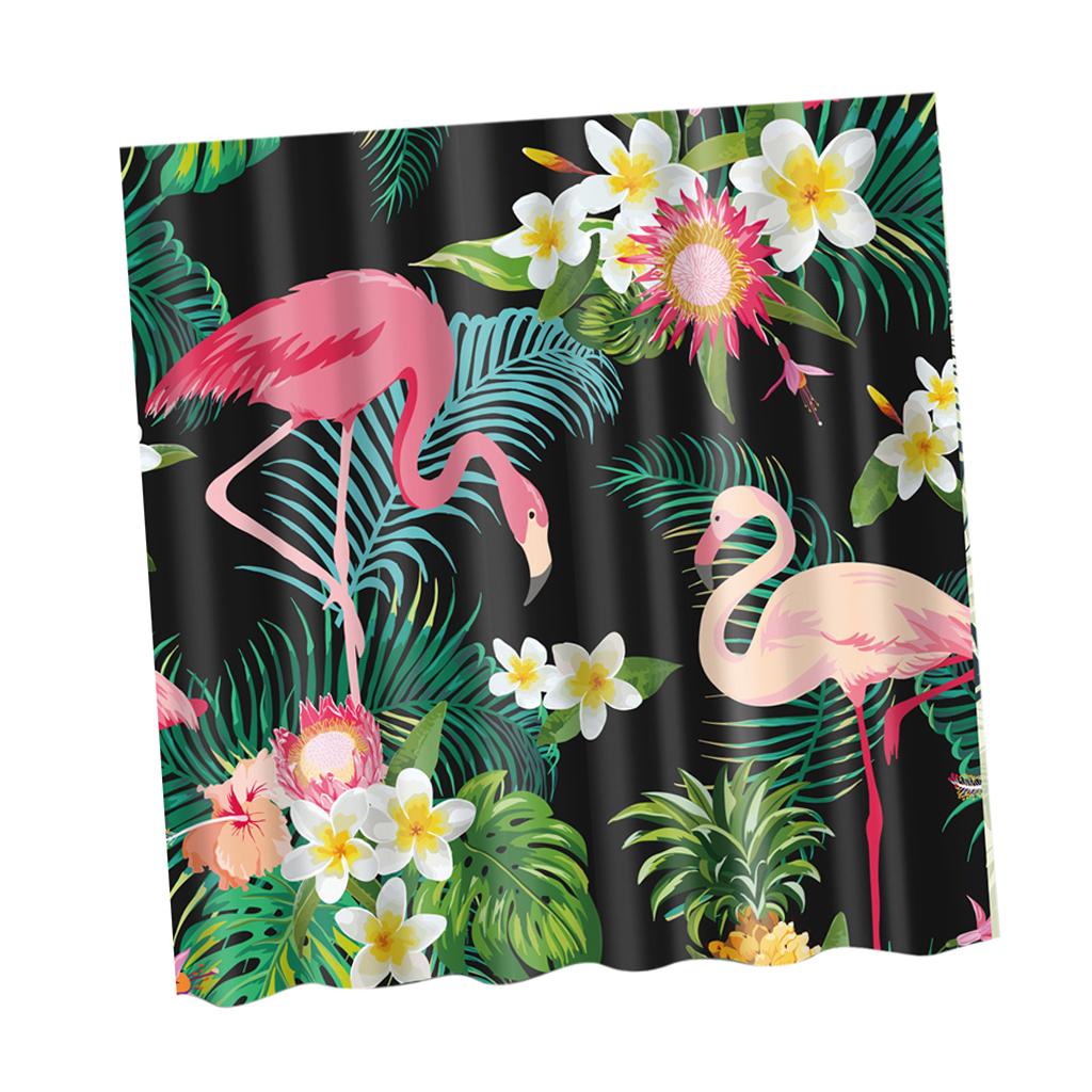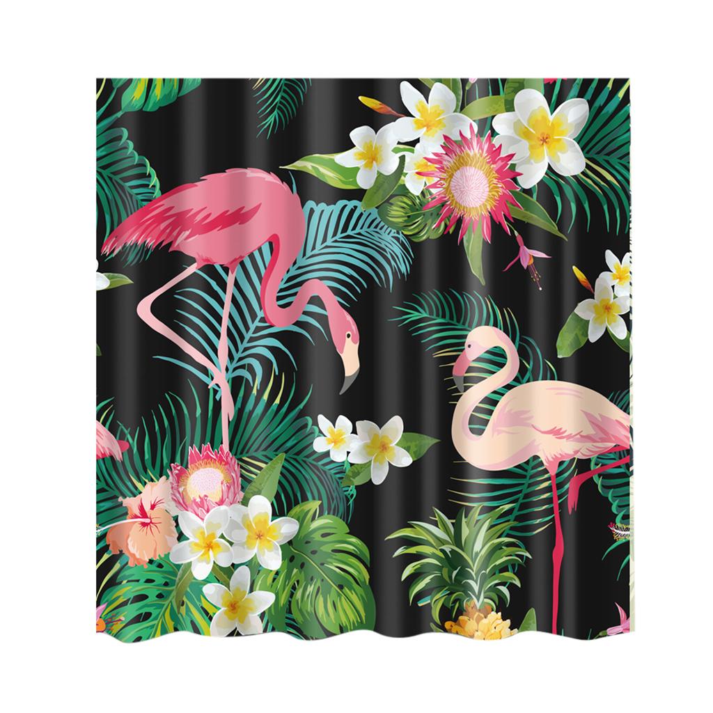 Folk Style Bathroom Polyester Shower Curtain with 12 Hooks Set Flamingo 2