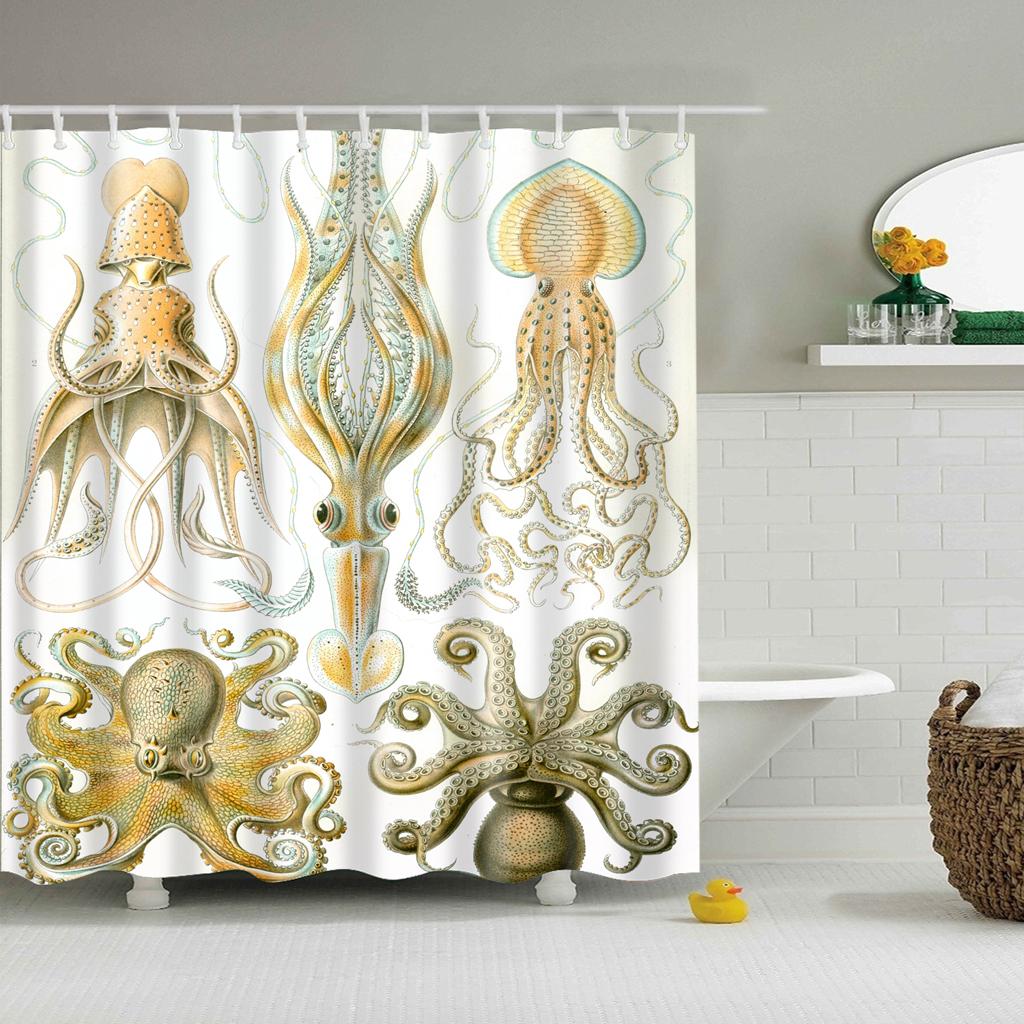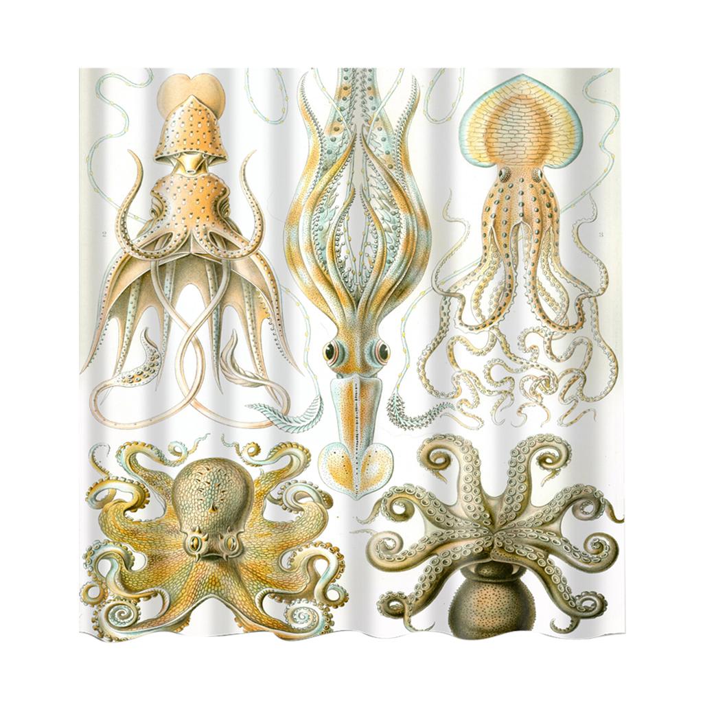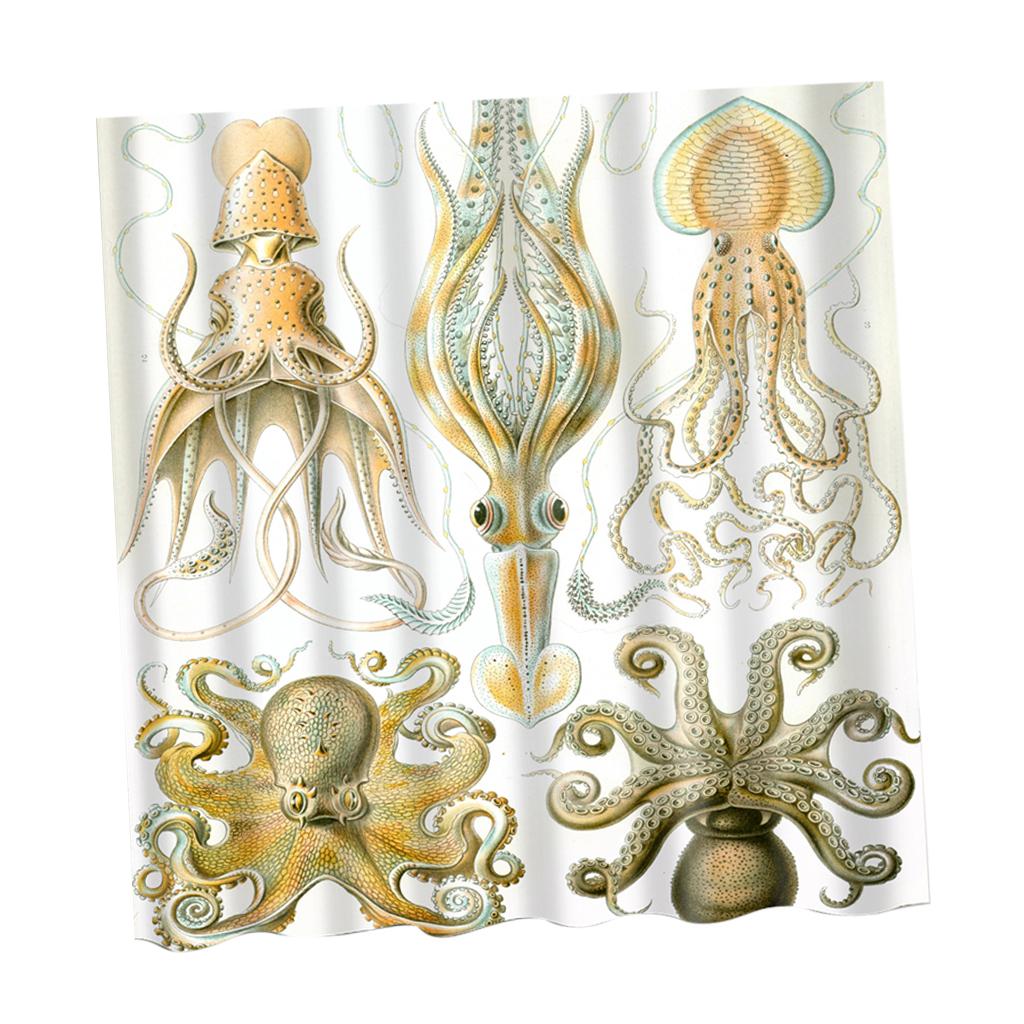Folk Style Bathroom Polyester Shower Curtain with 12 Hooks Set Octopus