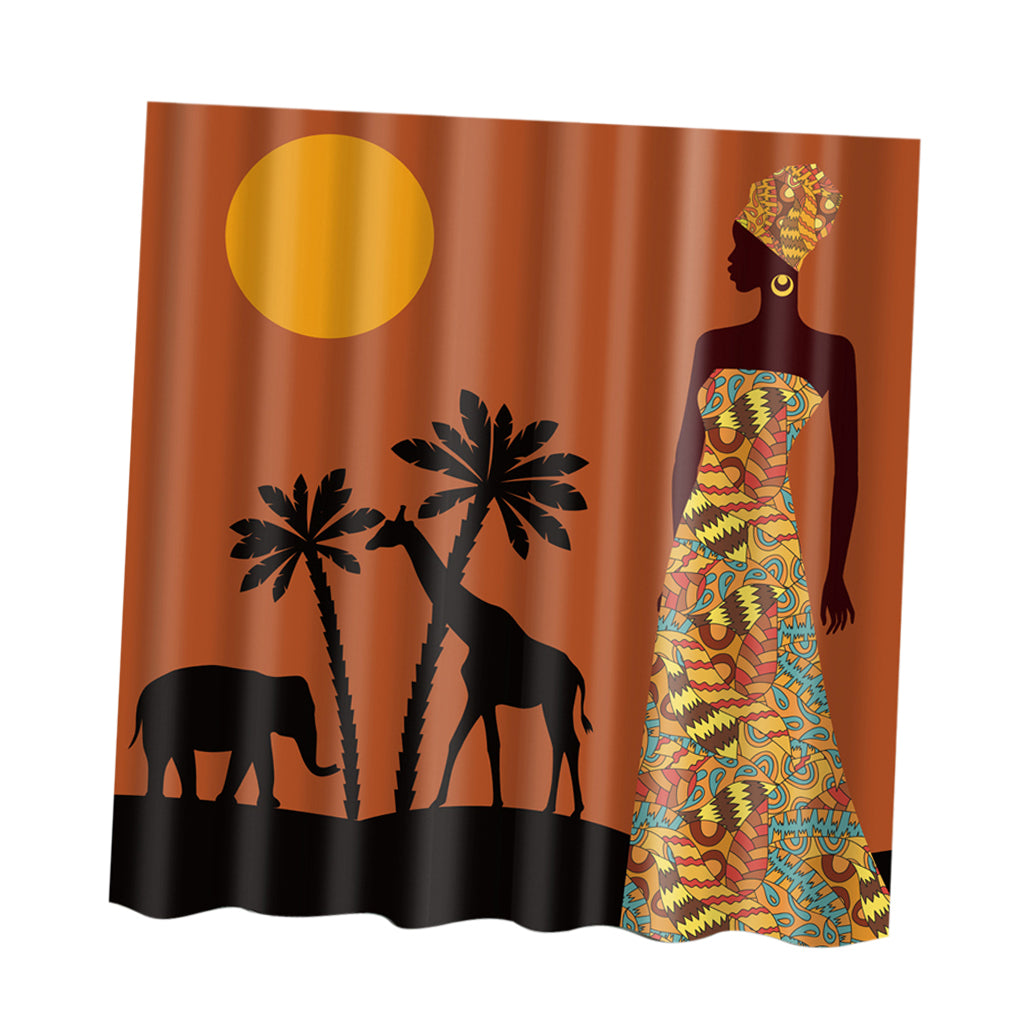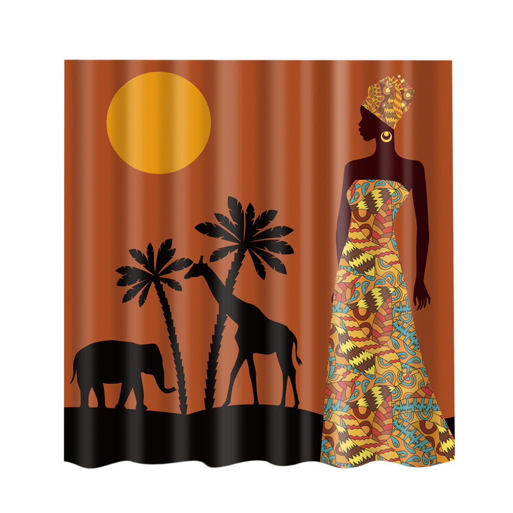 Folk Style Bathroom Polyester Shower Curtain with 12 Hooks Set Woman
